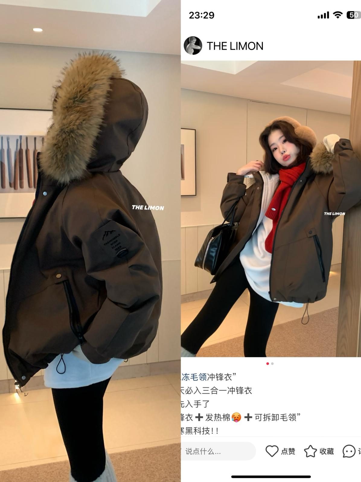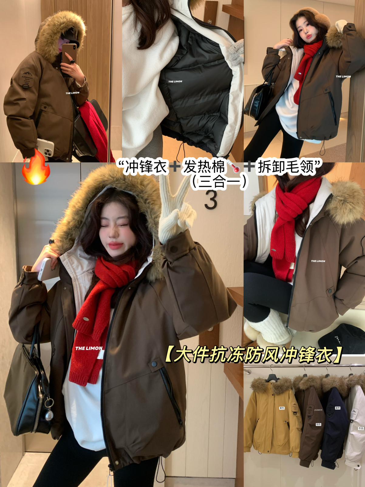 3. 【C8007】戶外防風保暖發熱棉工裝保暖棉服外套(可拆卸毛領)