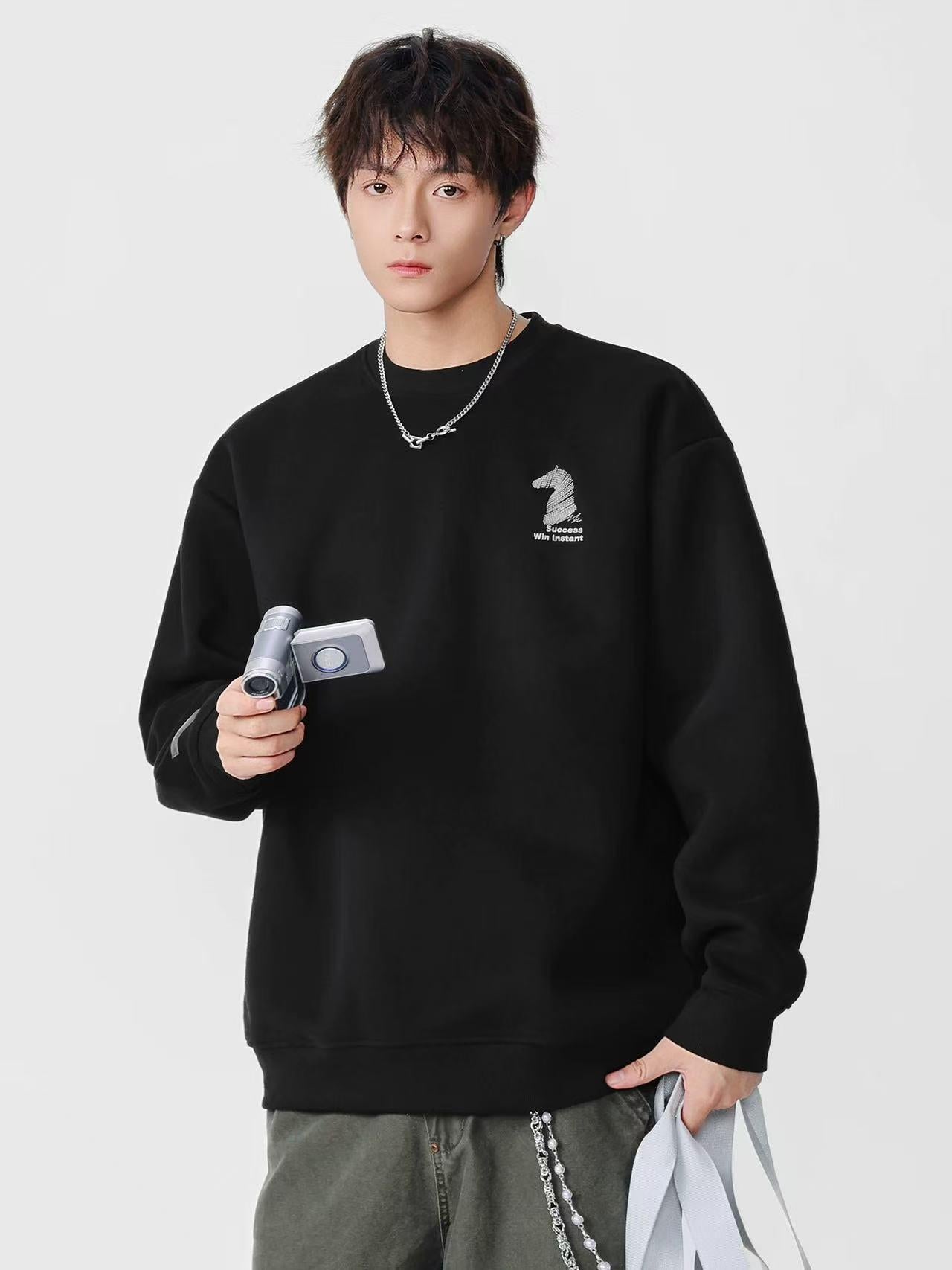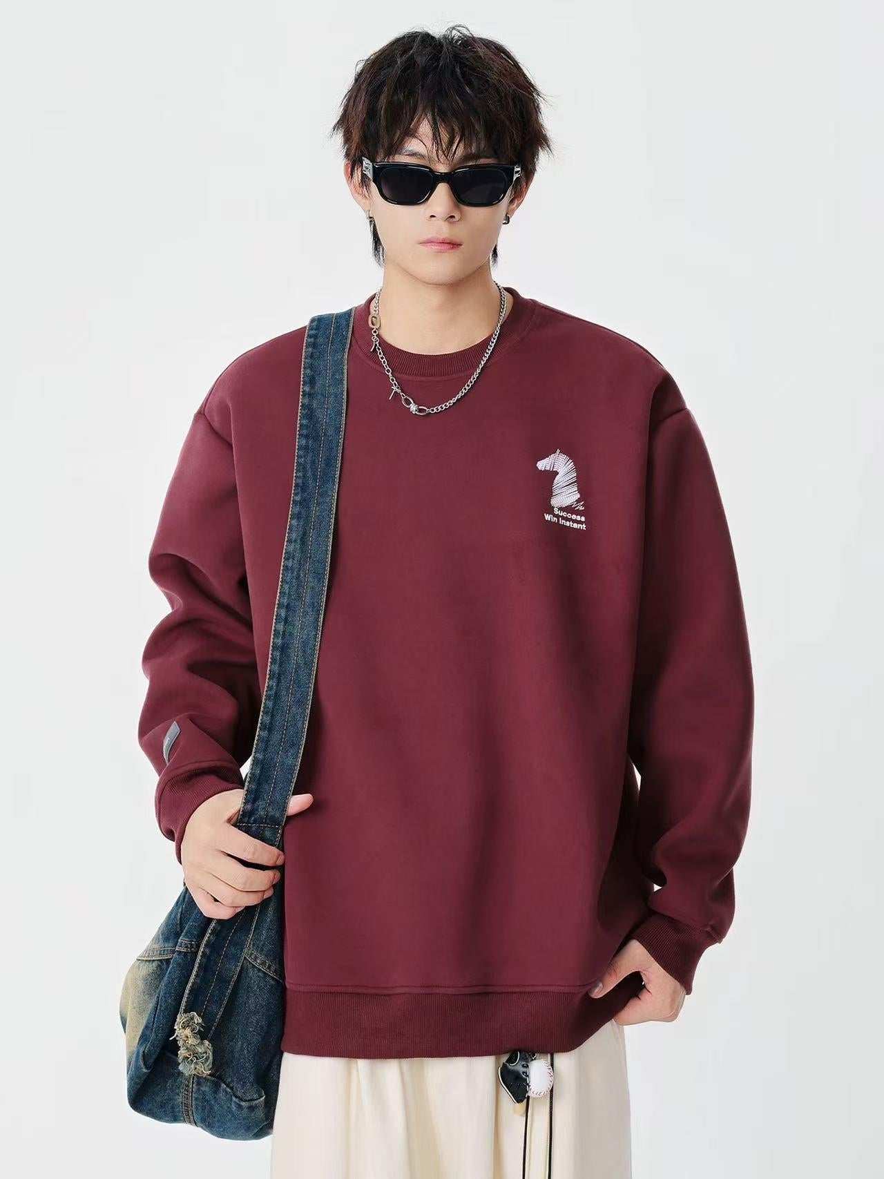 【YS2554】美式加絨加厚簡約百搭圓領長袖衛衣