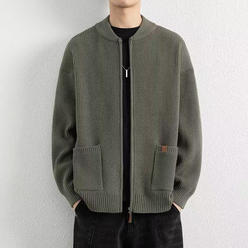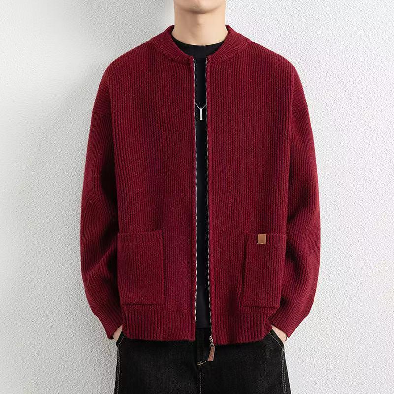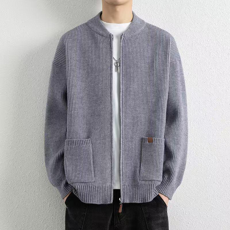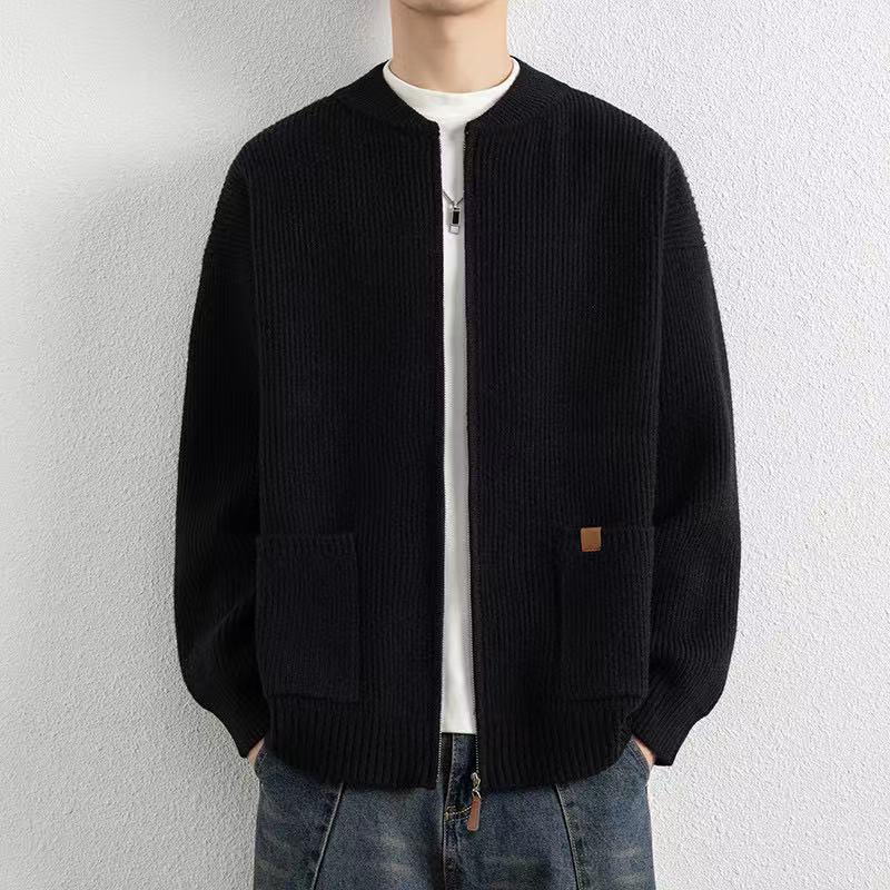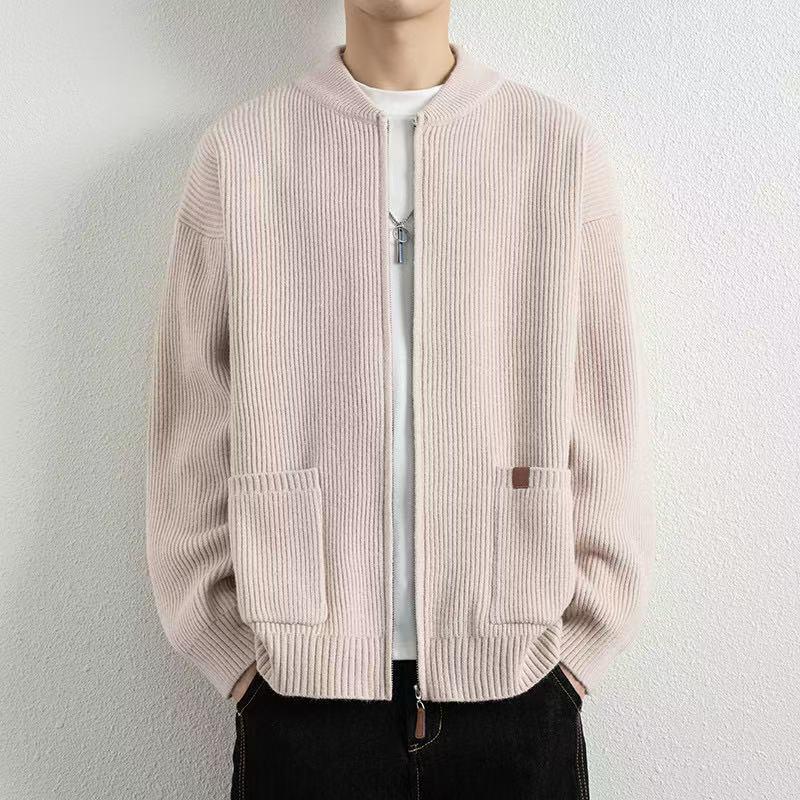【YS2566】美式時尚潮純色休閒百搭外套針織開衫