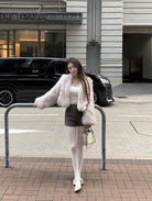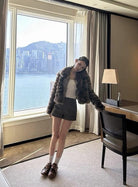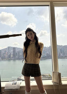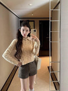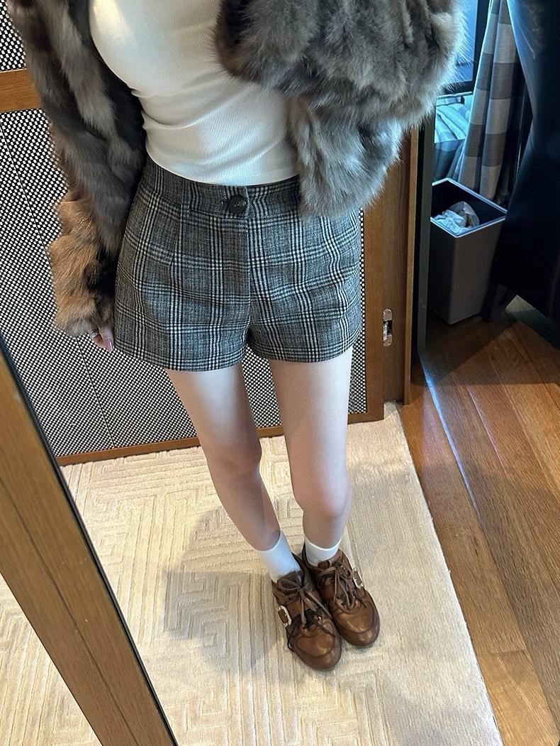 【C8017】韓系復古百搭高腰格紋條約寬鬆休閒短褲