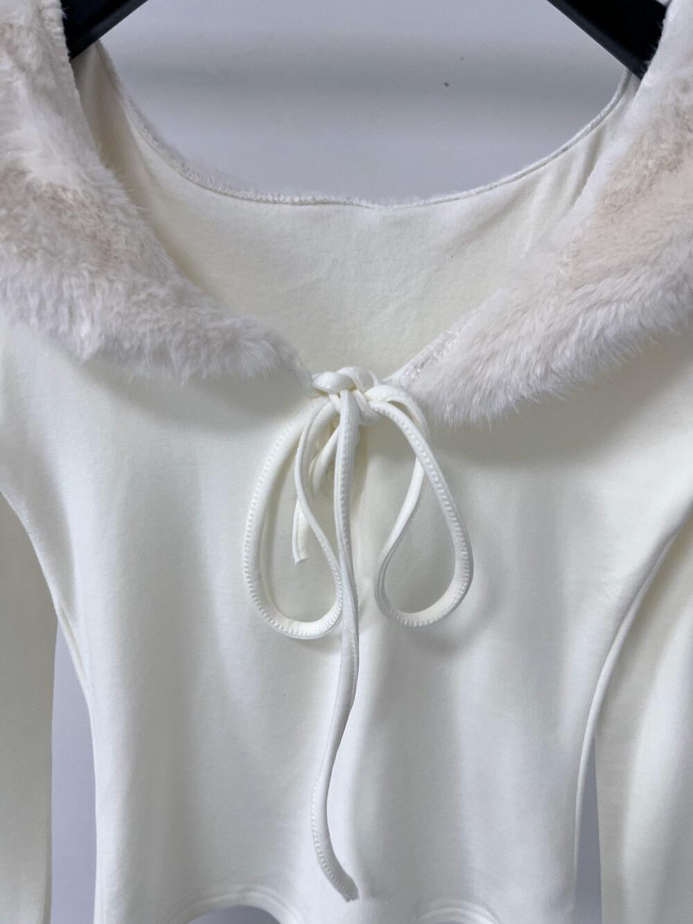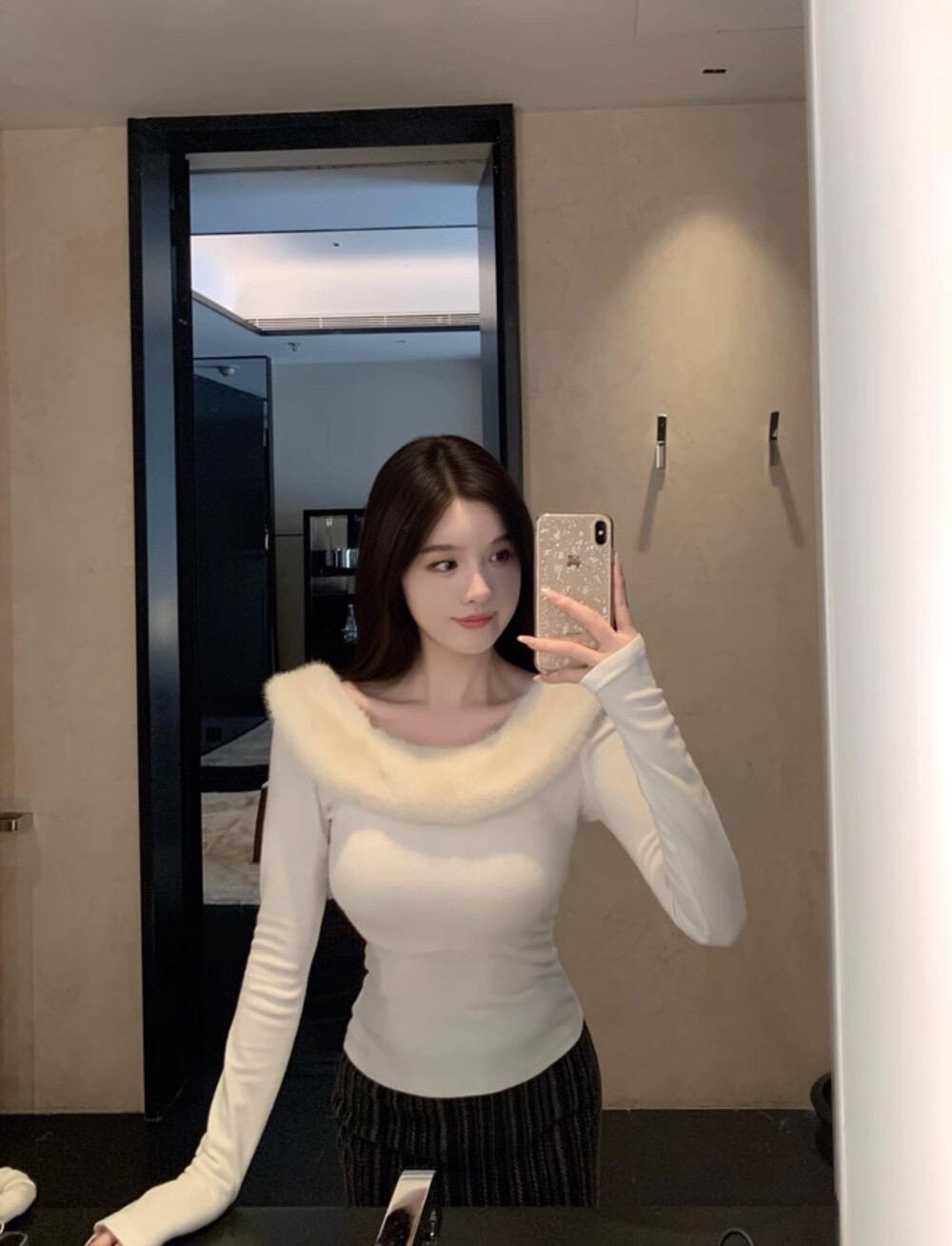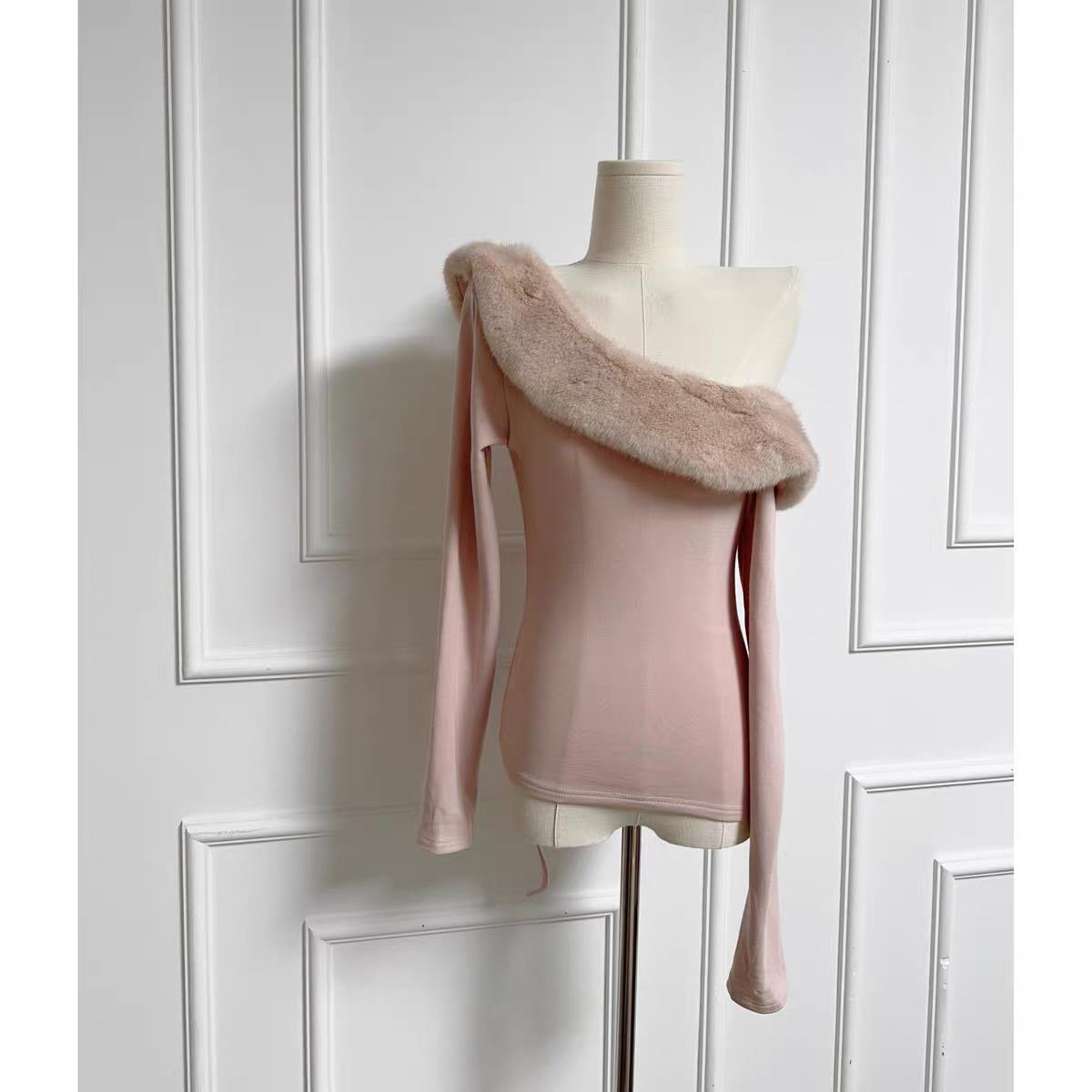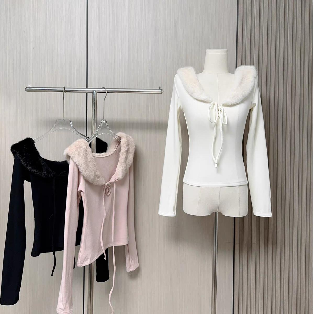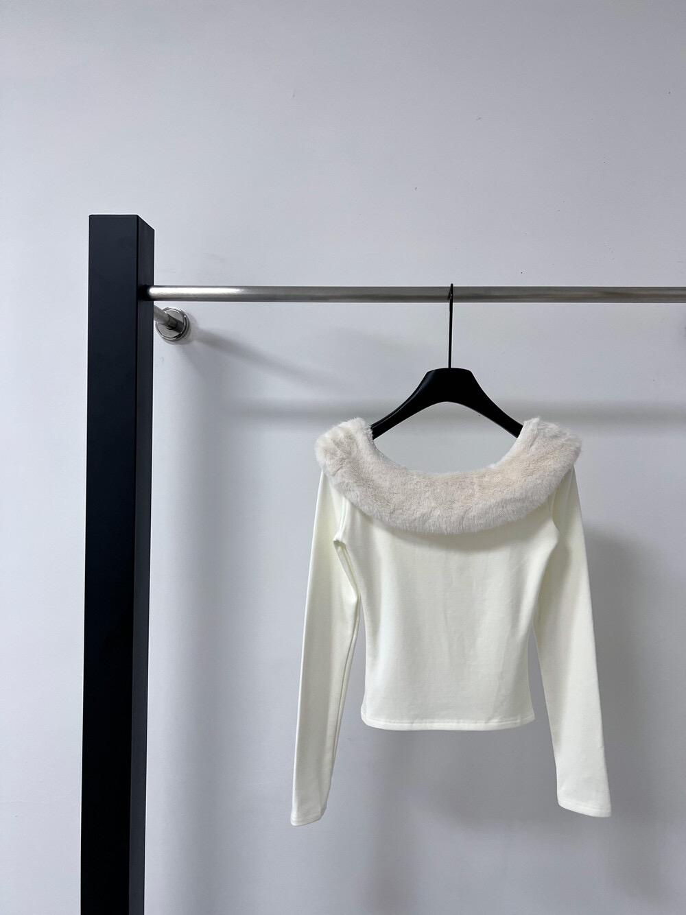 【C8021】韓系u領拼環保毛兩面穿小衫