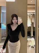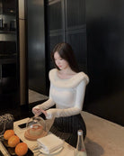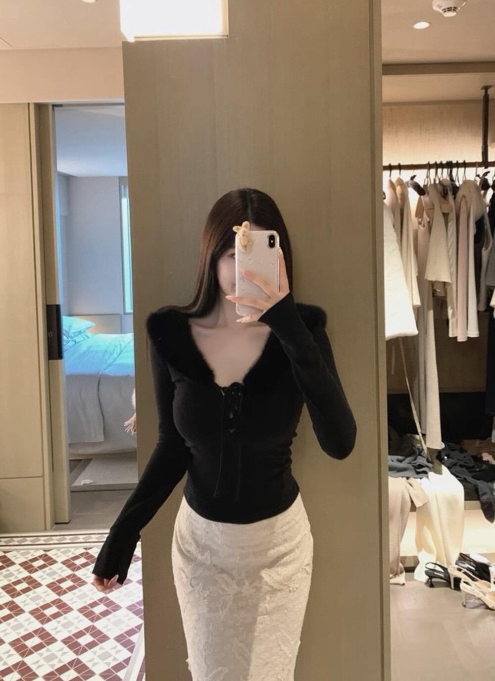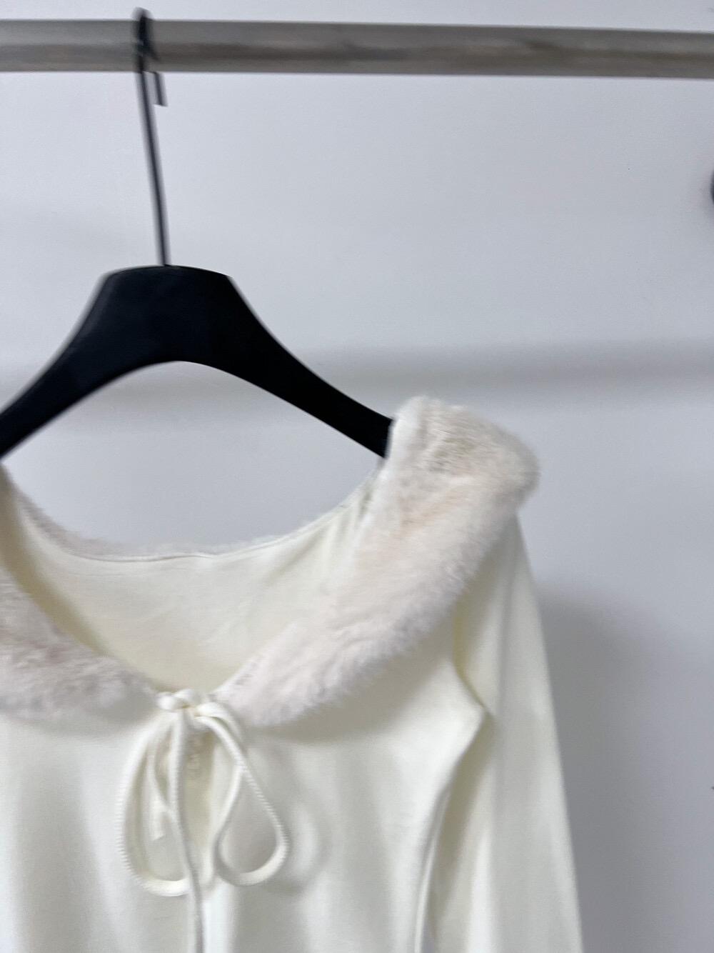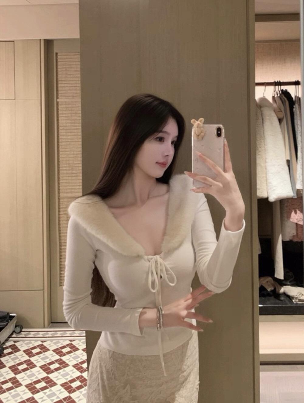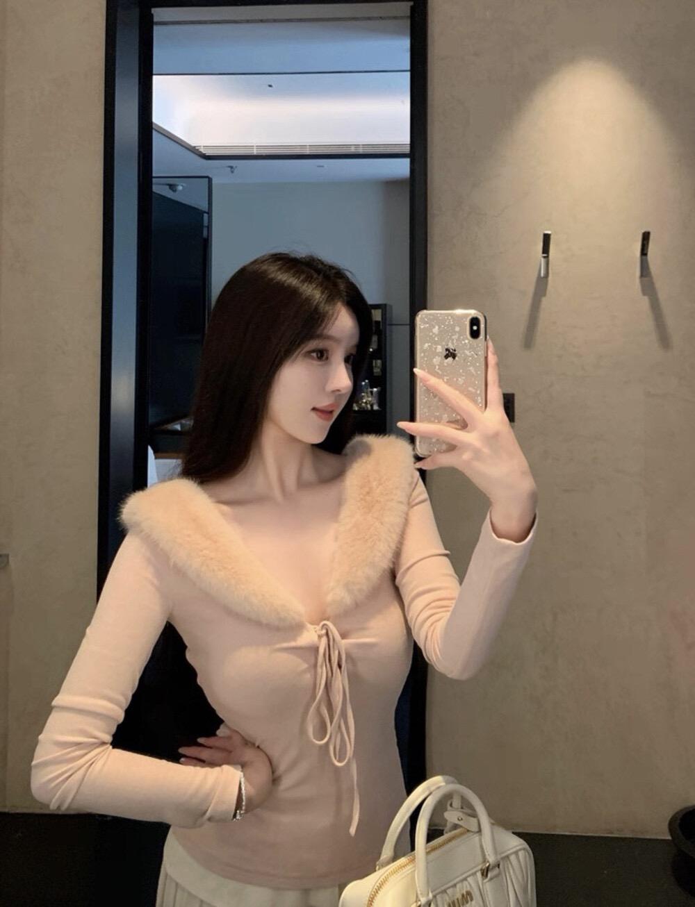 【C8021】韓系u領拼環保毛兩面穿小衫