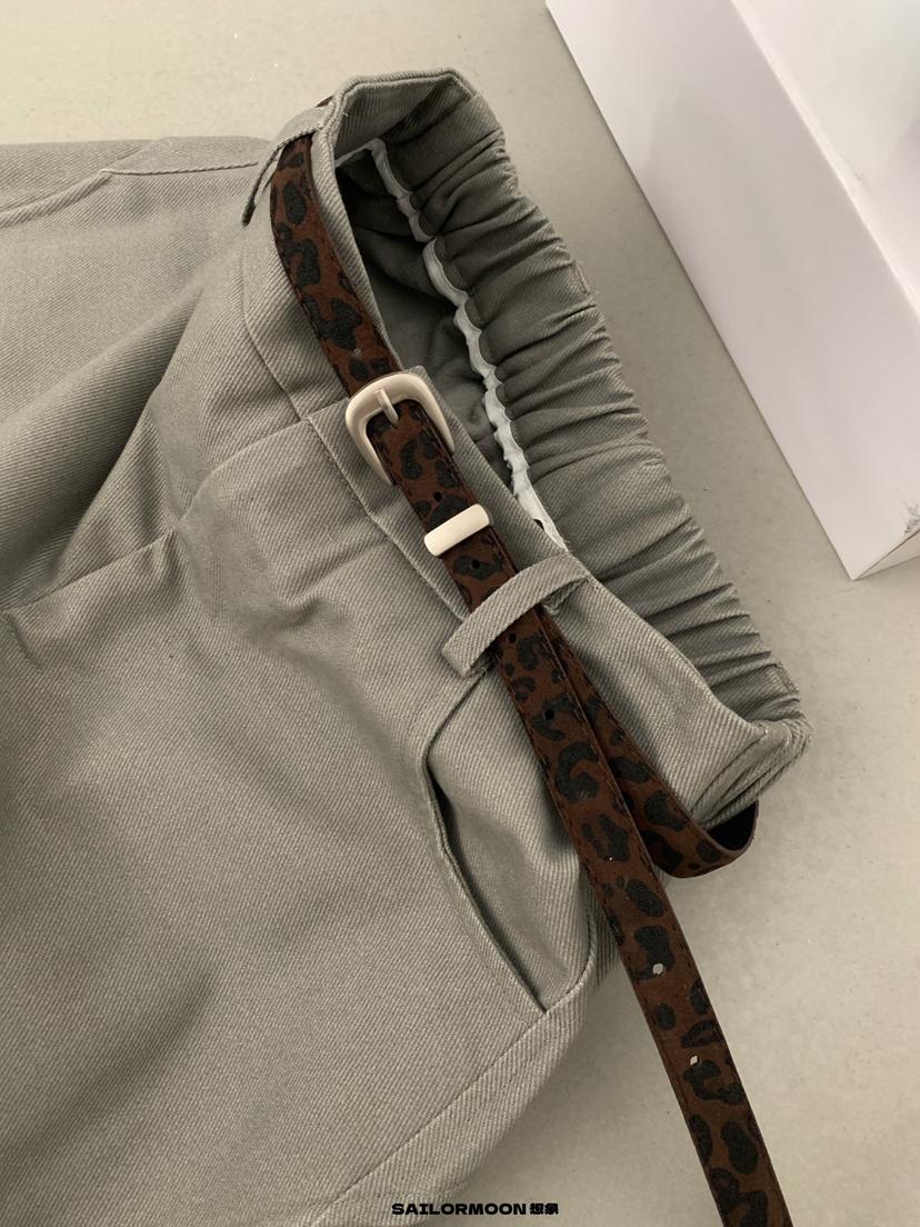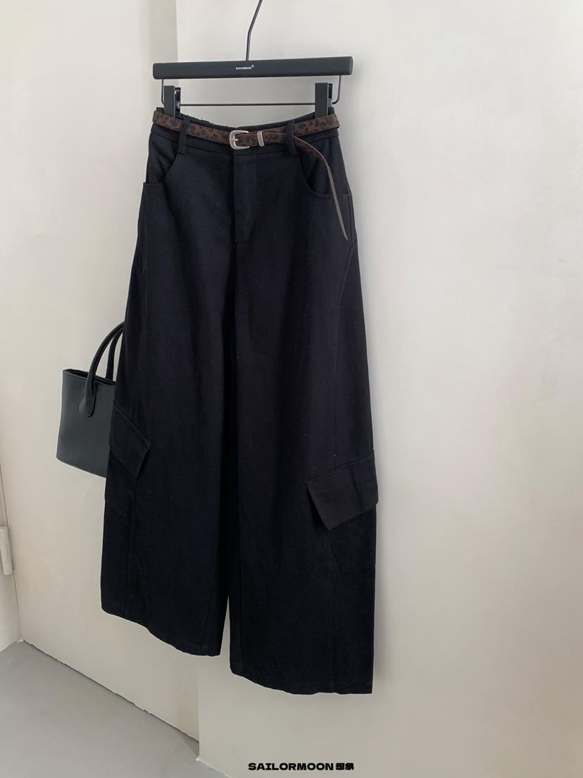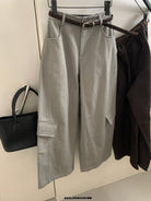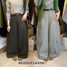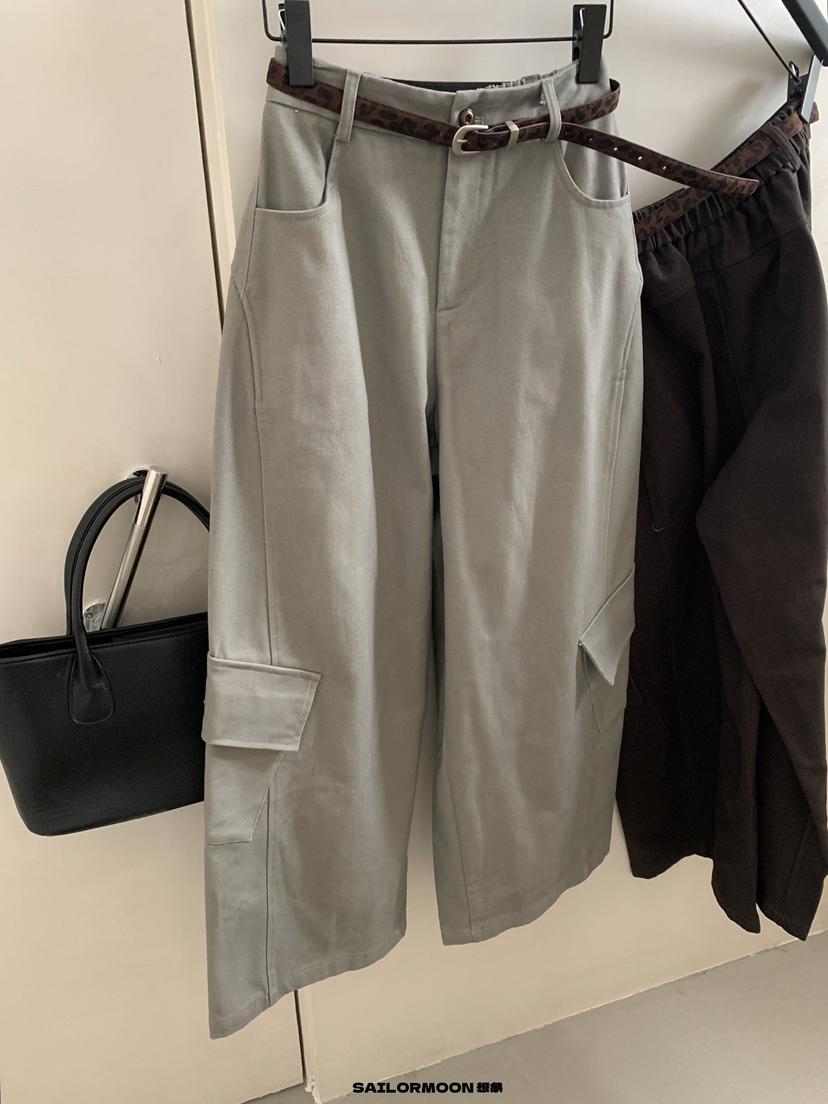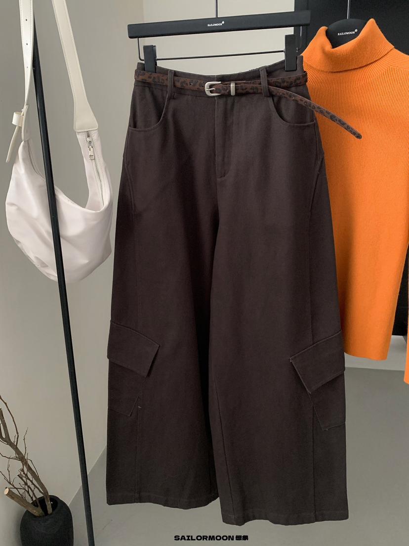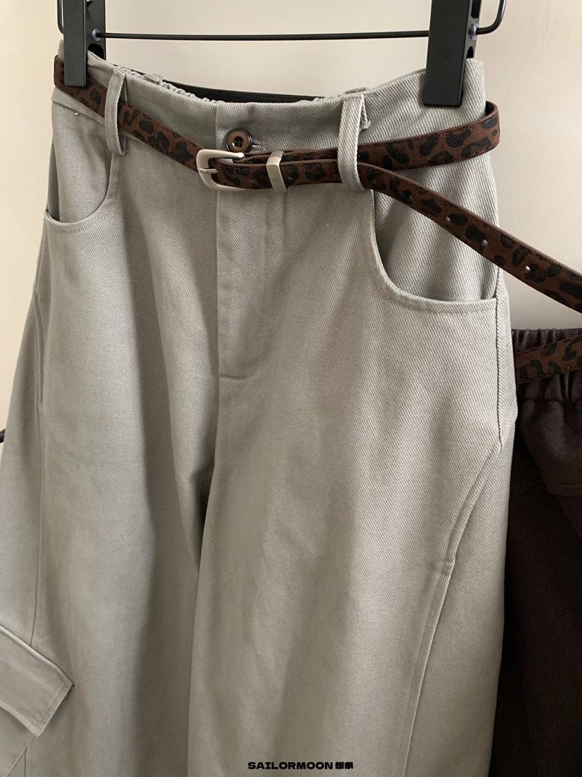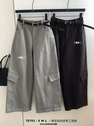【C8025】復古闊腿大口袋時尚工裝褲(配腰帶)