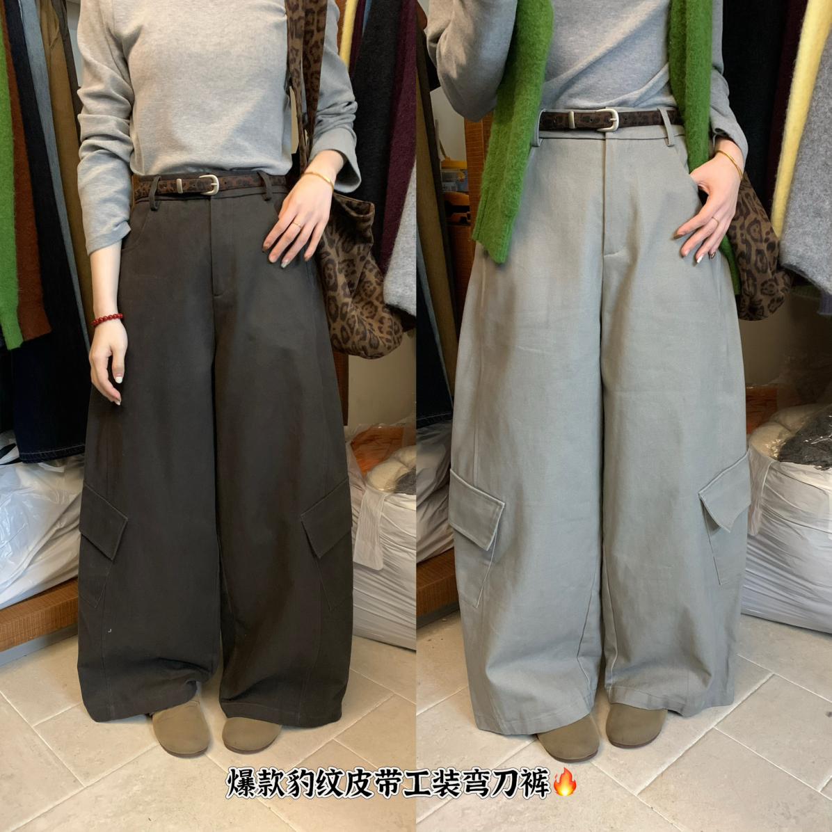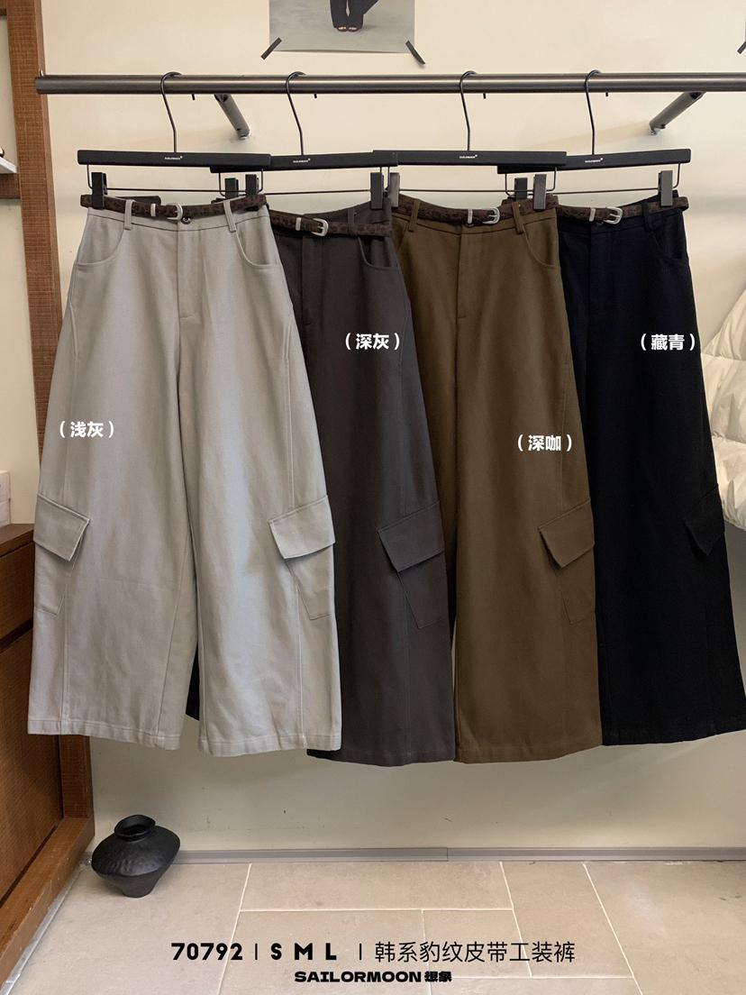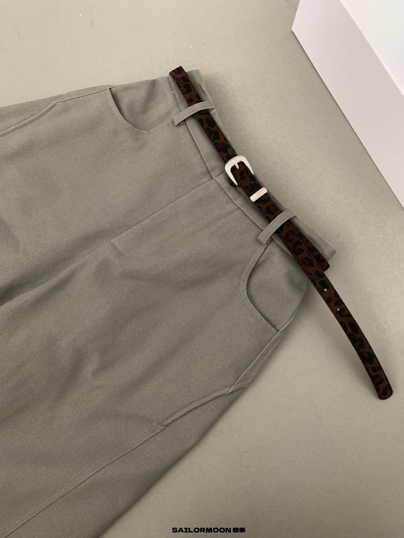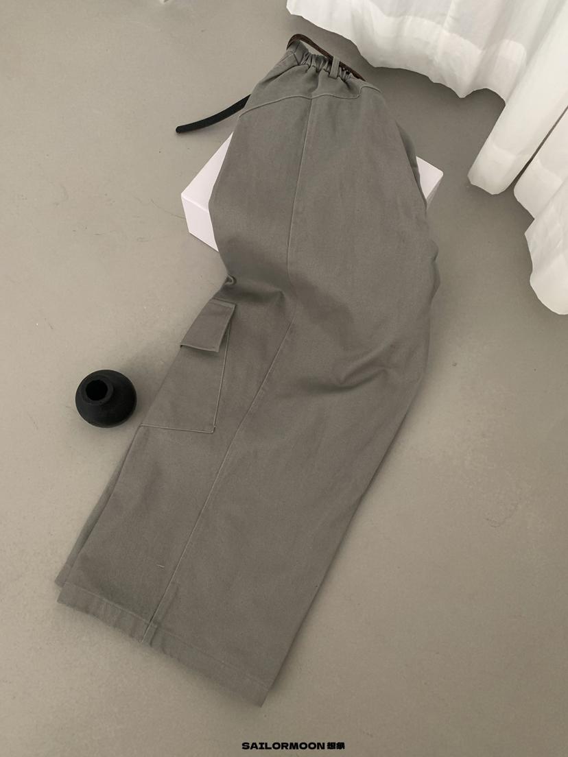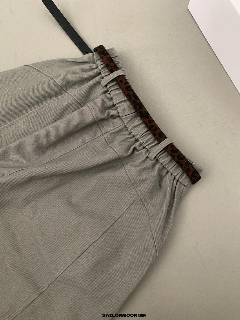 【C8025】復古闊腿大口袋時尚工裝褲(配腰帶)