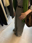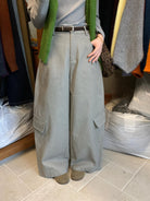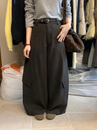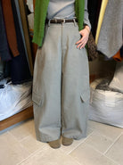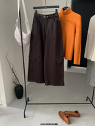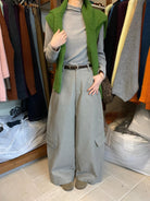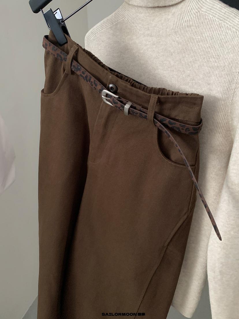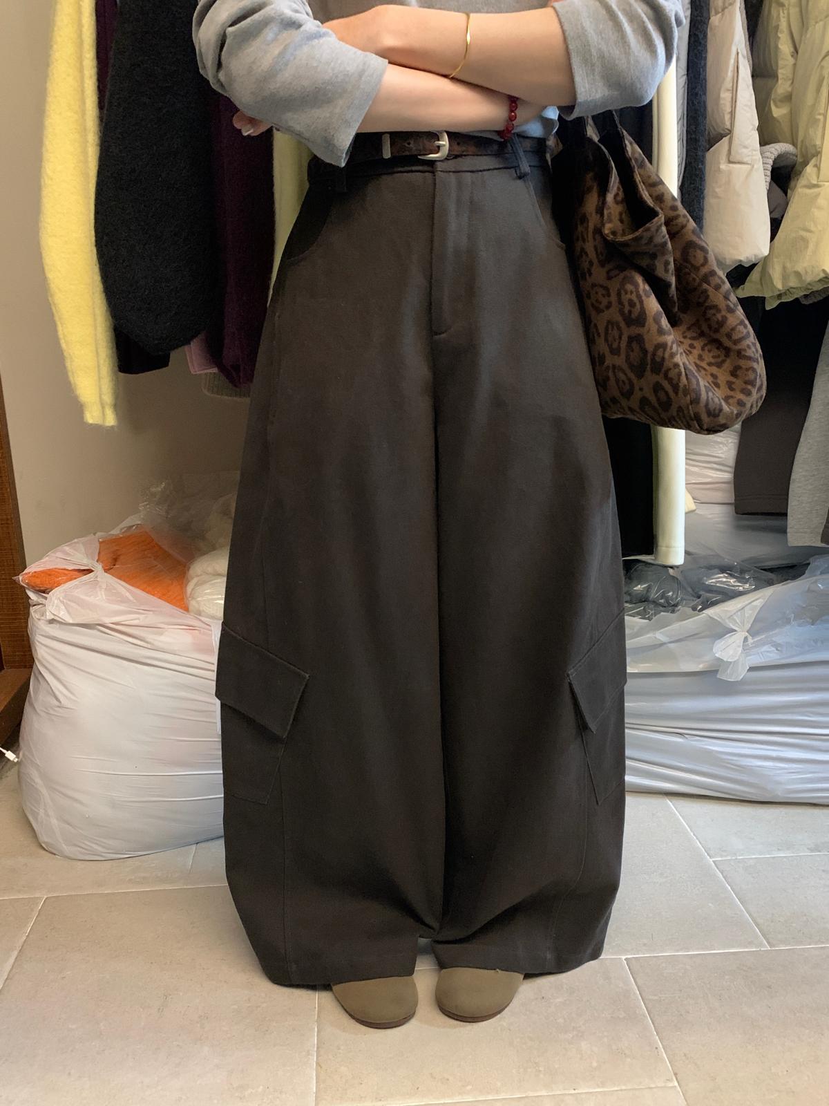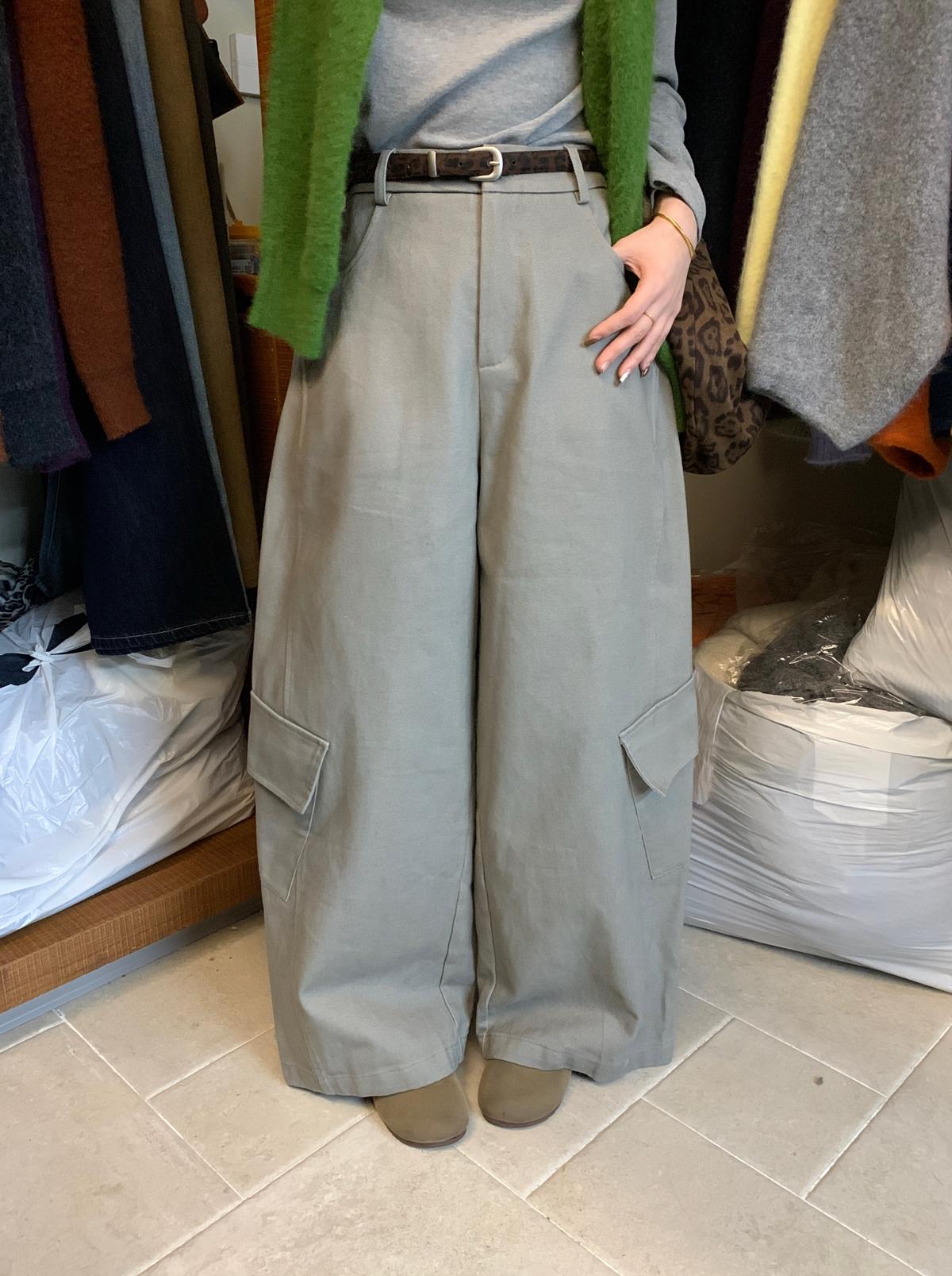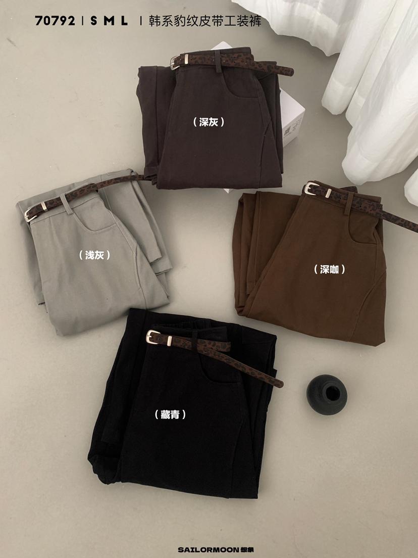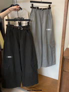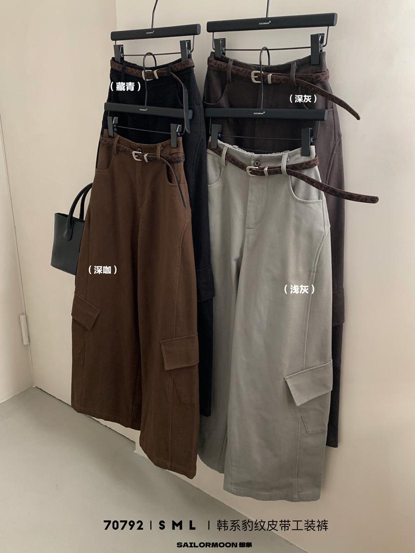 【C8025】復古闊腿大口袋時尚工裝褲(配腰帶)