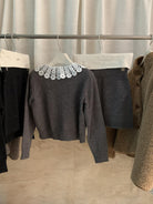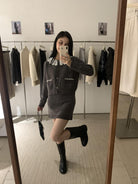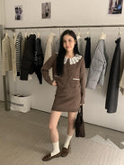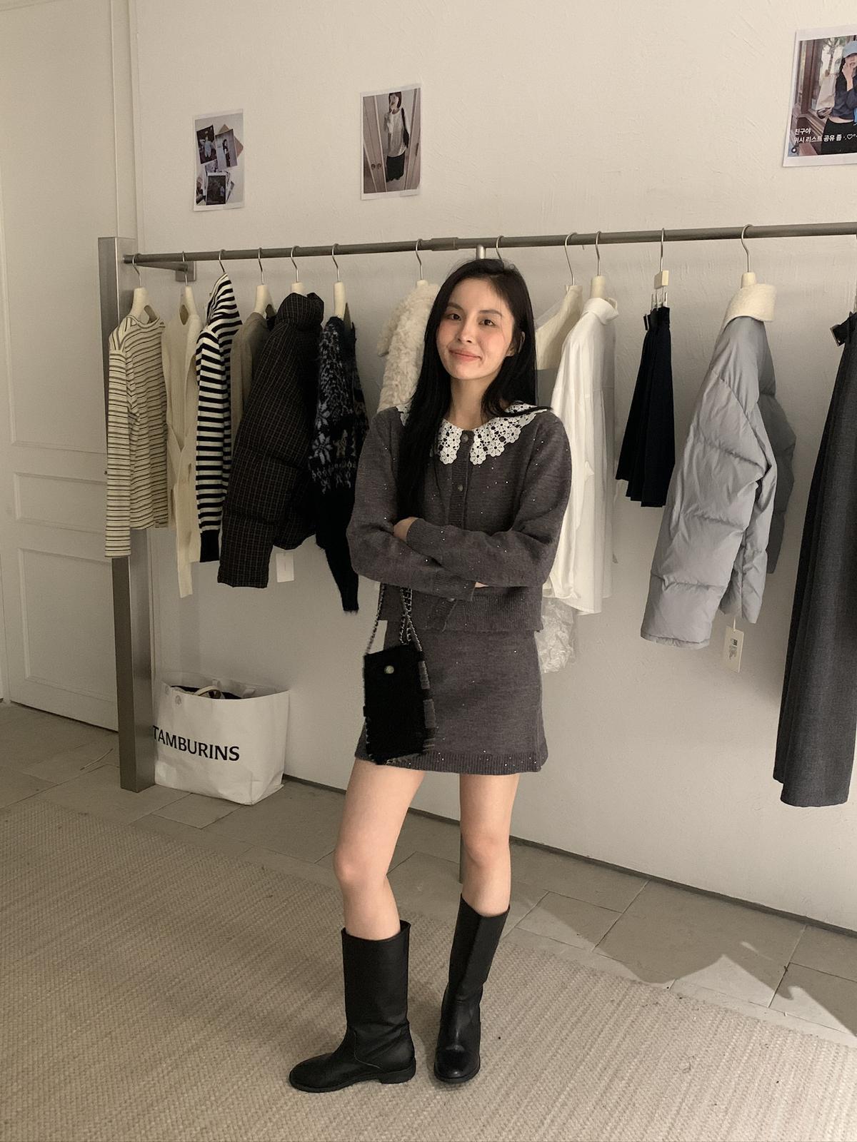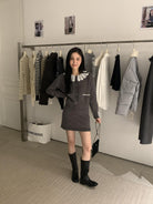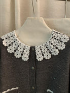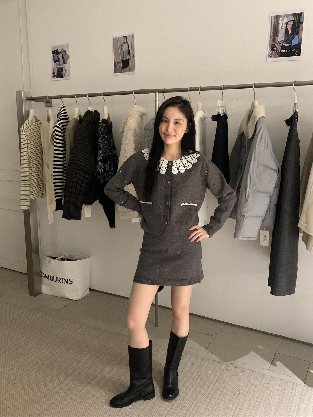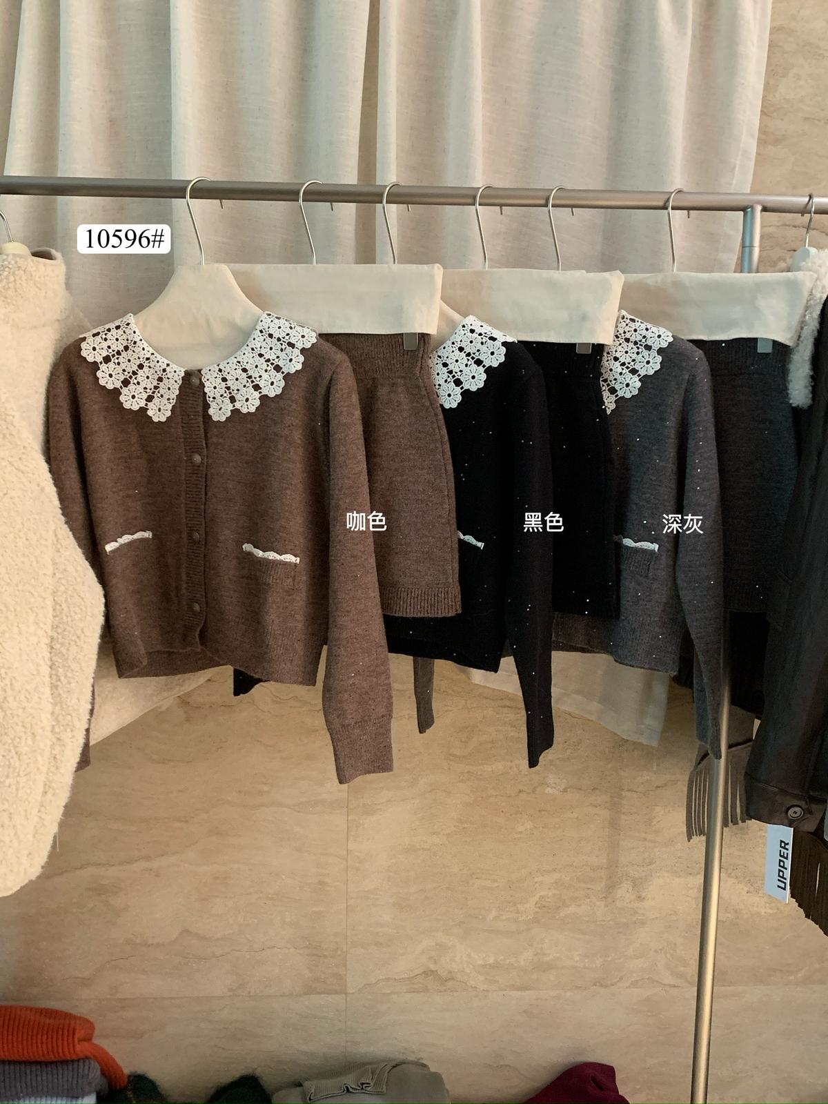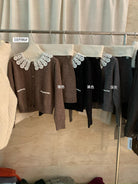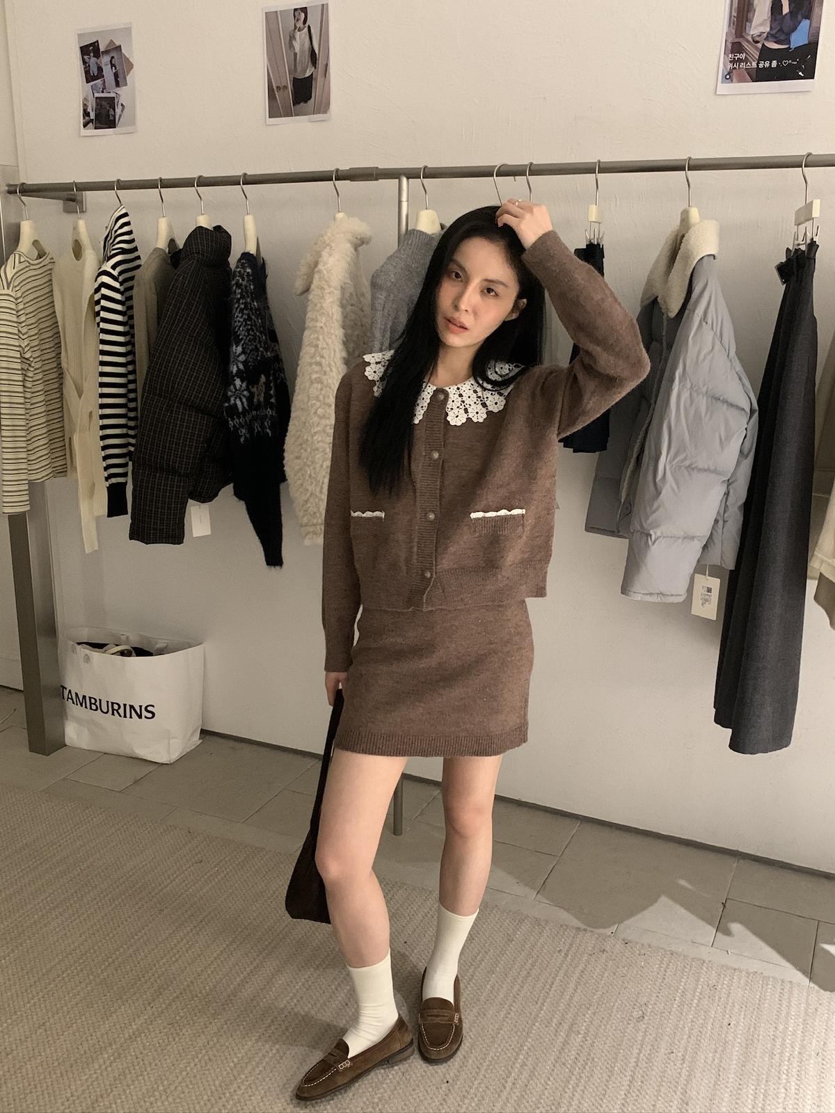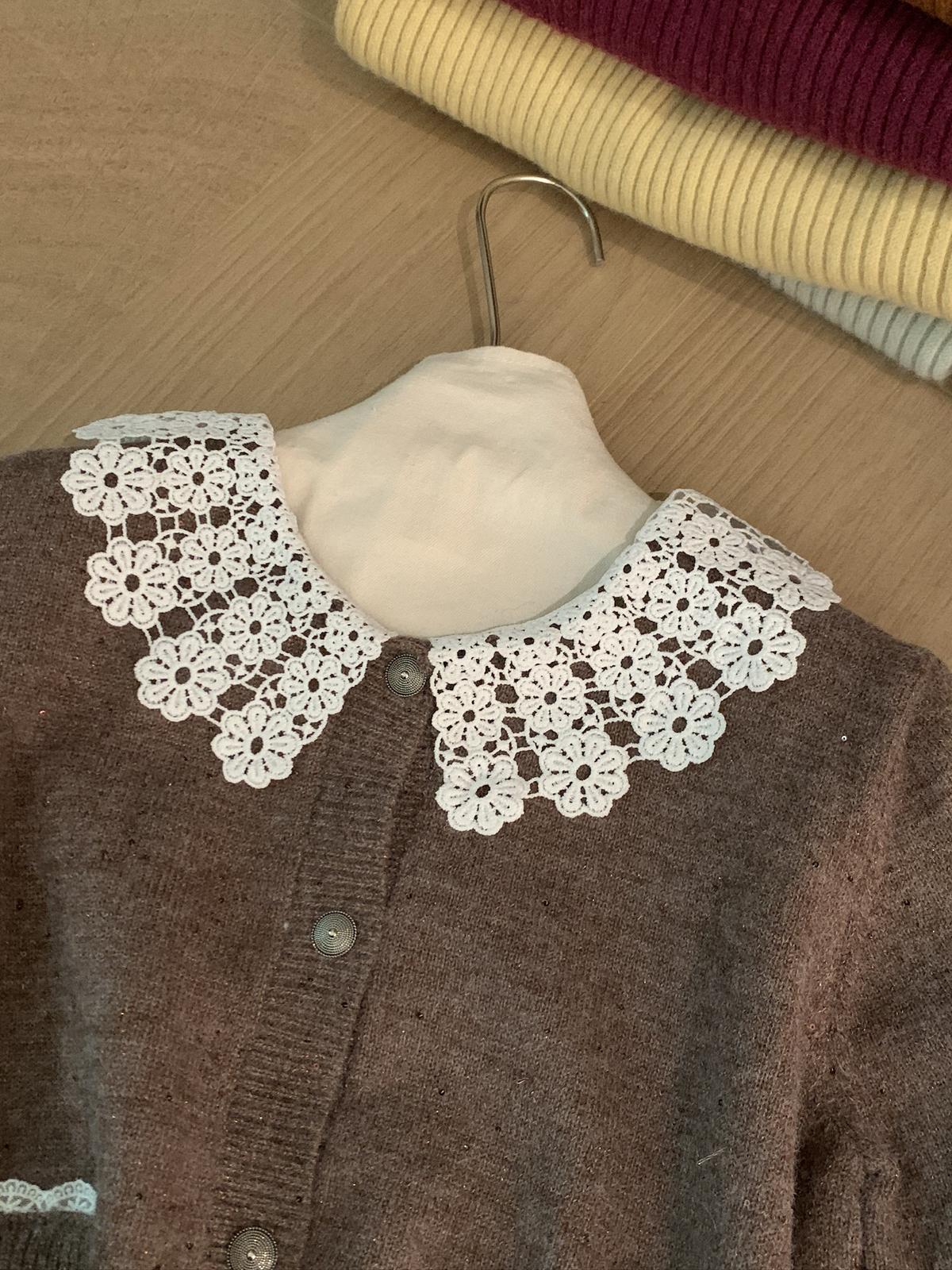 【C8033】韓系復古甜美花邊開衫毛衣+高腰半身裙套裝