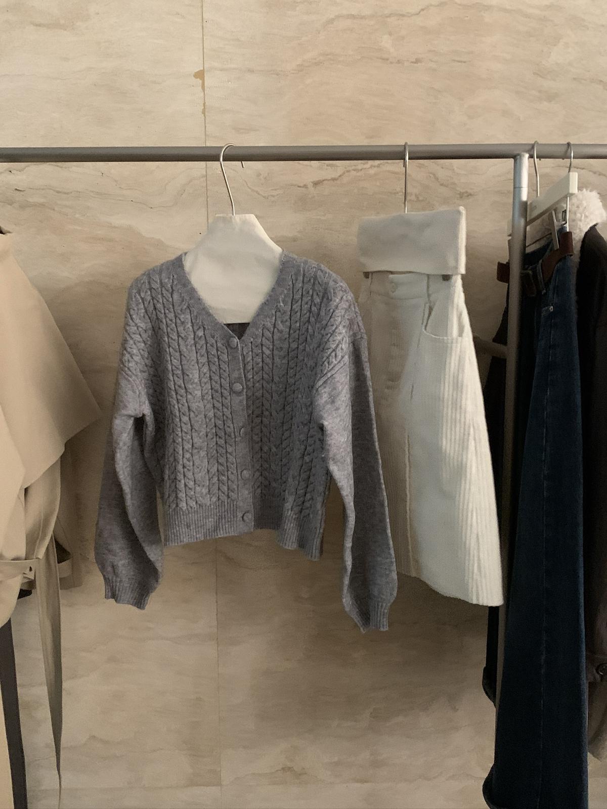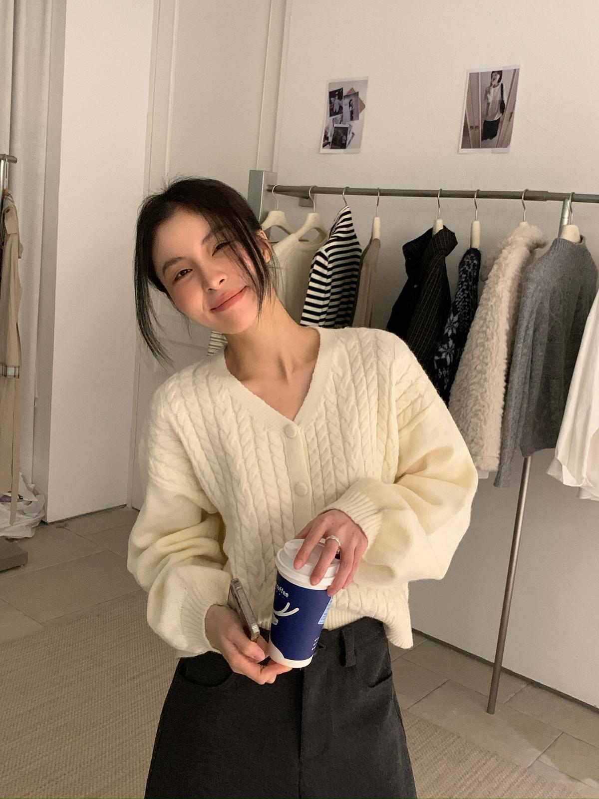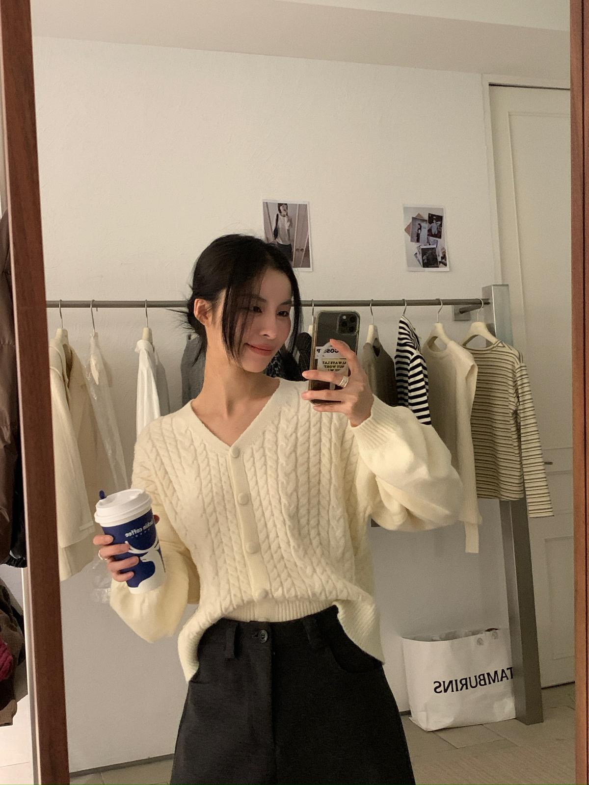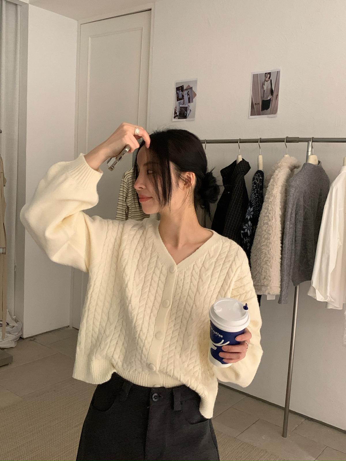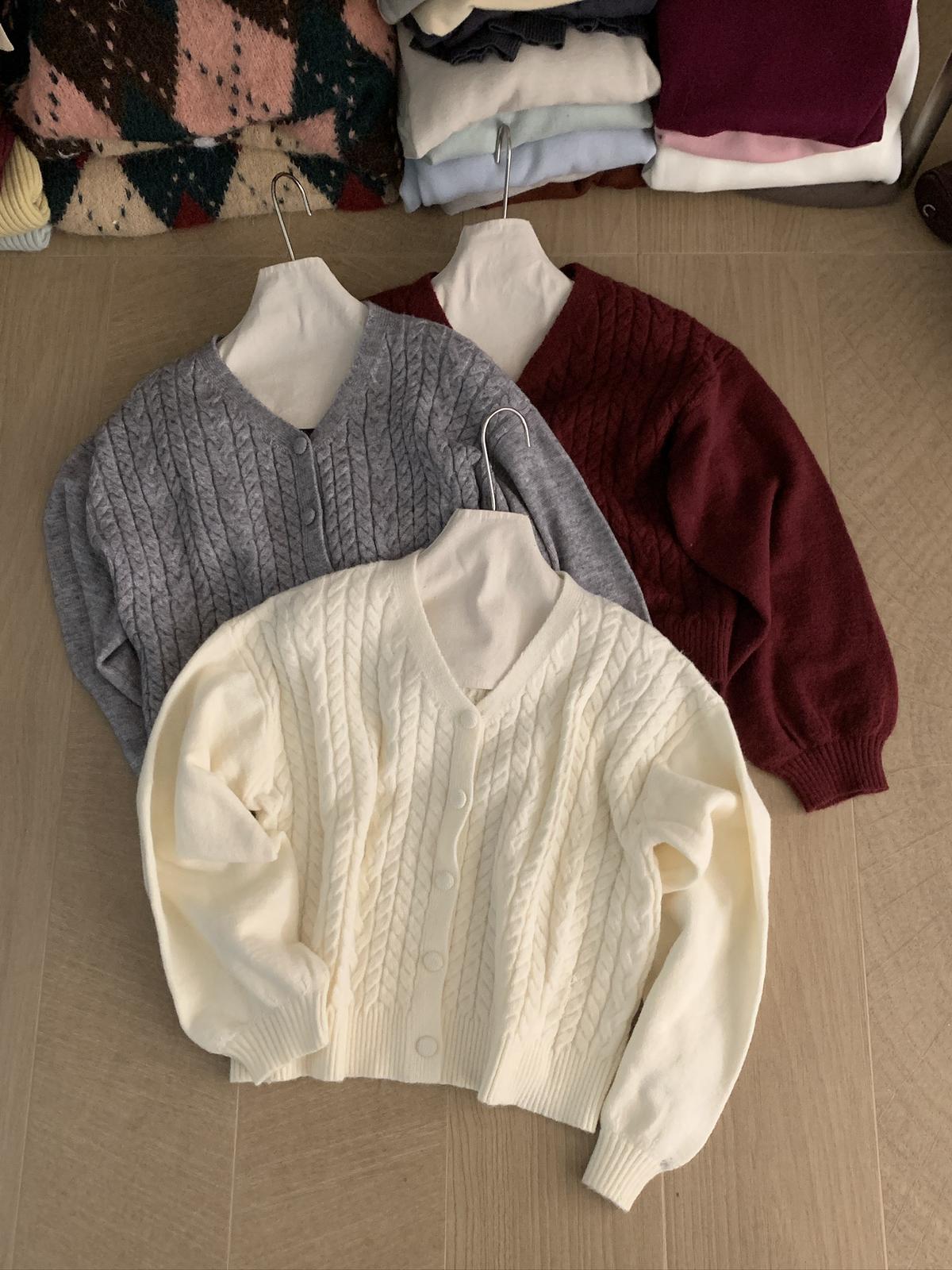 【C8035】韓系軟糯麻花V領開衫毛衣
