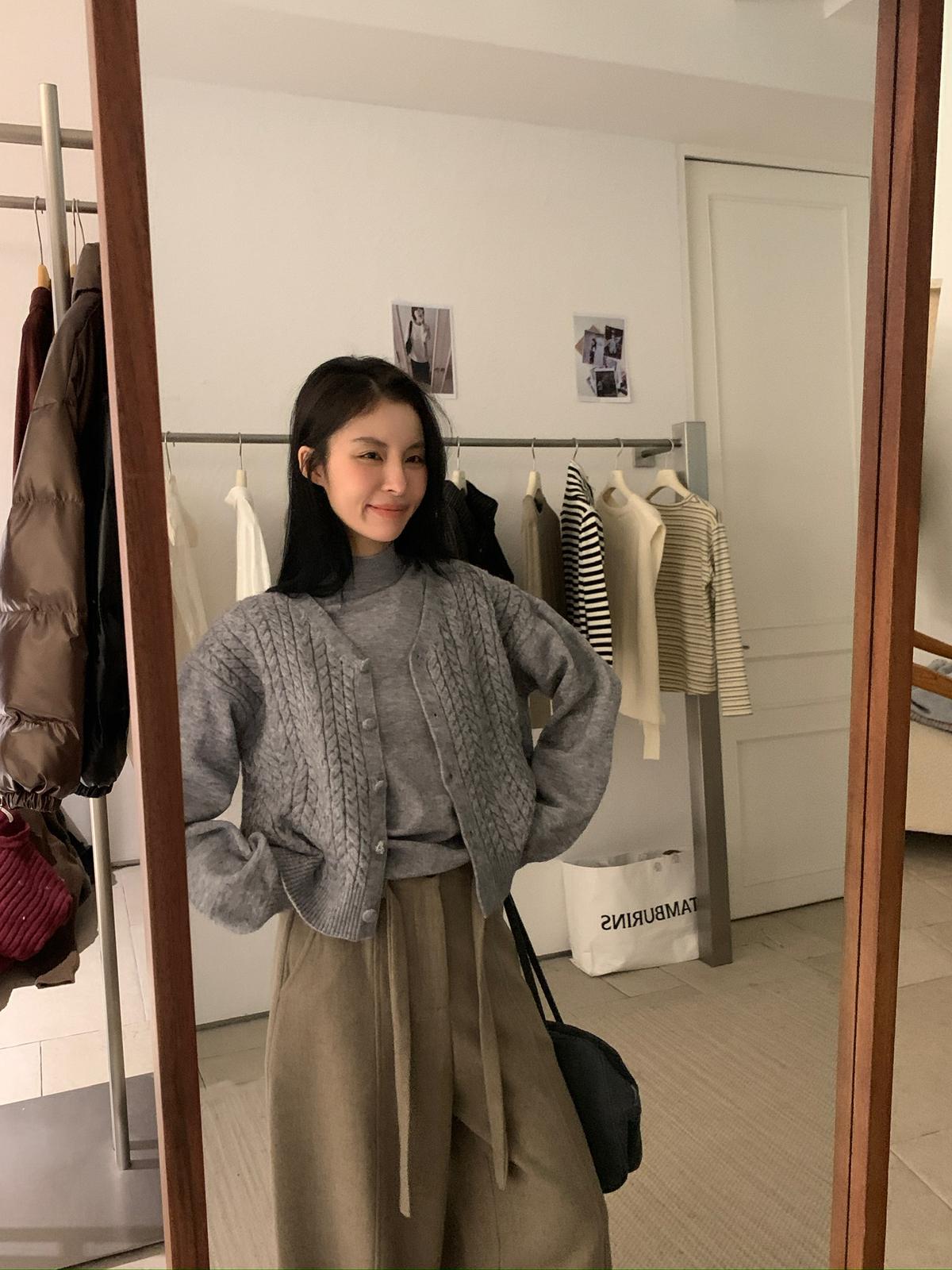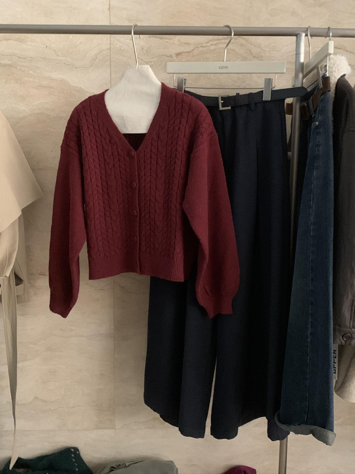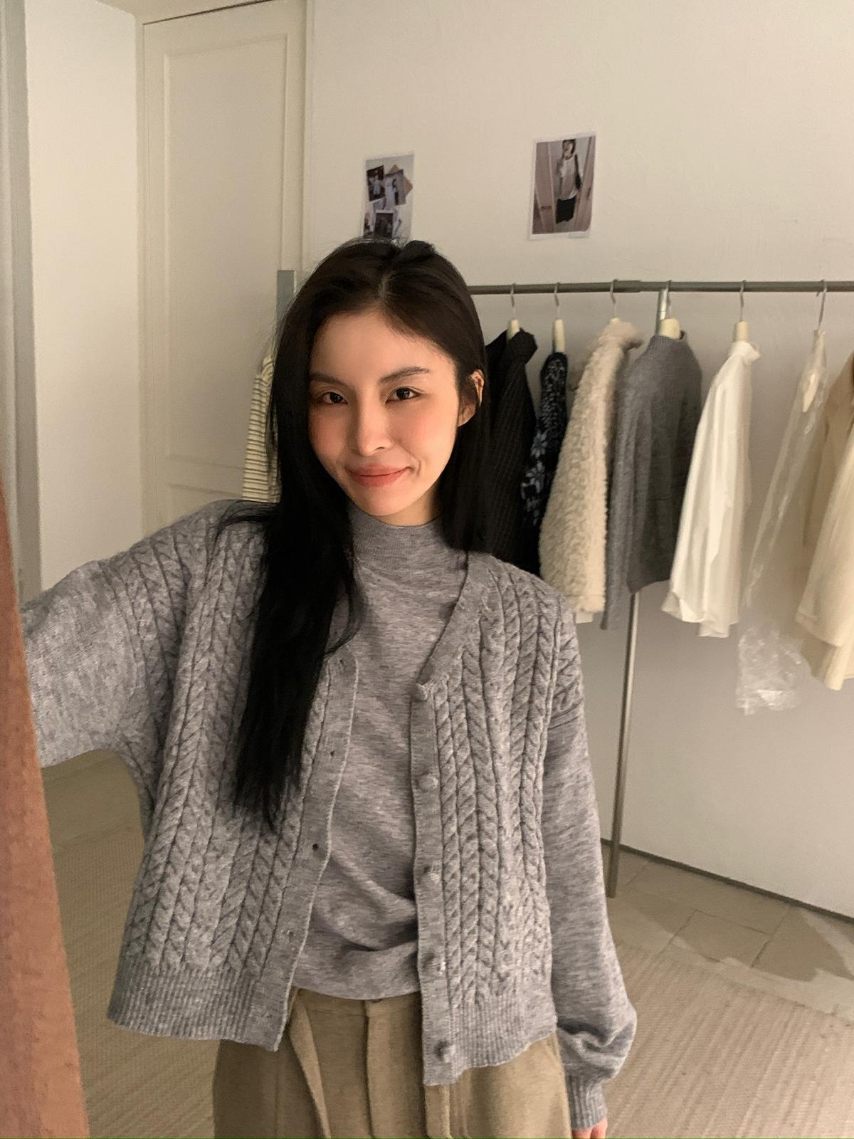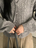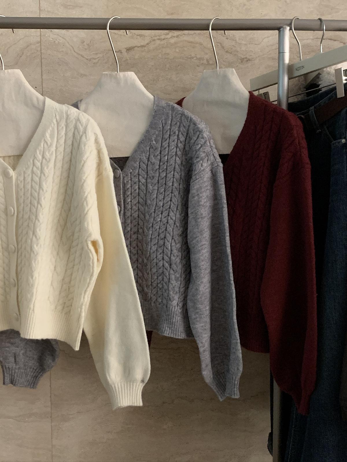 【C8035】韓系軟糯麻花V領開衫毛衣