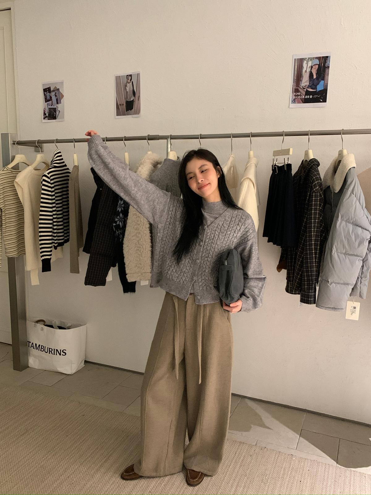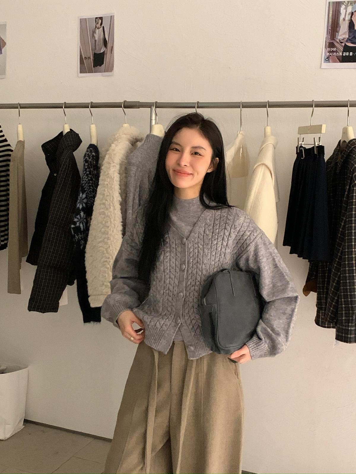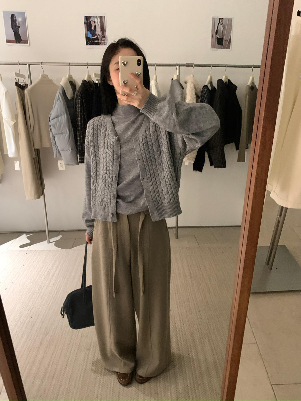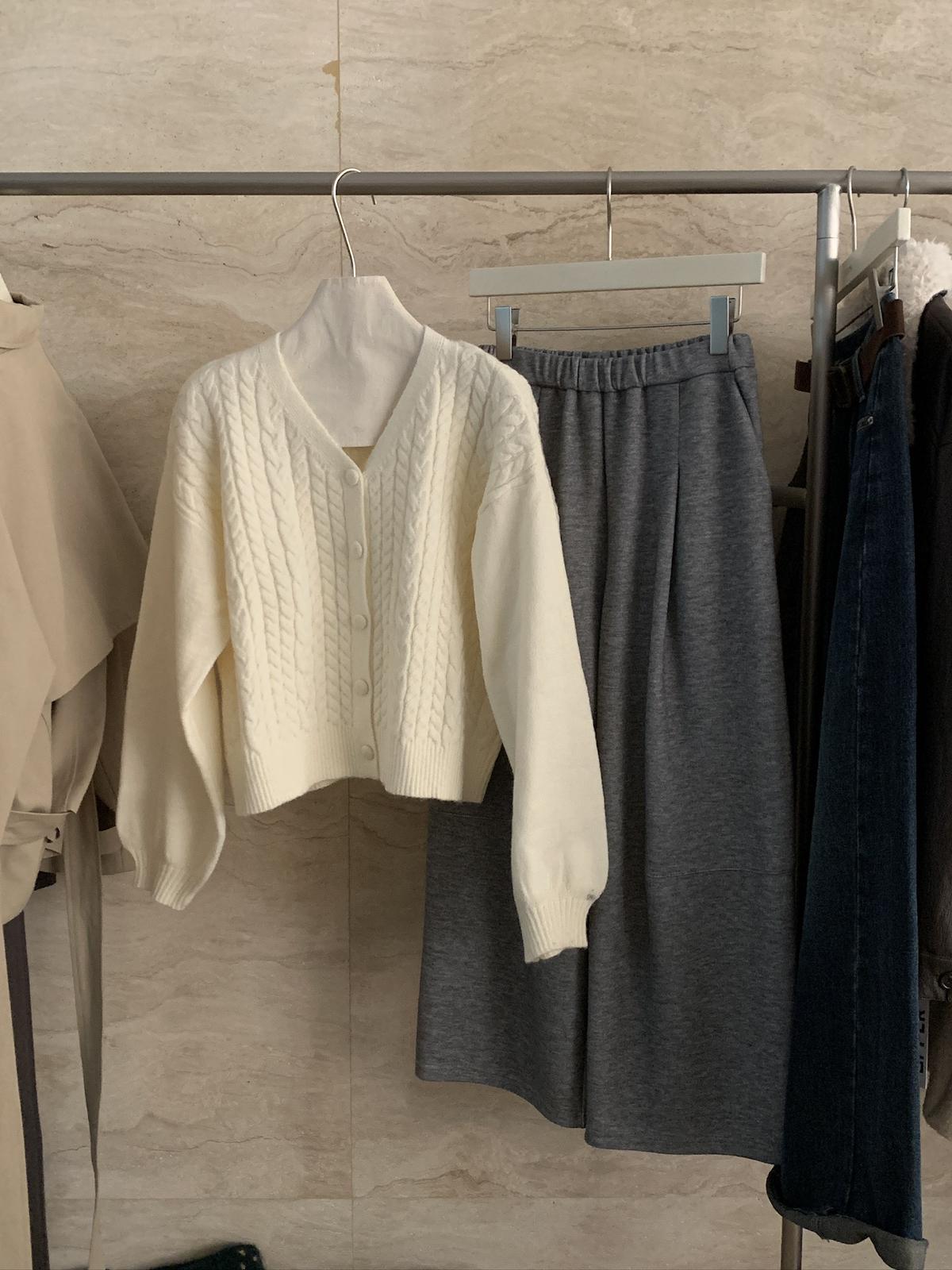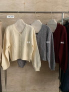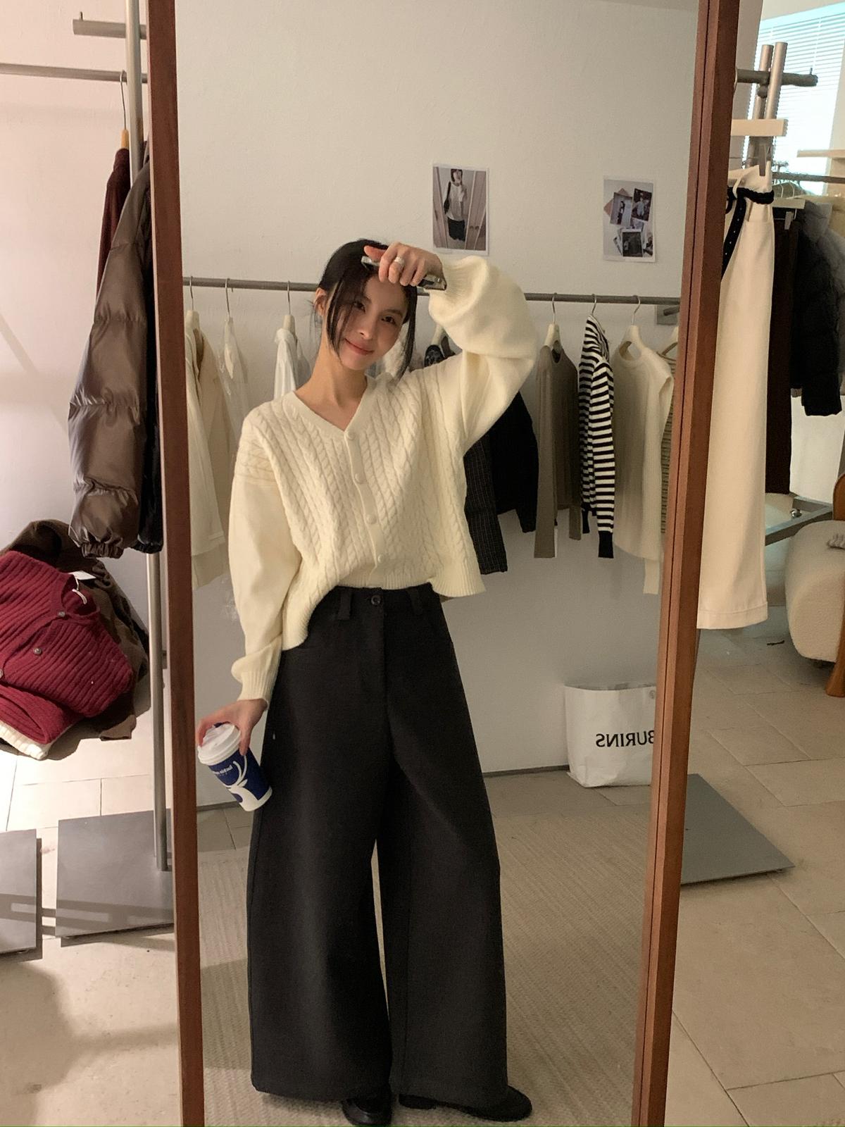 【C8035】韓系軟糯麻花V領開衫毛衣
