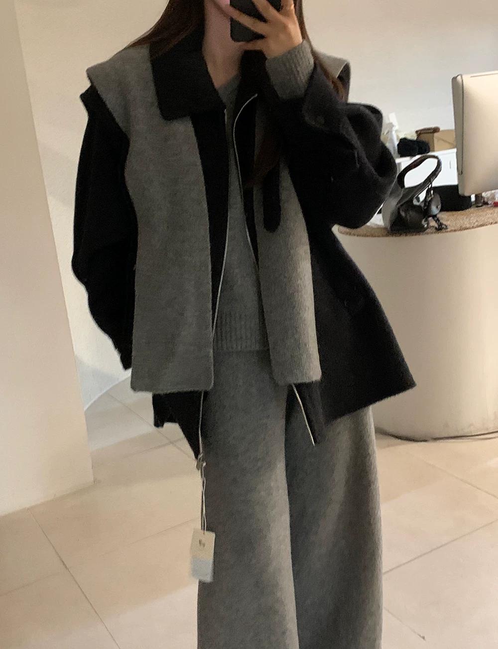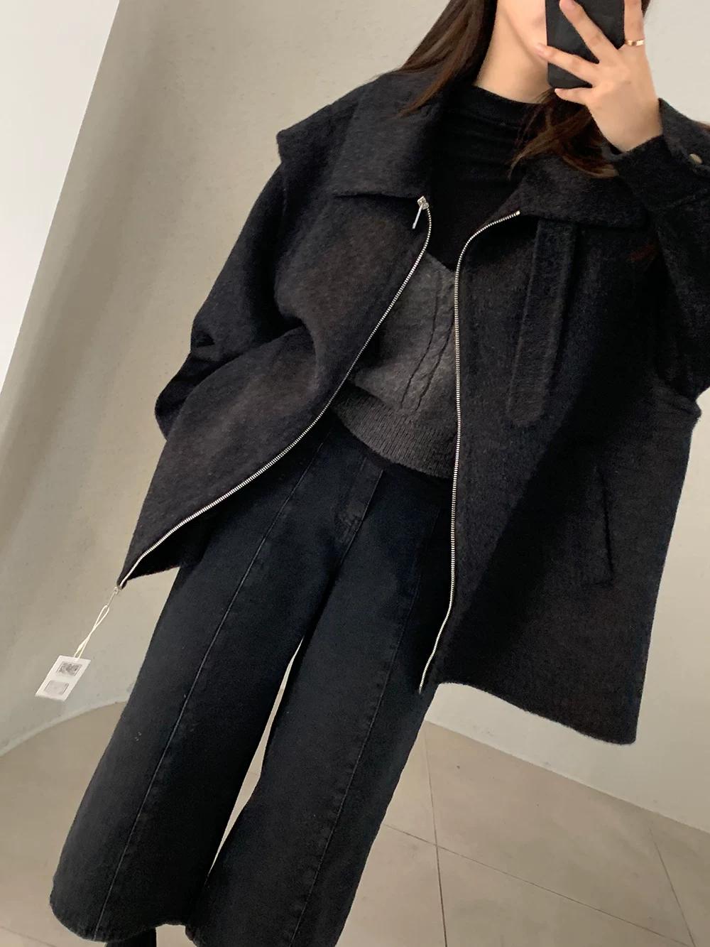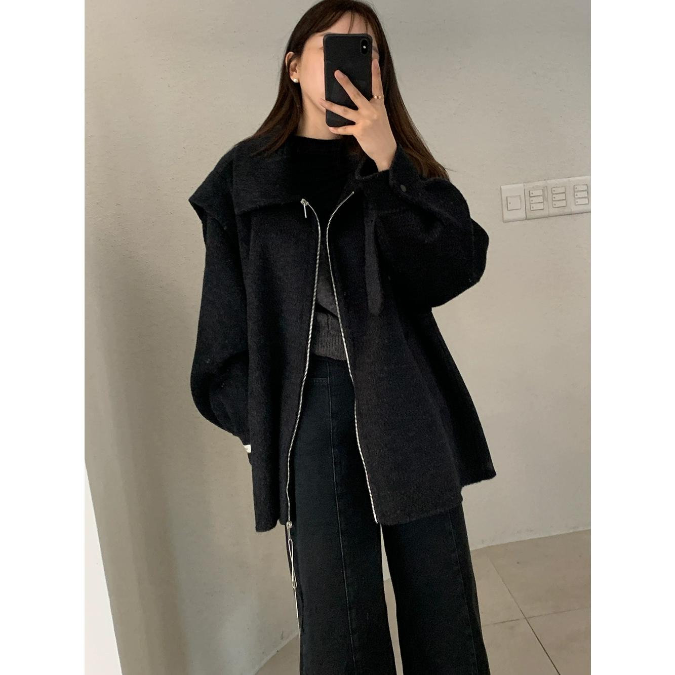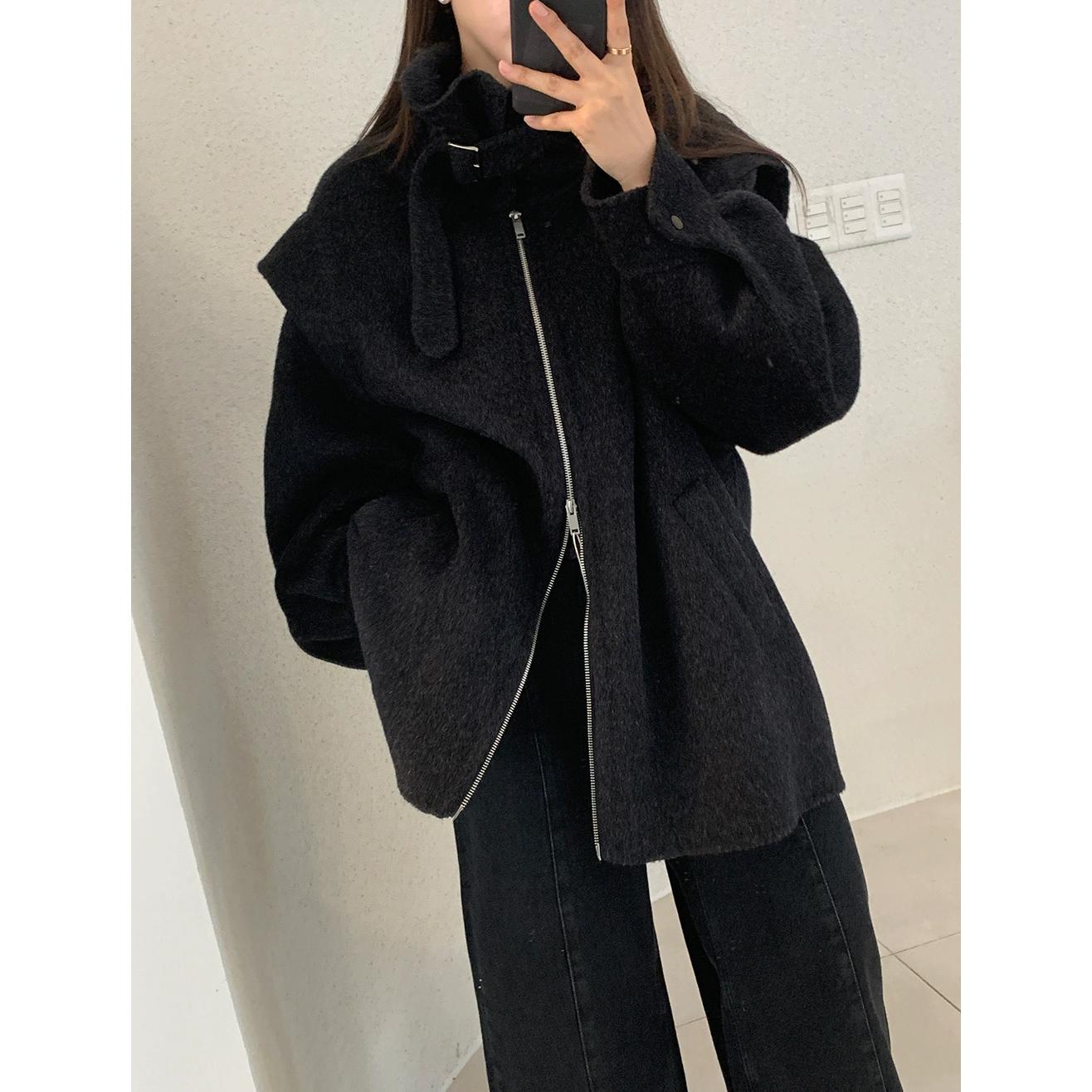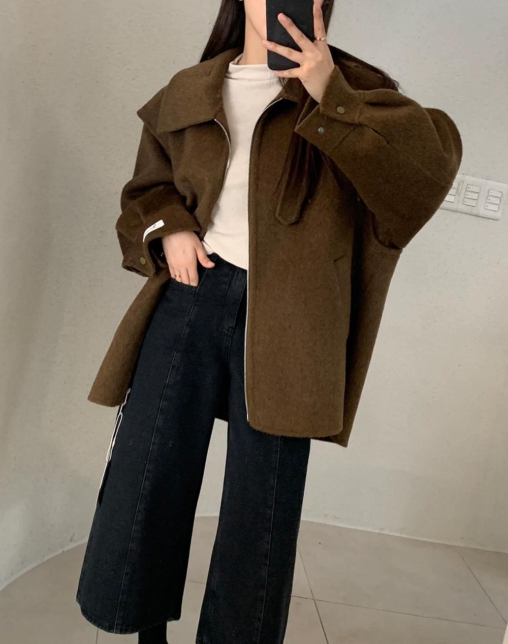 【C8036】設計感韓系翻領坎肩毛呢大衣復古立領設計感毛呢外套女大衣
