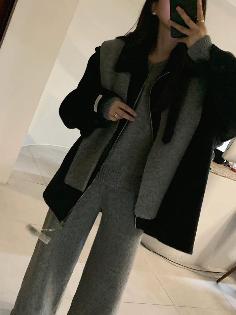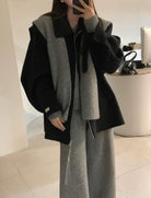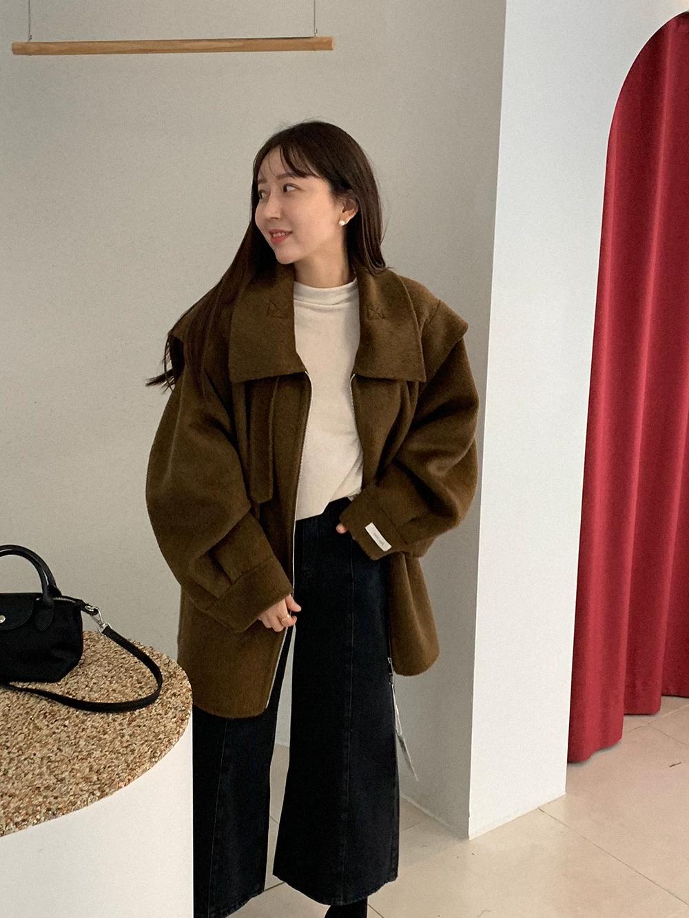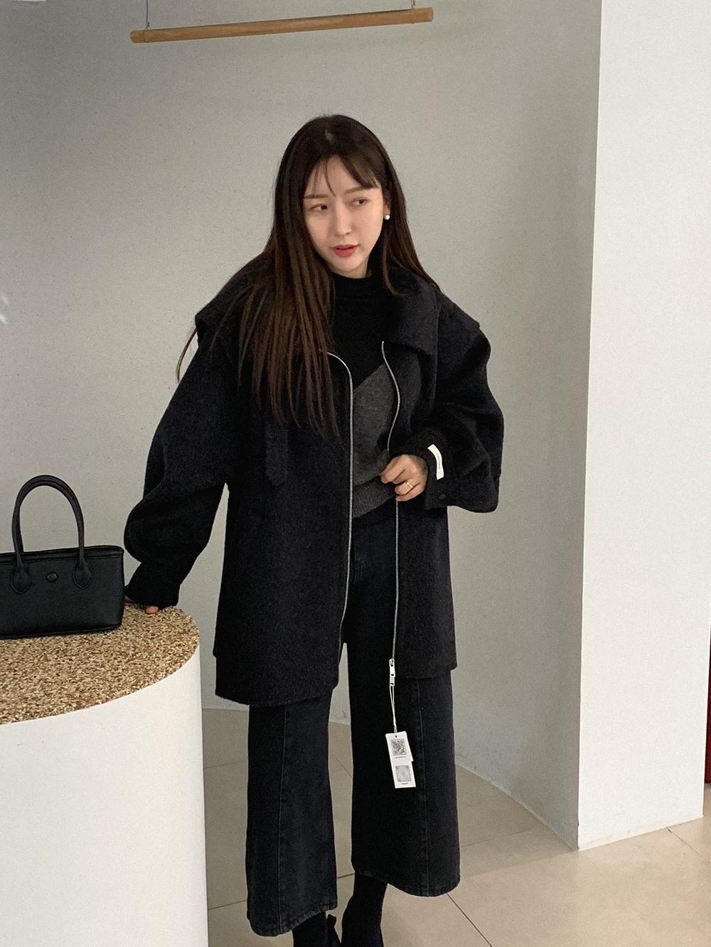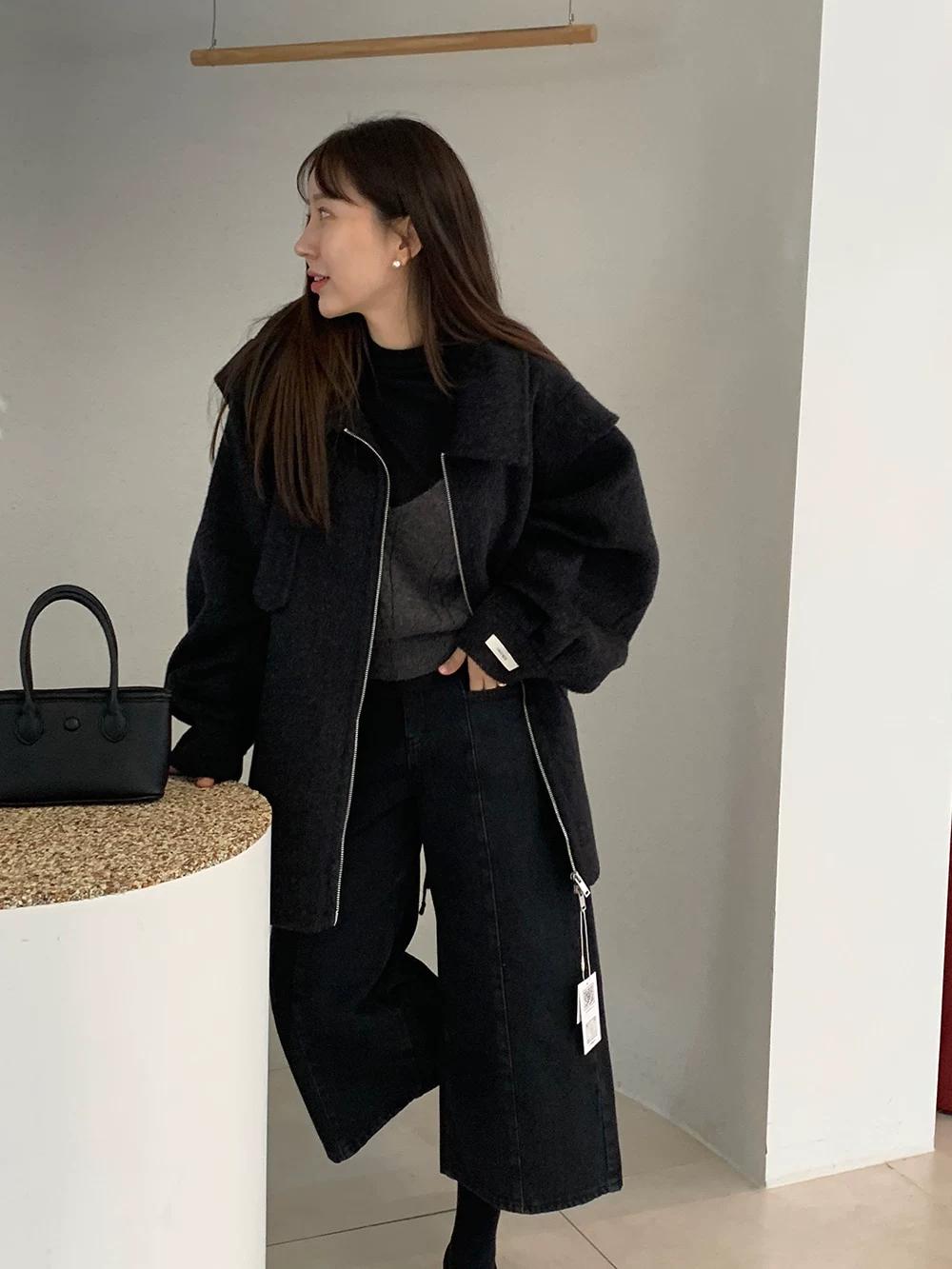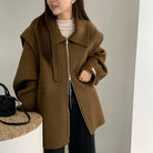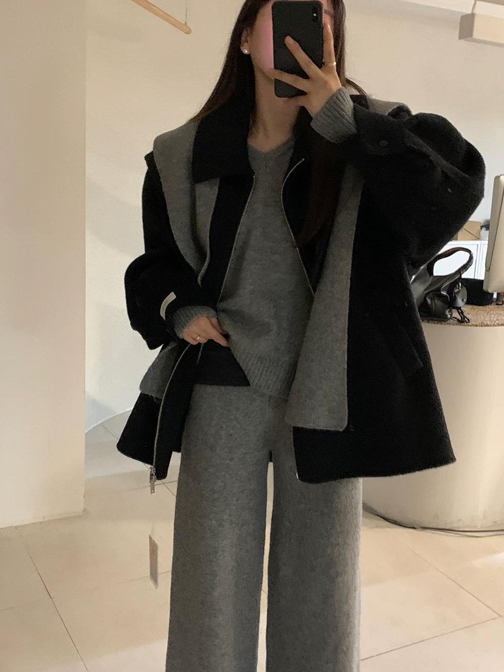 【C8036】設計感韓系翻領坎肩毛呢大衣復古立領設計感毛呢外套女大衣