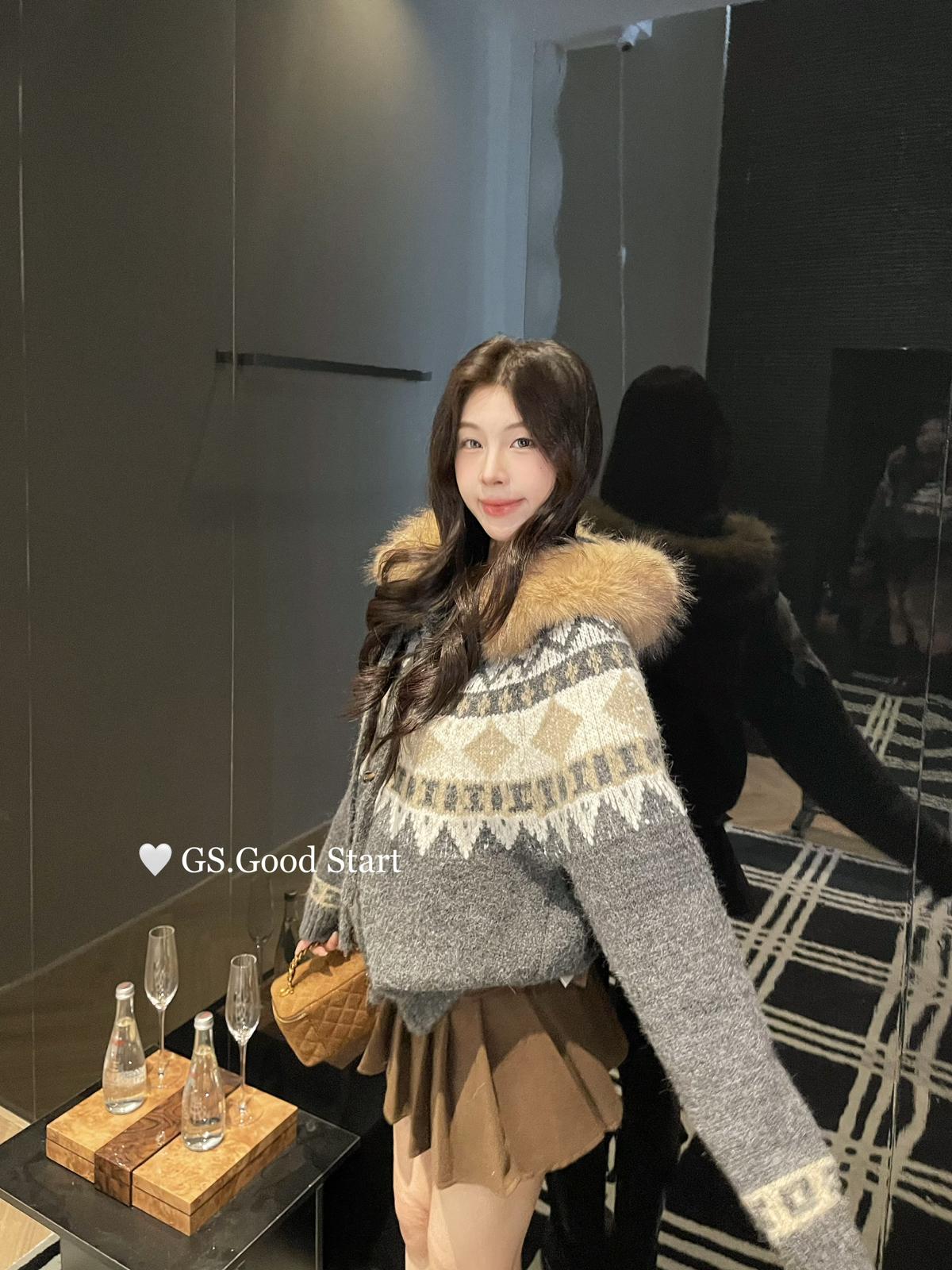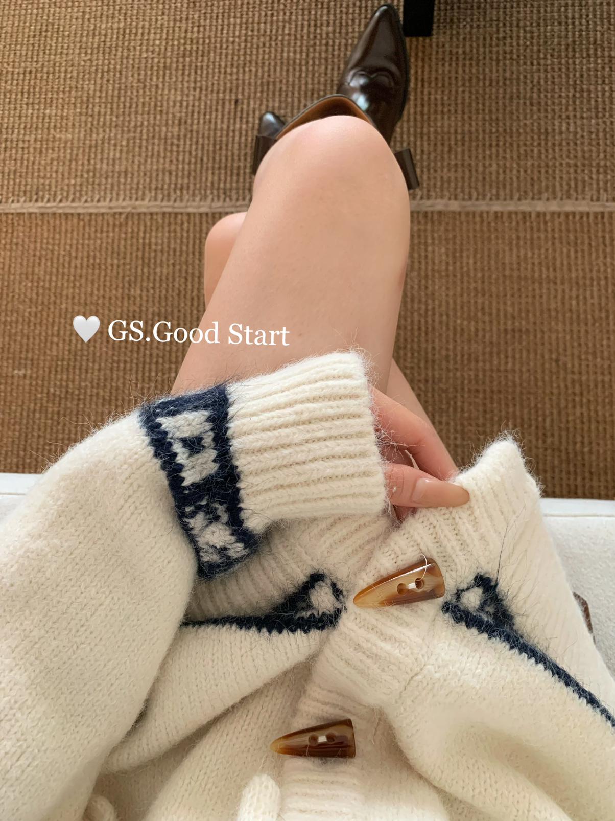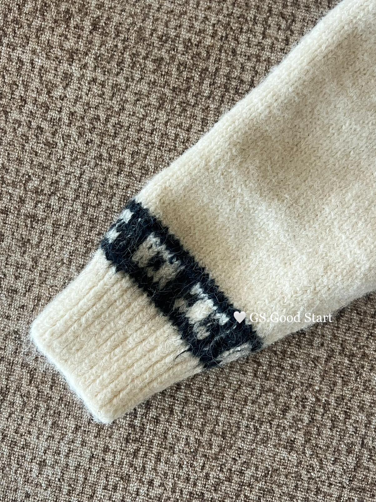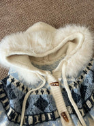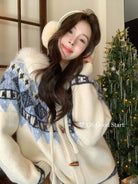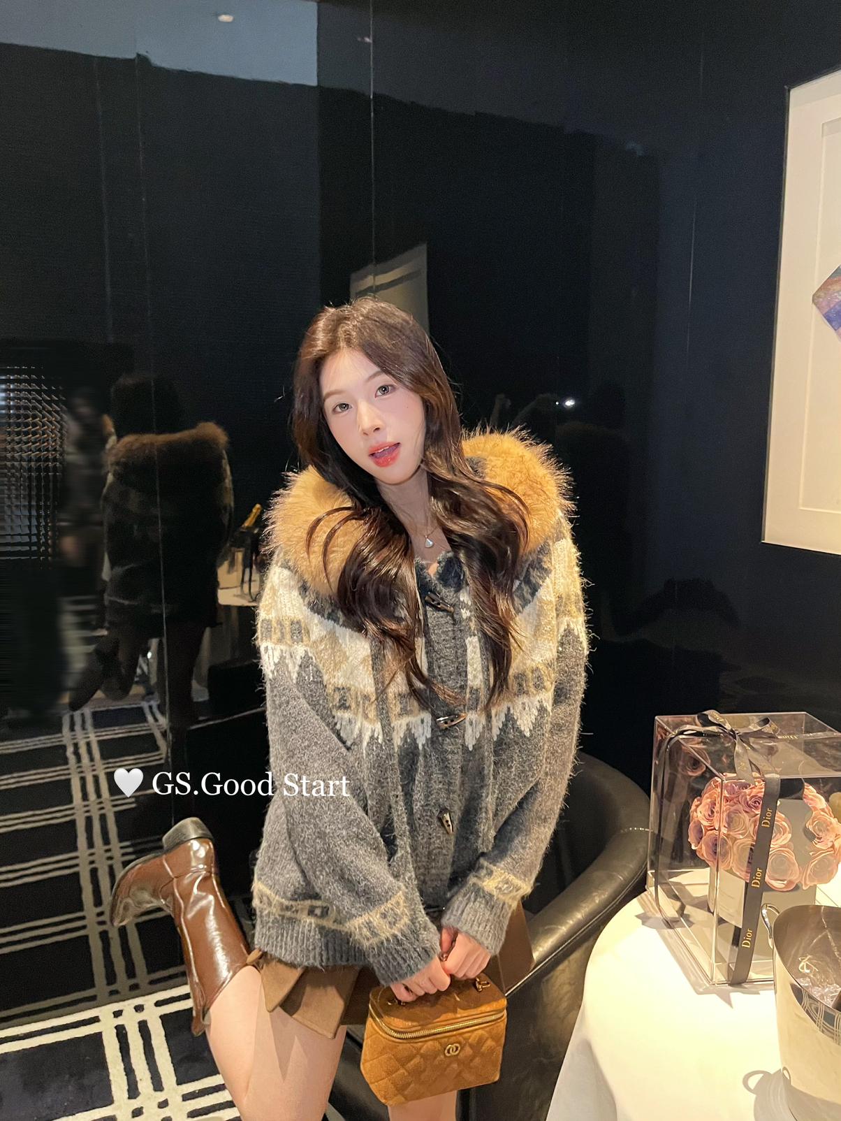 【C8038】超級火!冬季氛圍感拉滿!韓系甜美復古提花牛角扣寬鬆連帽保暖毛衣(配可拆卸毛領)