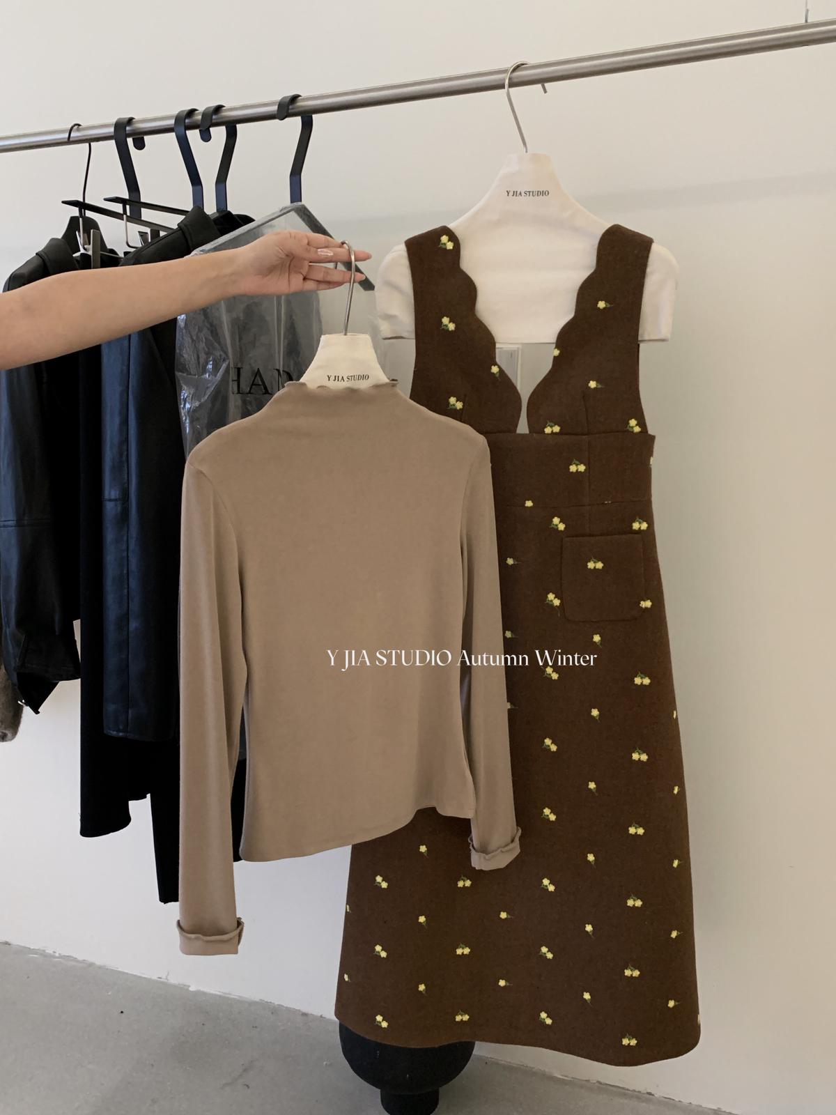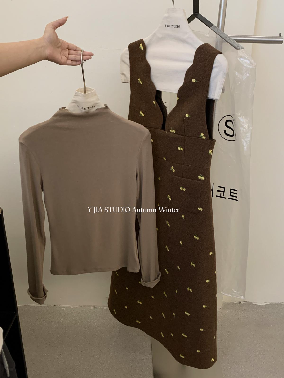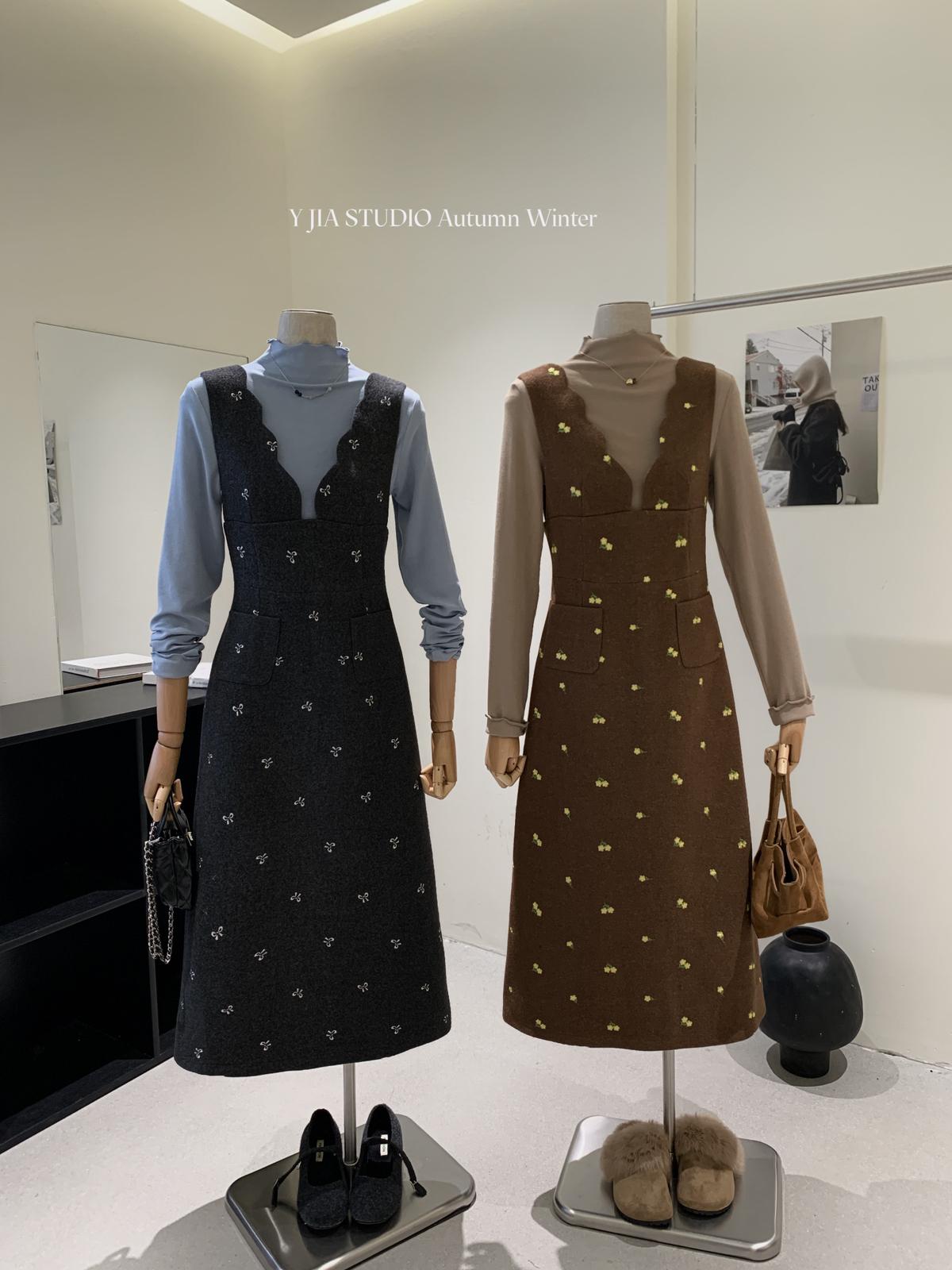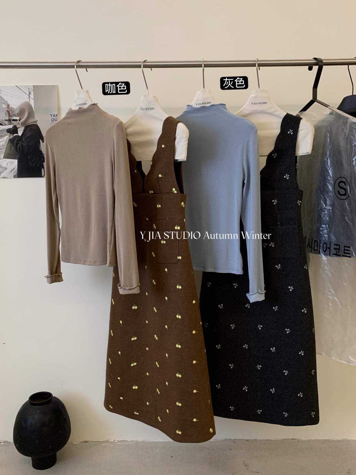 【C8044】韓版設計感重工刺繡背心連衣裙+半高領修身打底衫套裝