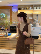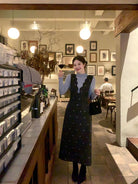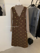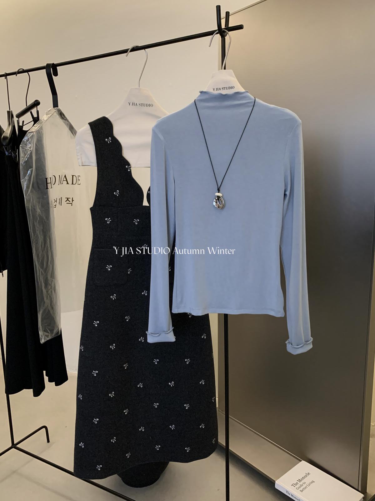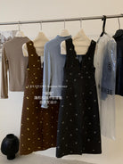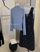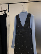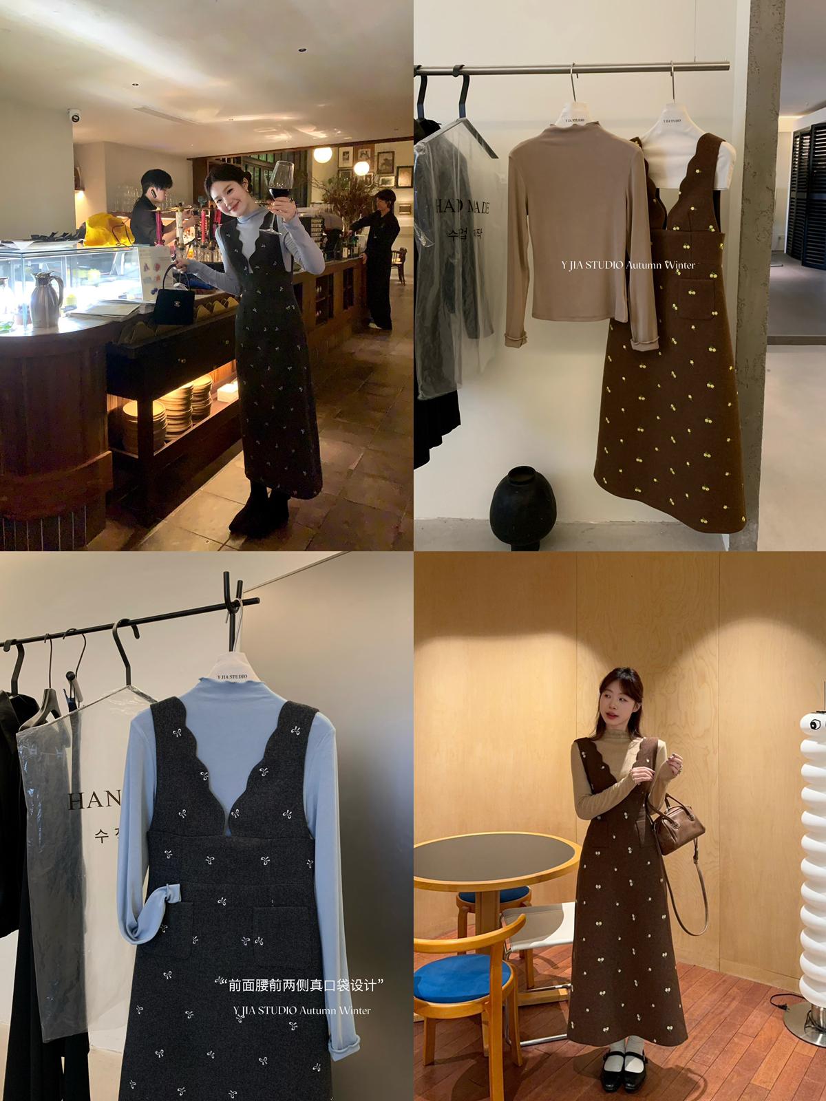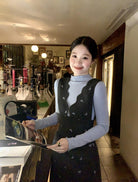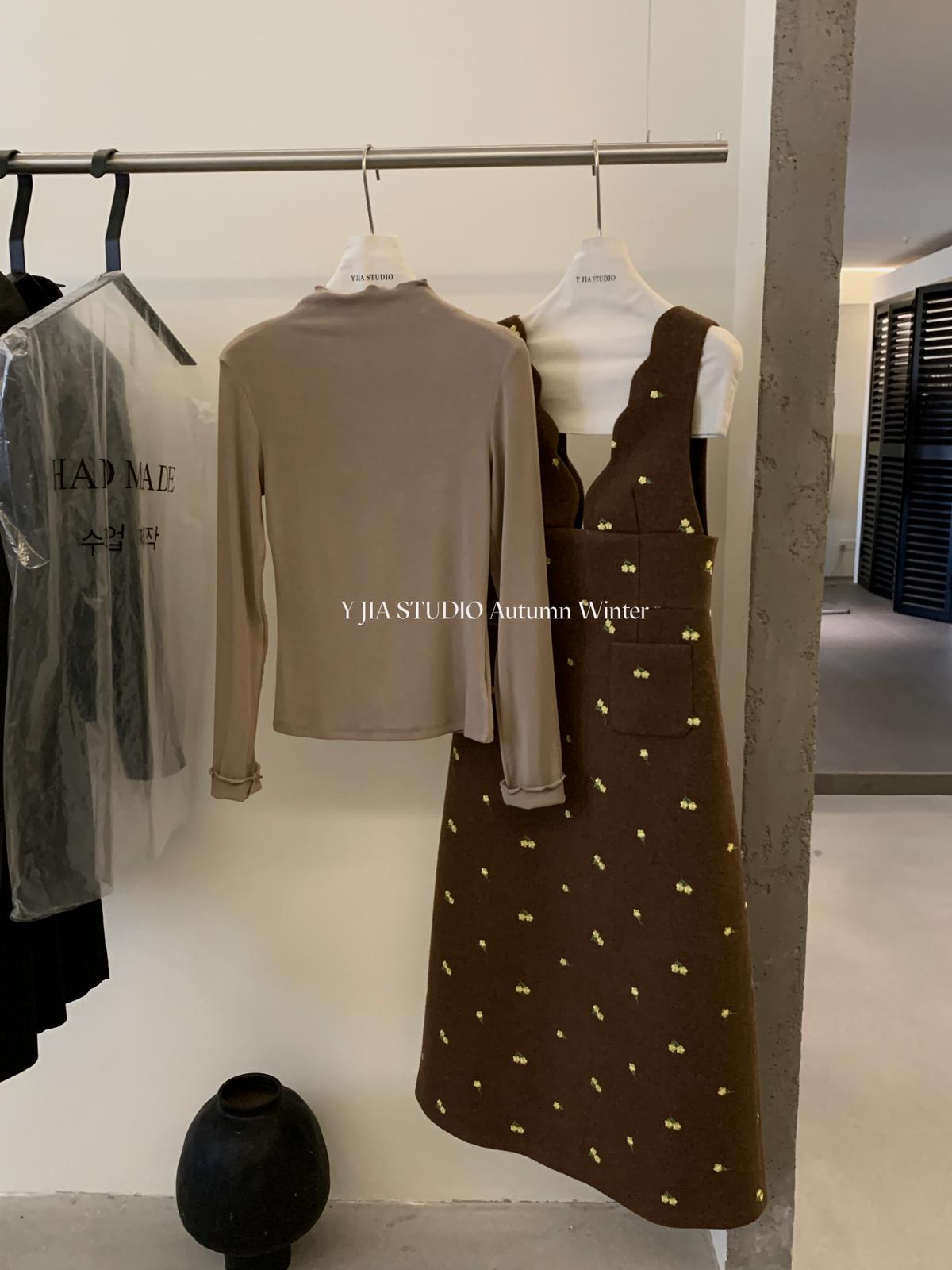 【C8044】韓版設計感重工刺繡背心連衣裙+半高領修身打底衫套裝