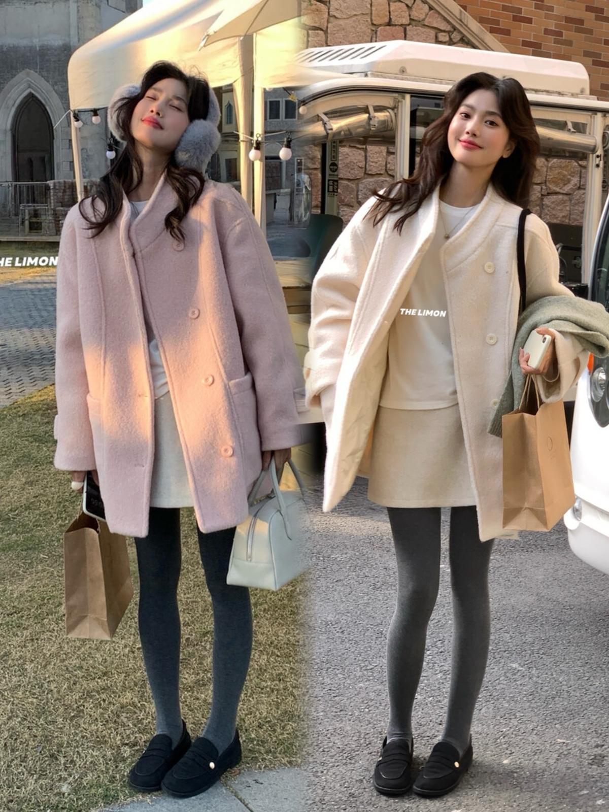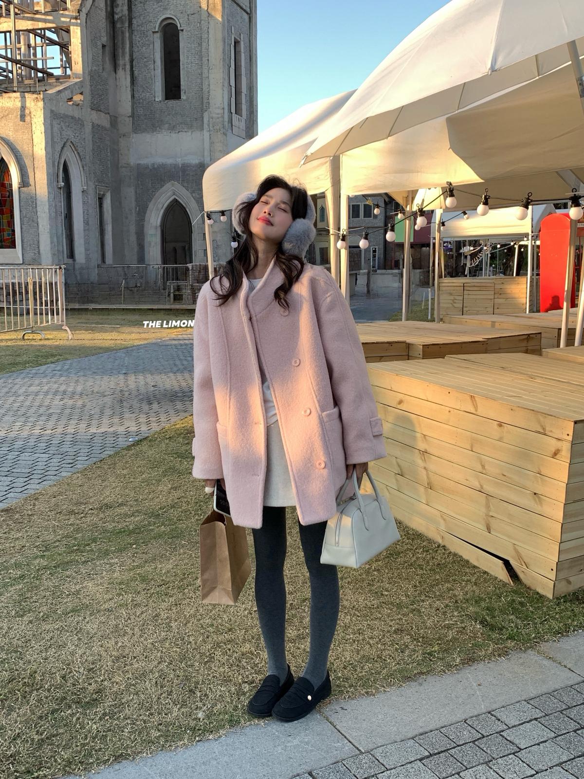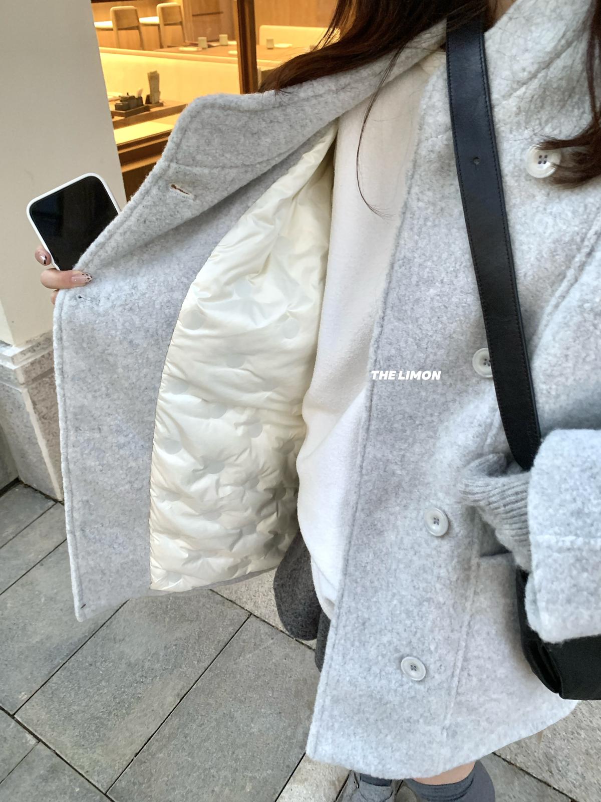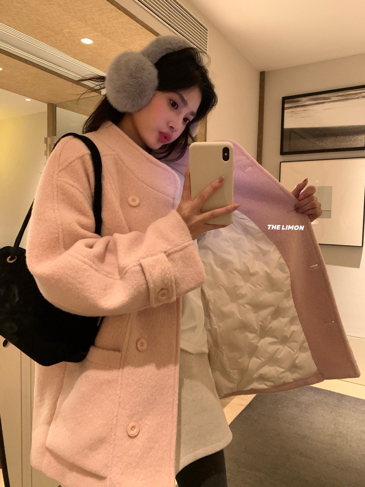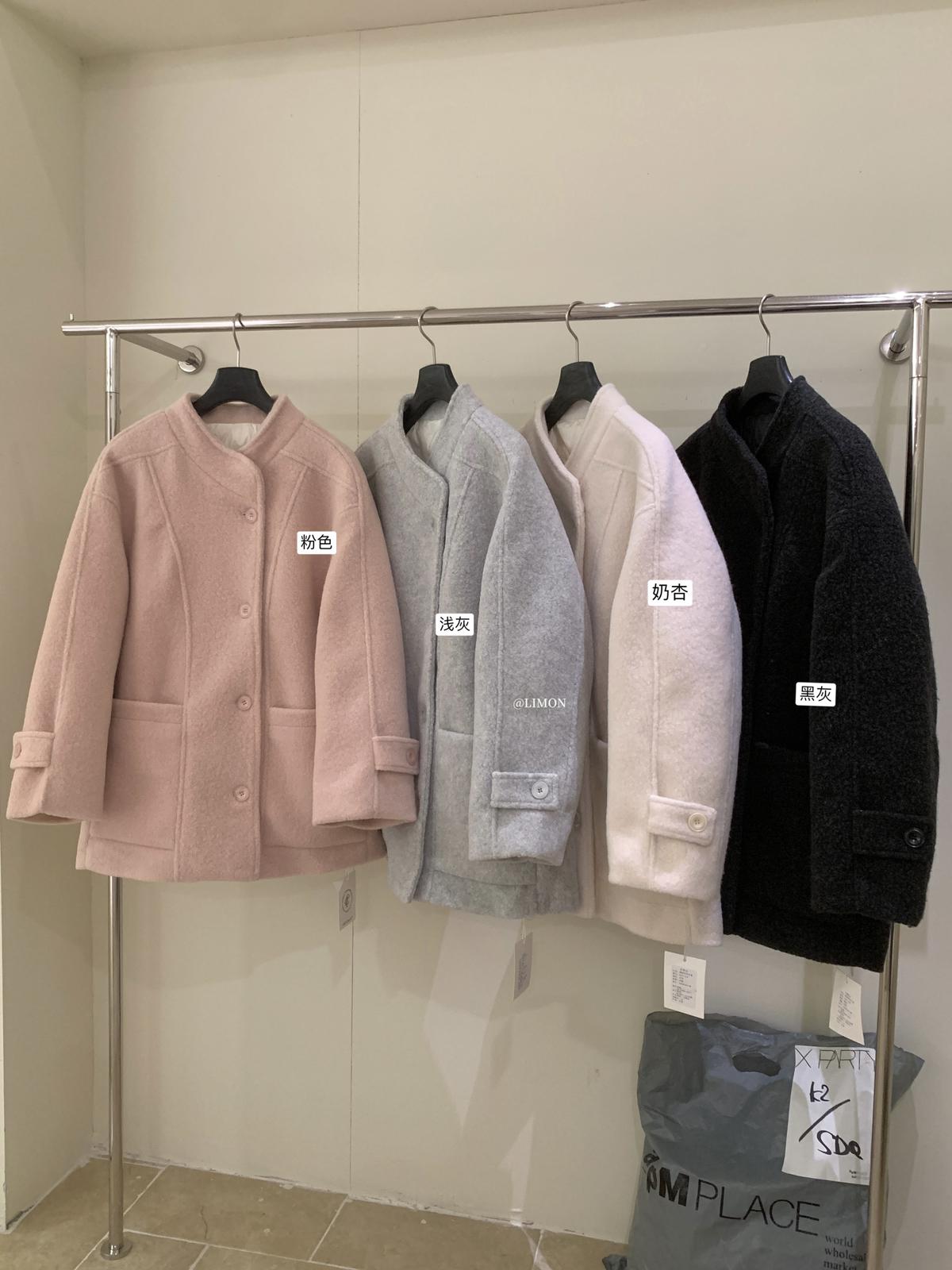 【C8047】高級感圈圈毛立領呢料保暖羽絨服外套