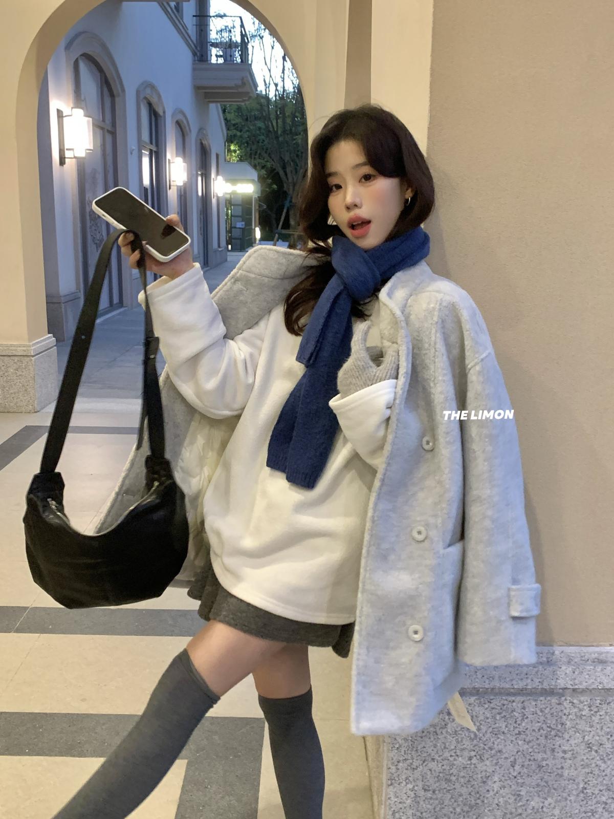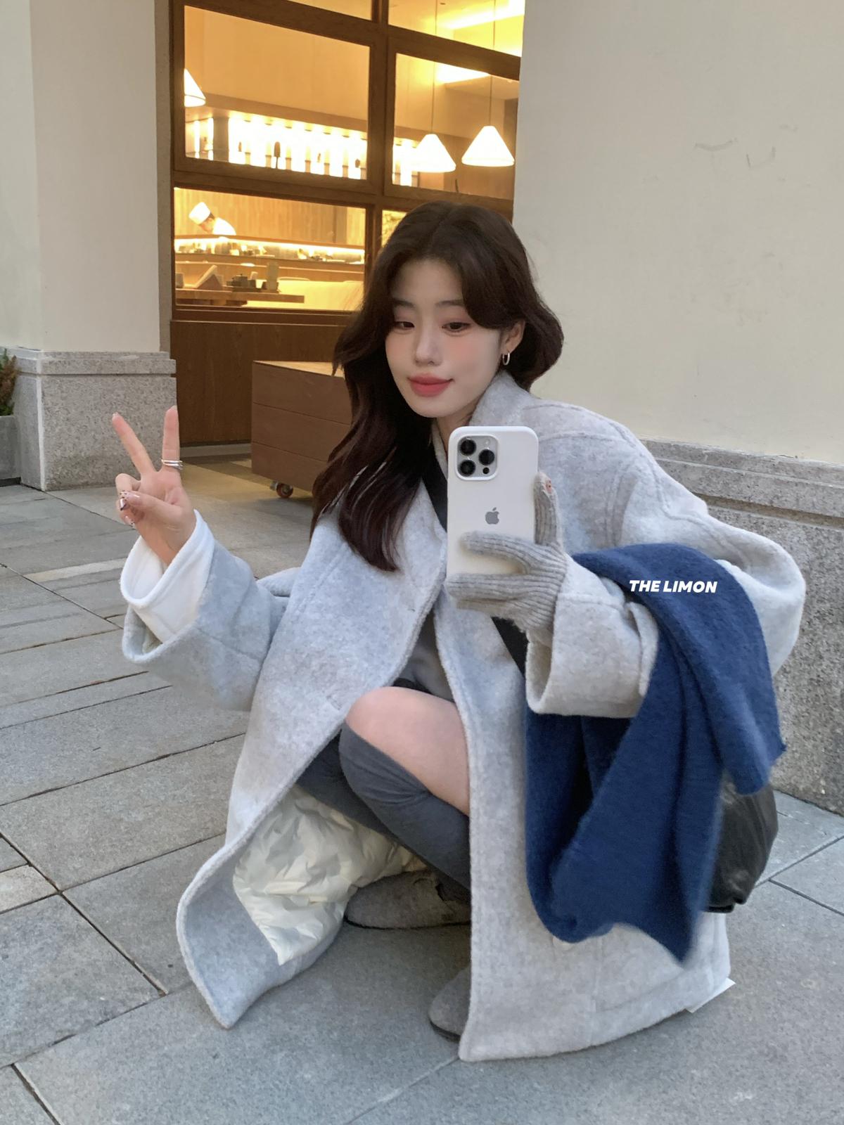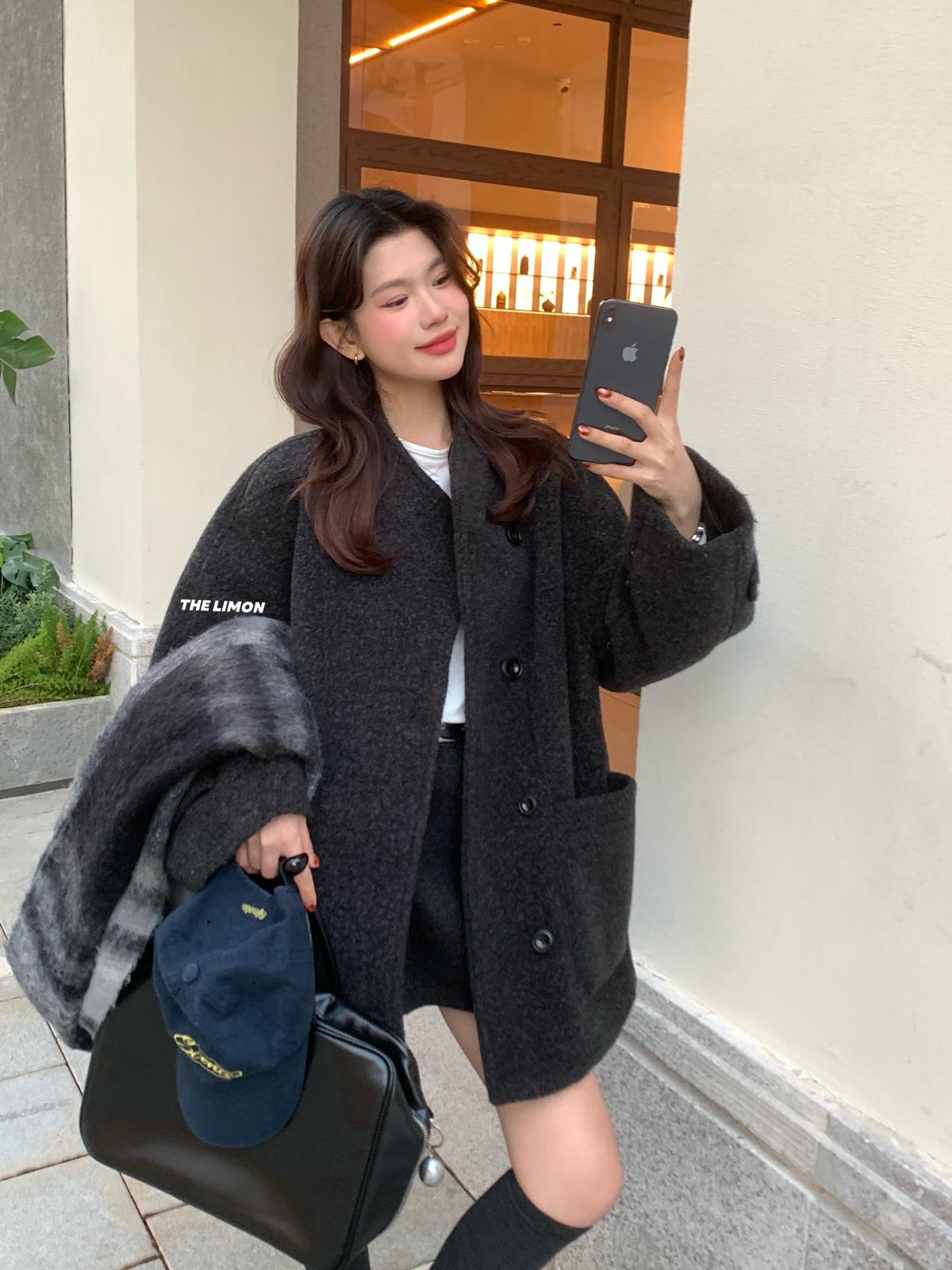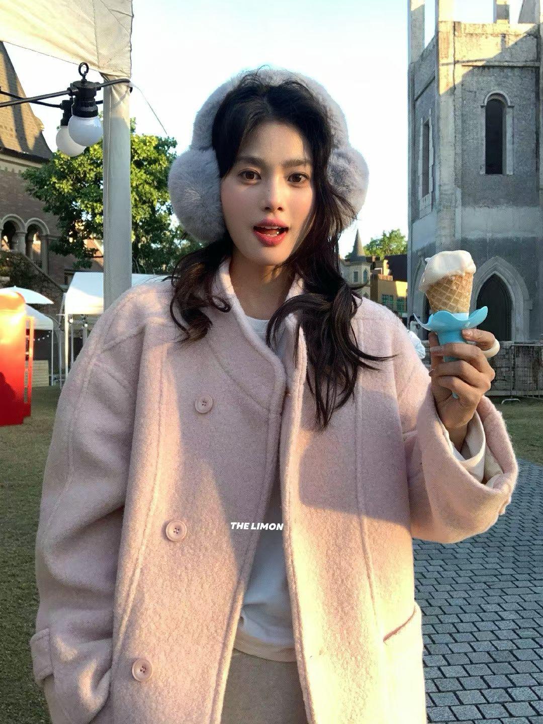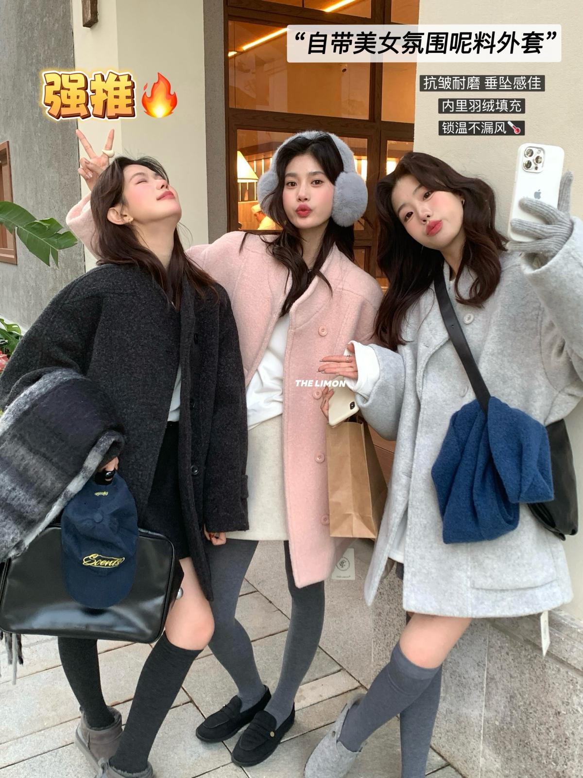 【C8047】高級感圈圈毛立領呢料保暖羽絨服外套