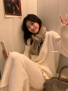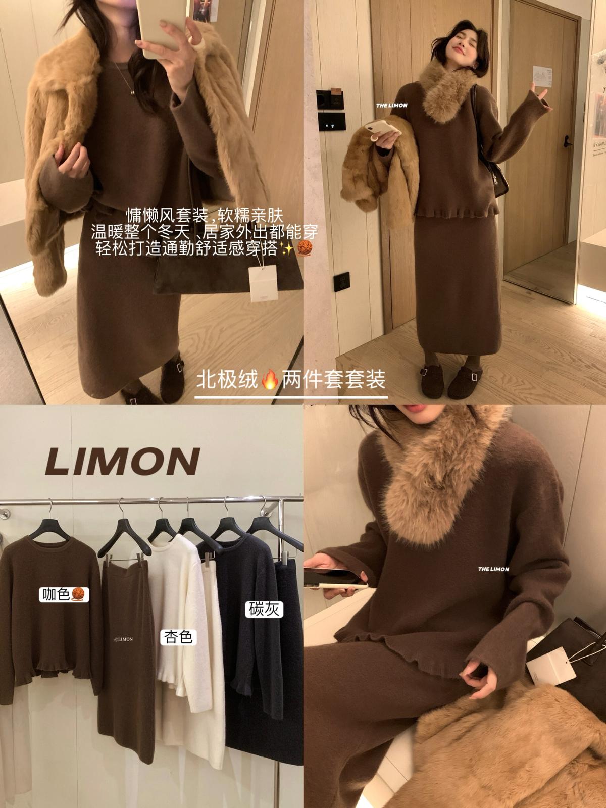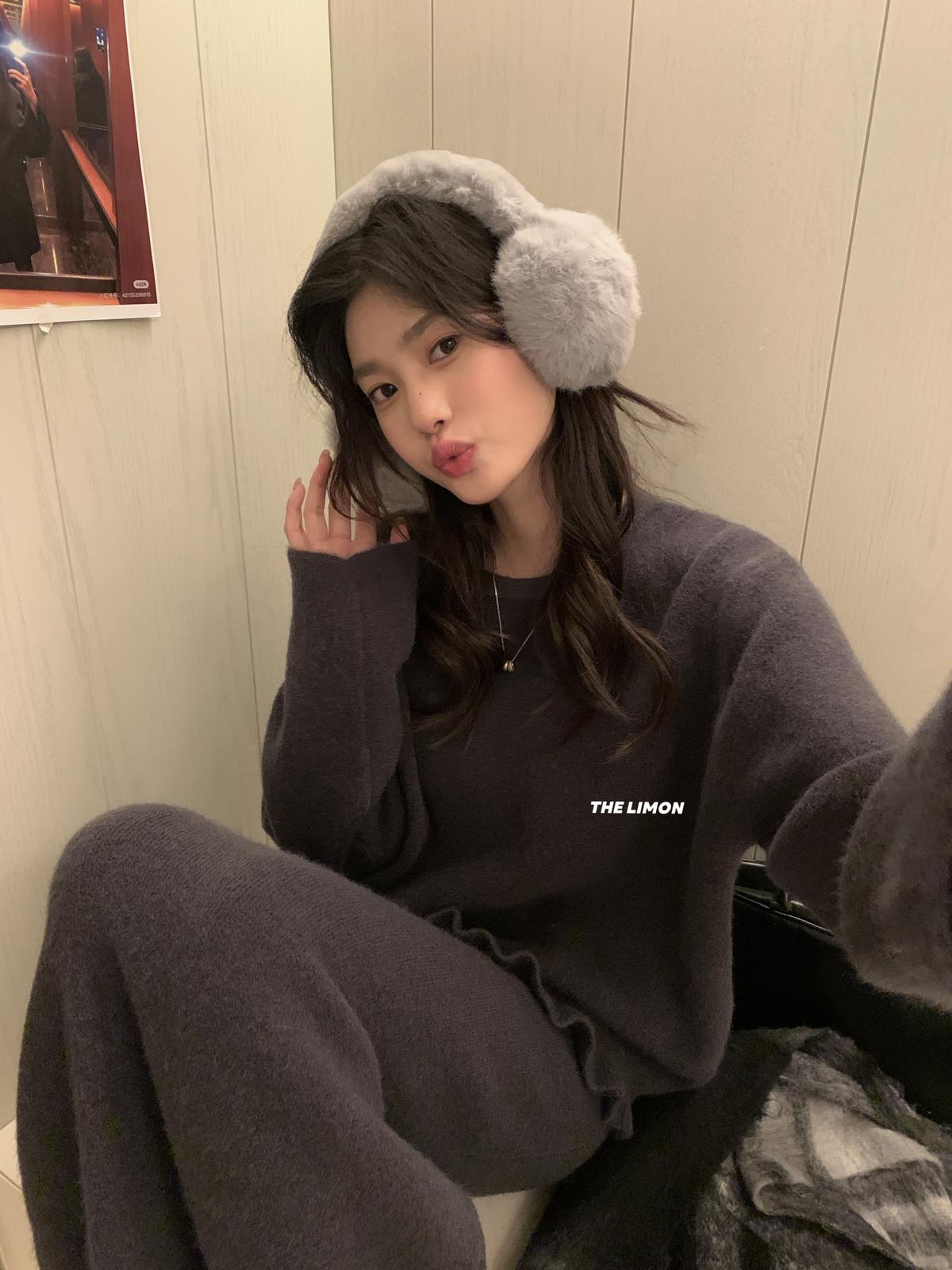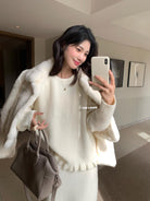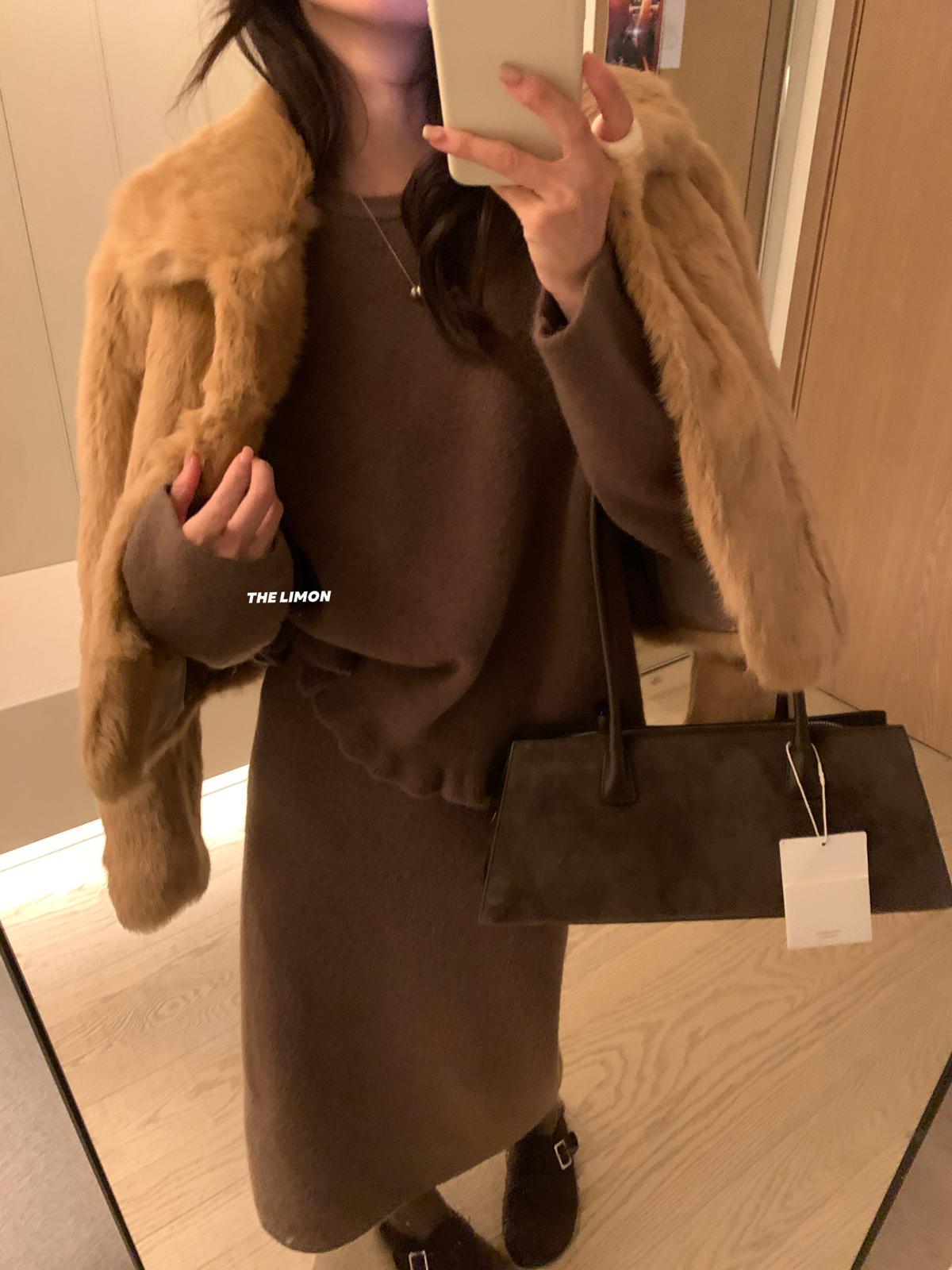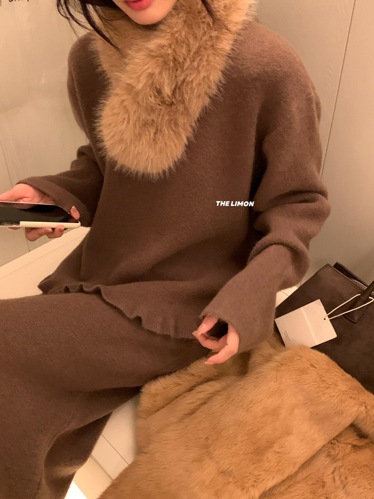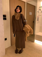 【C8048】慵懶木耳邊圓領毛衣+鬆緊腰顯瘦半身裙套裝