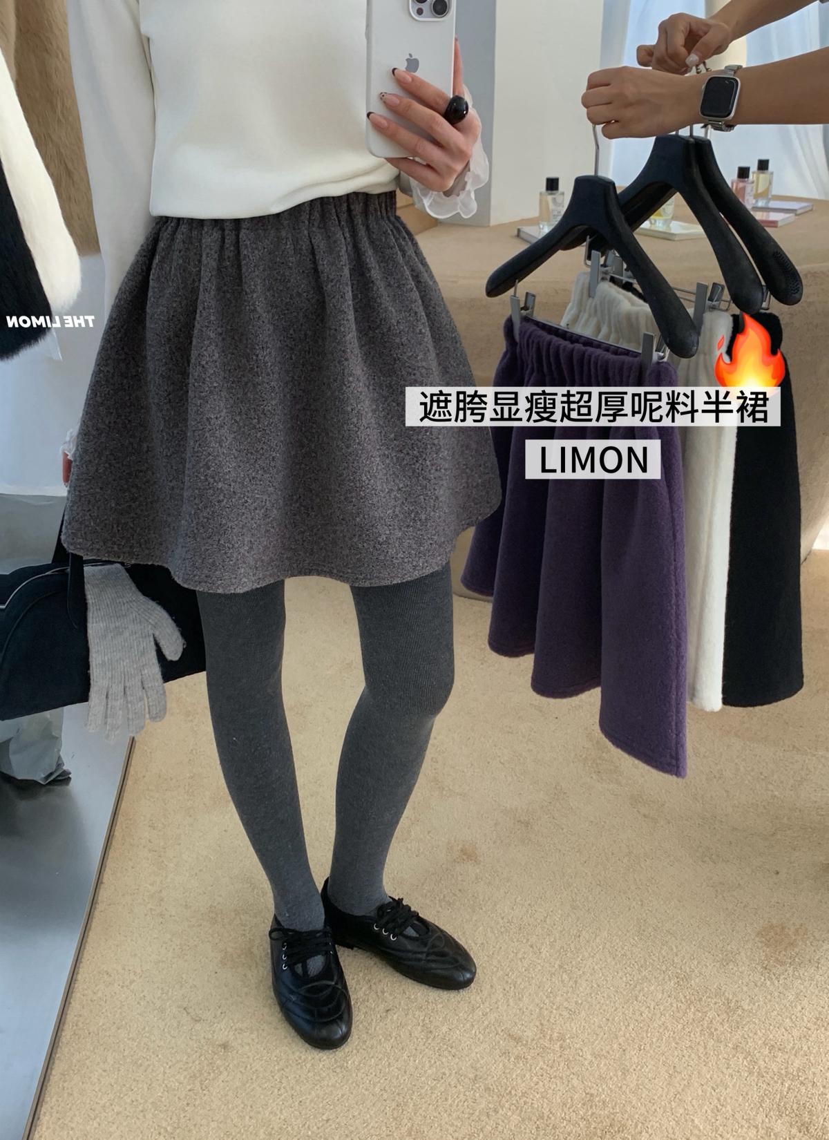 【C8050】遮胯顯瘦超厚毛呢半身裙