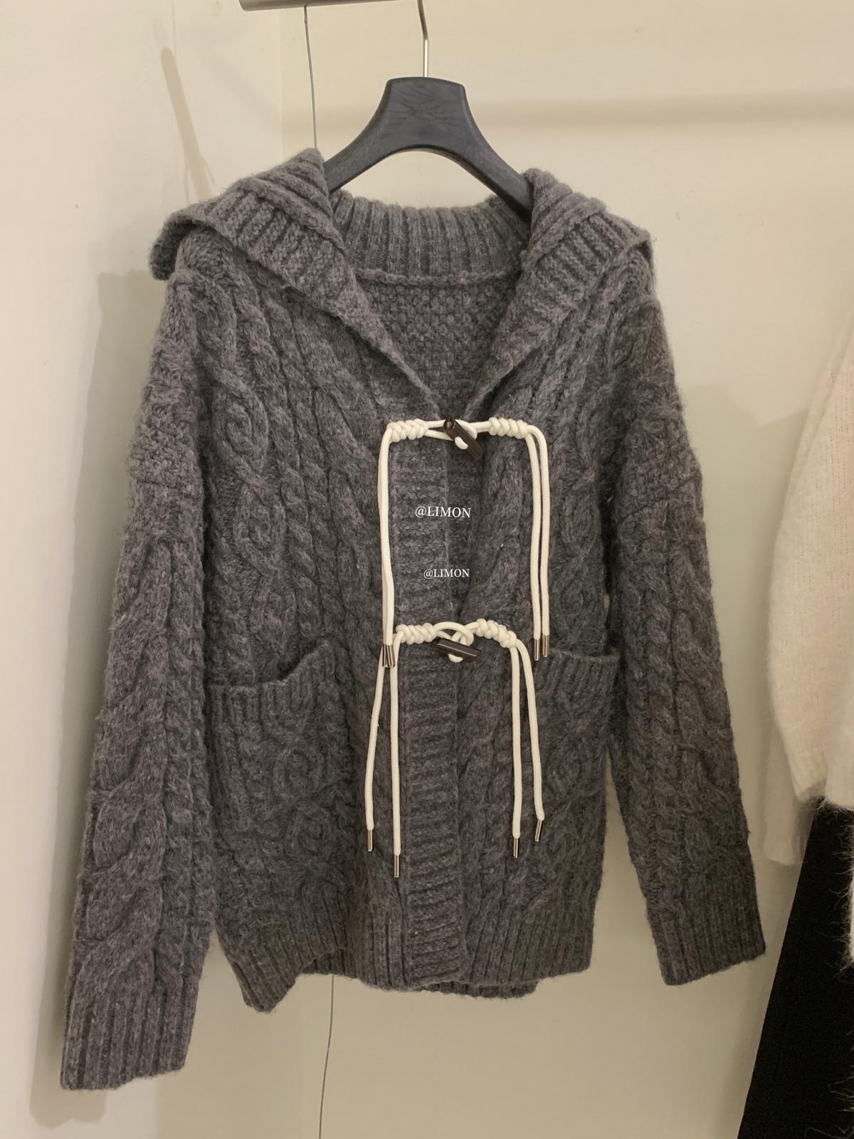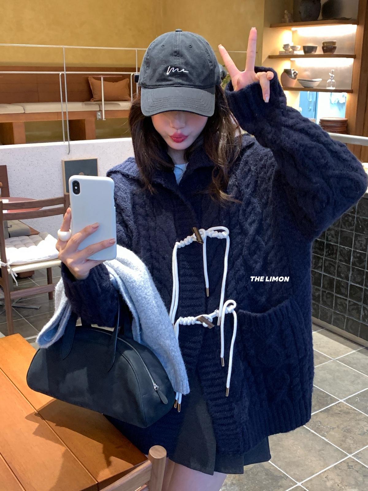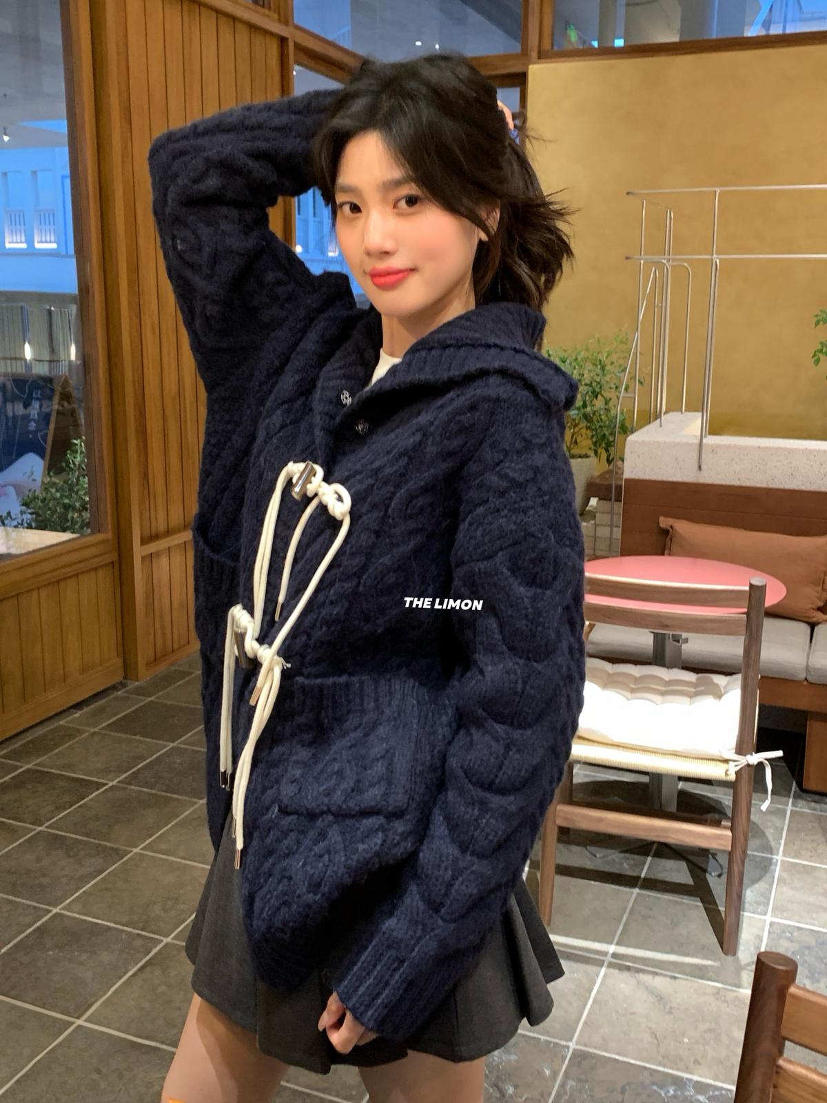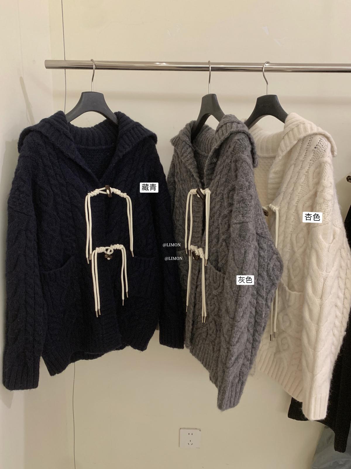 【C8054】超重工牛角扣海軍領減齡麻花開衫毛衣