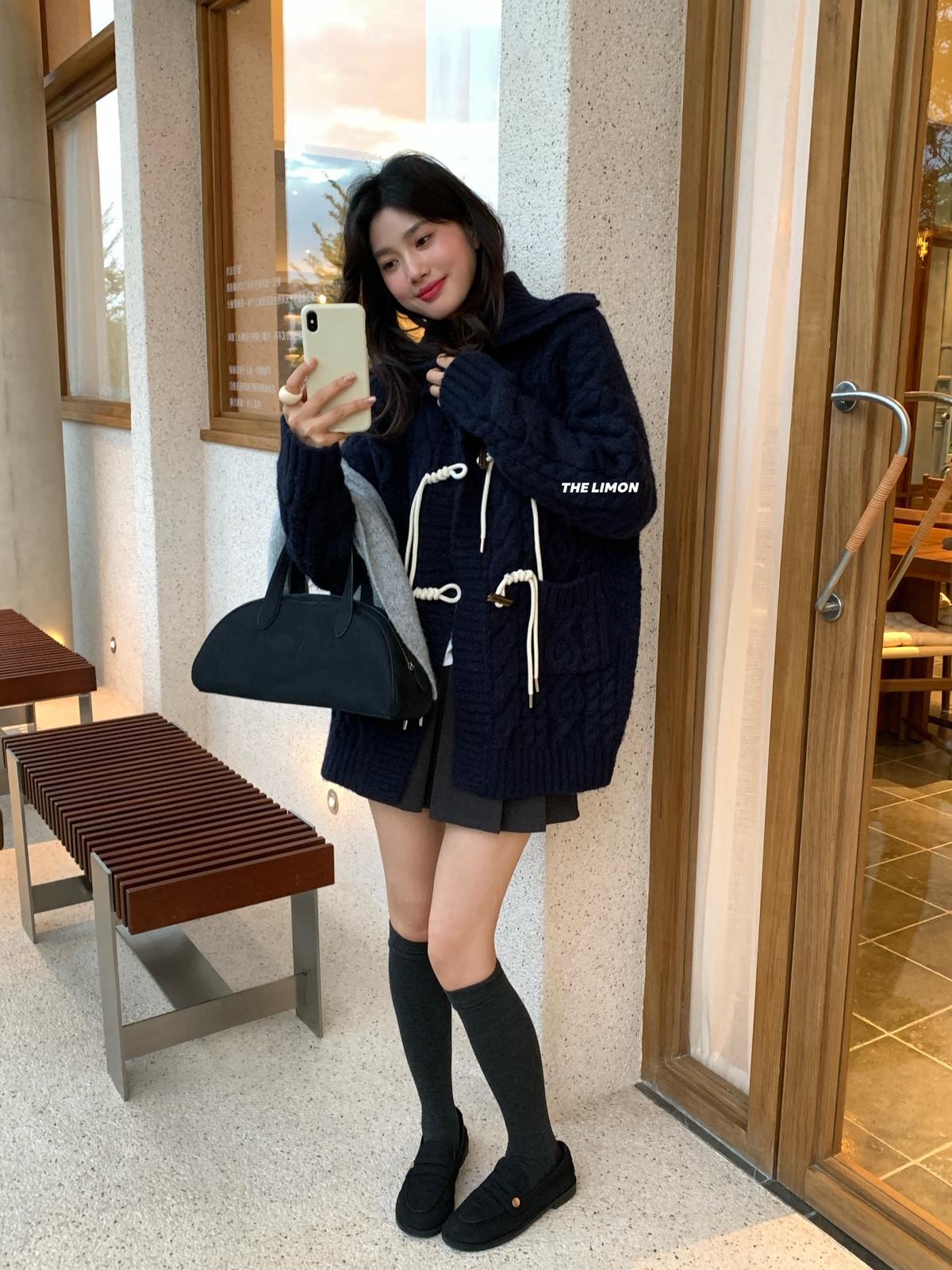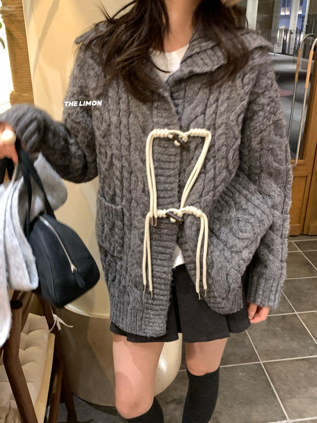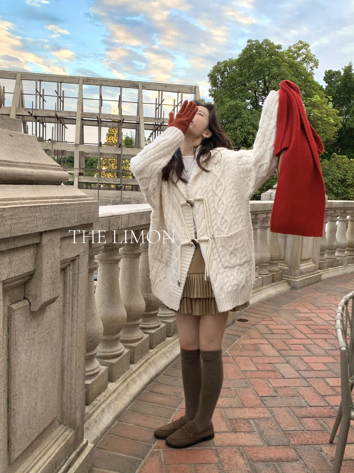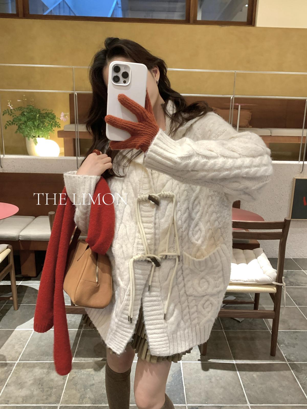 【C8054】超重工牛角扣海軍領減齡麻花開衫毛衣