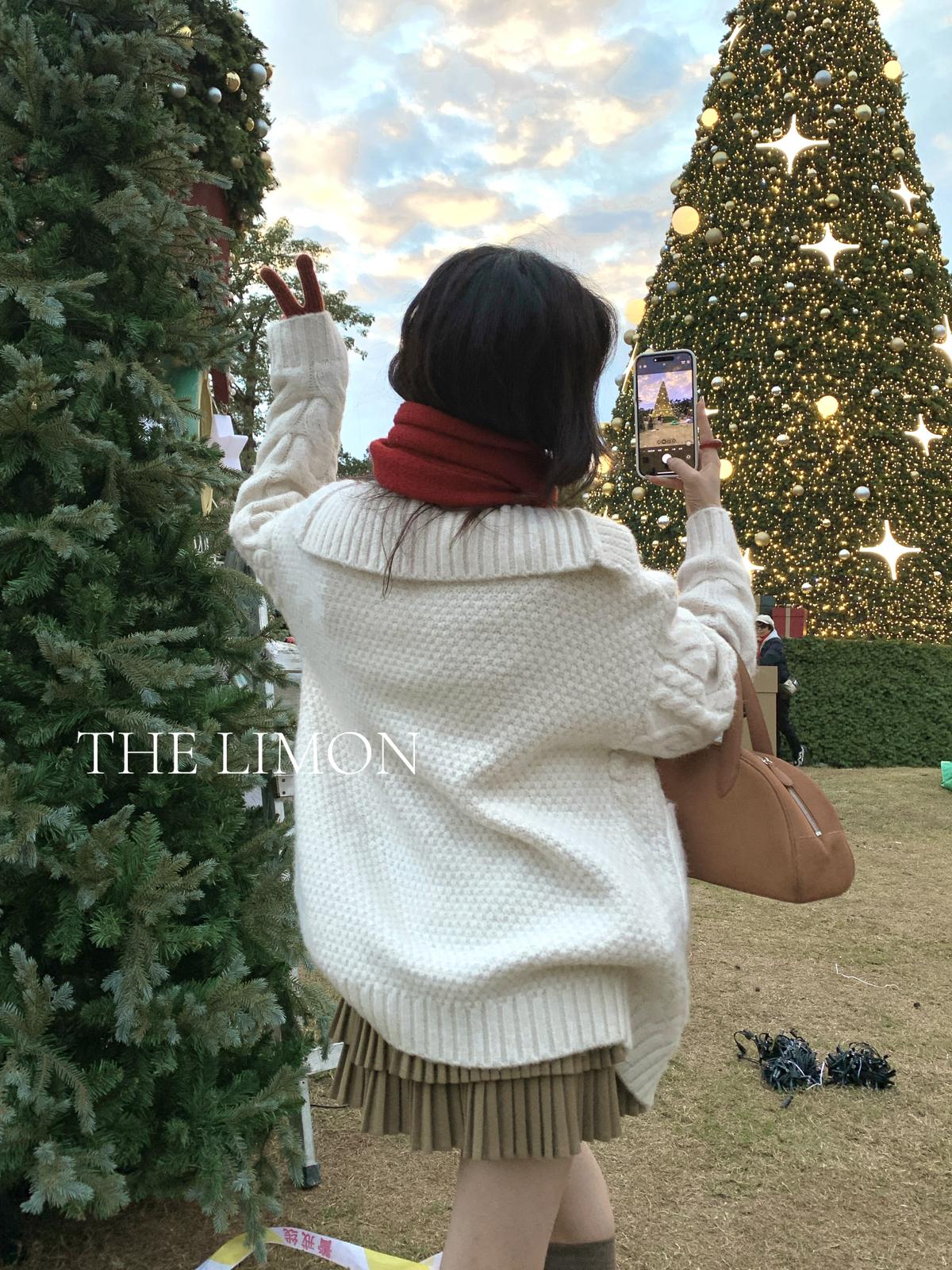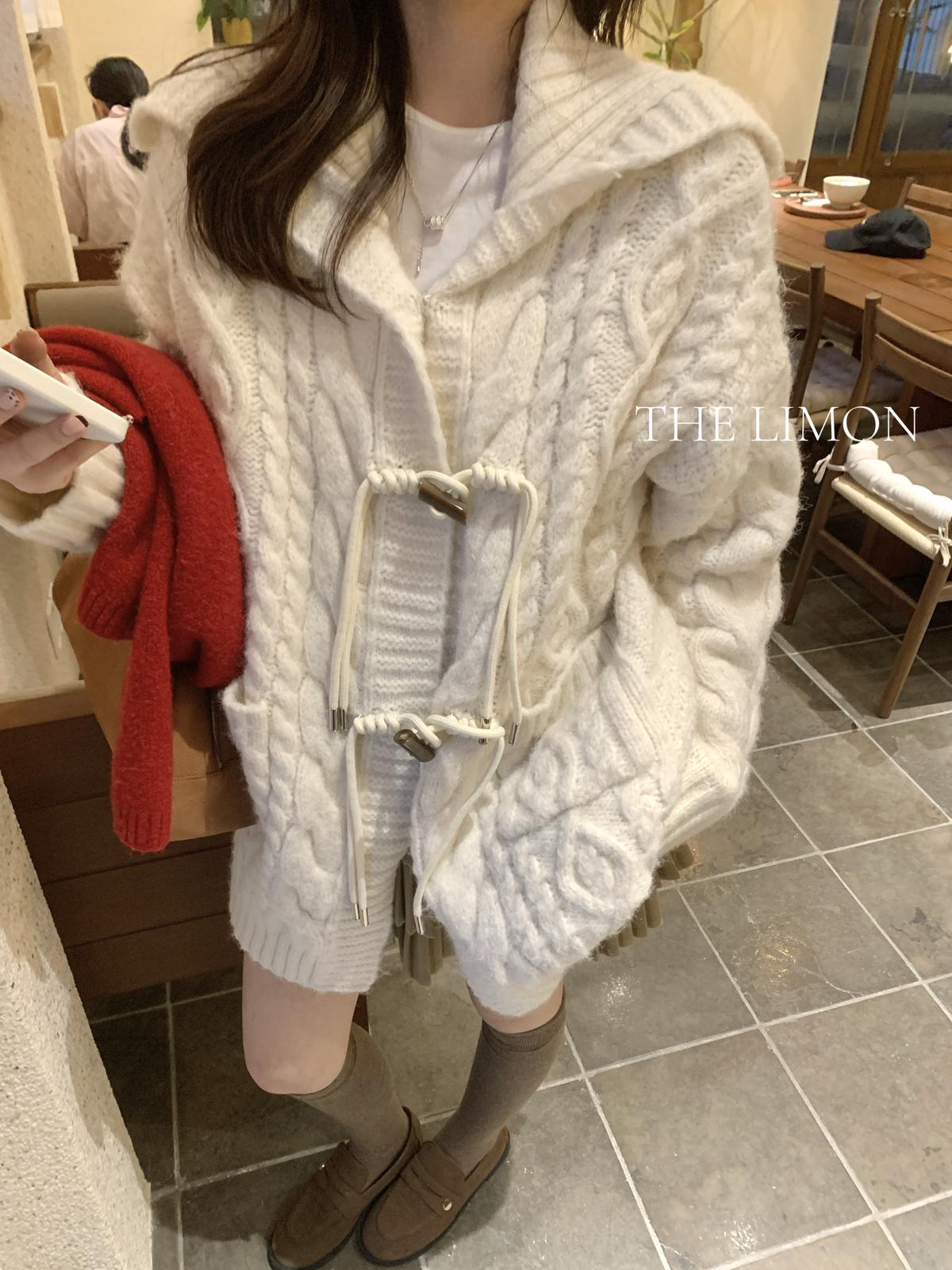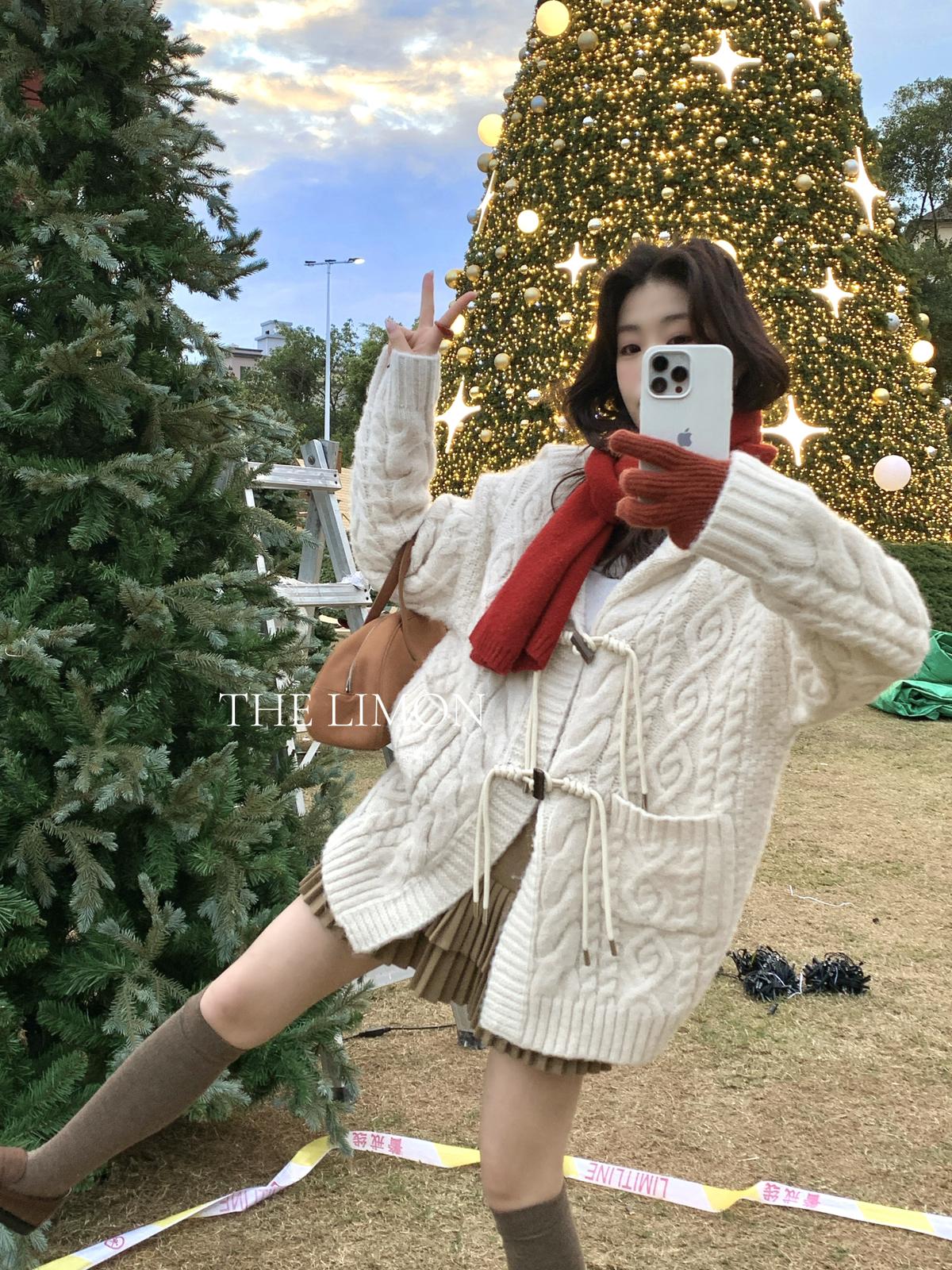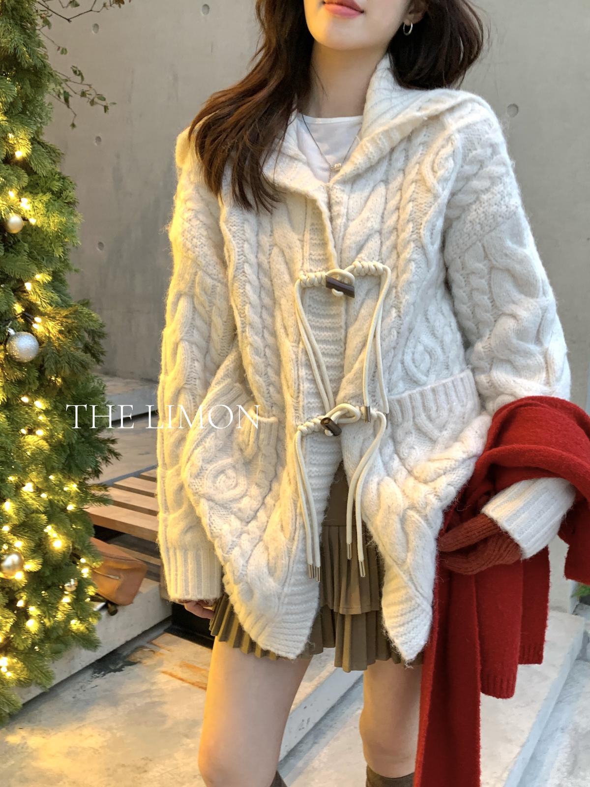【C8054】超重工牛角扣海軍領減齡麻花開衫毛衣
