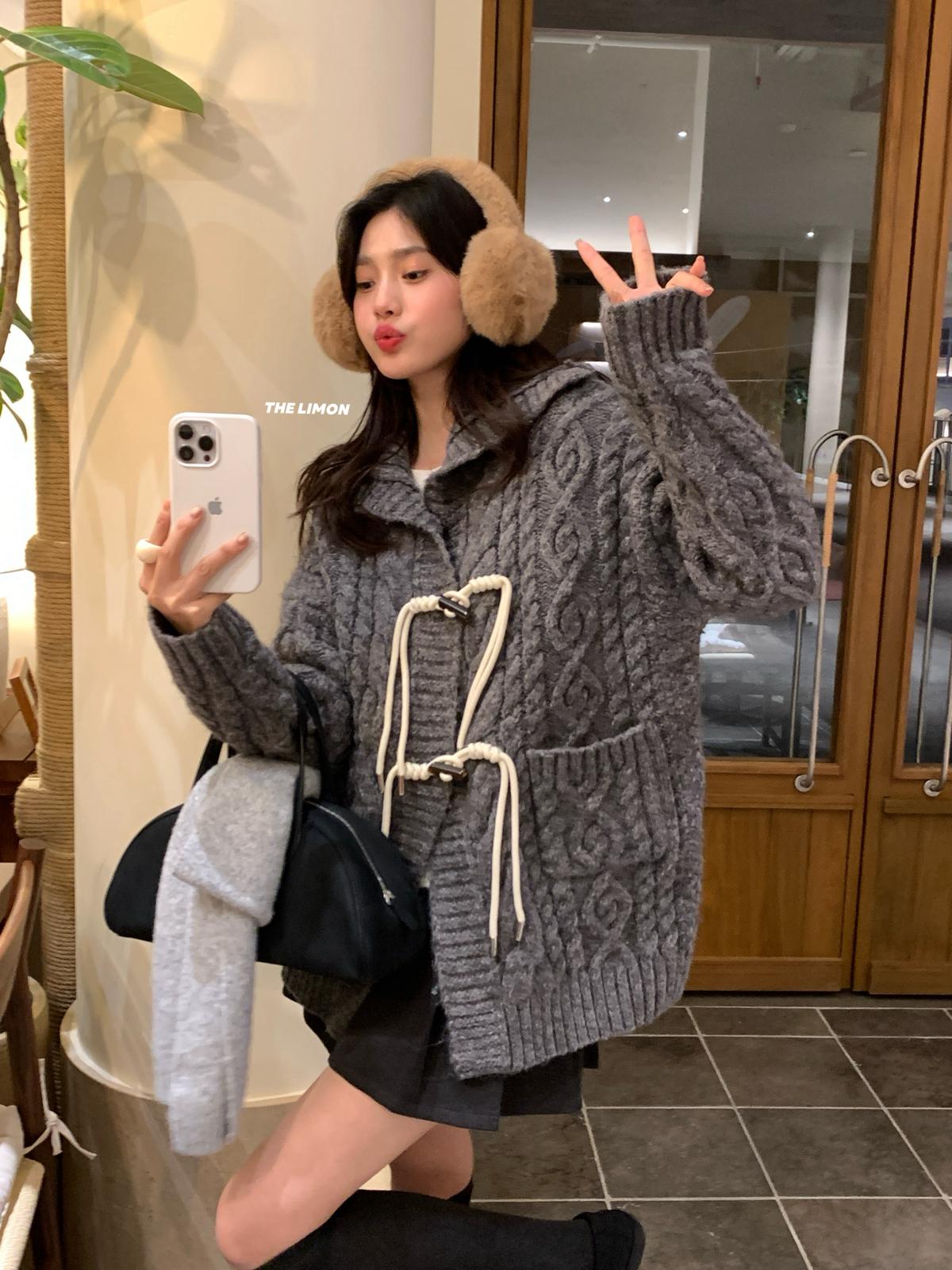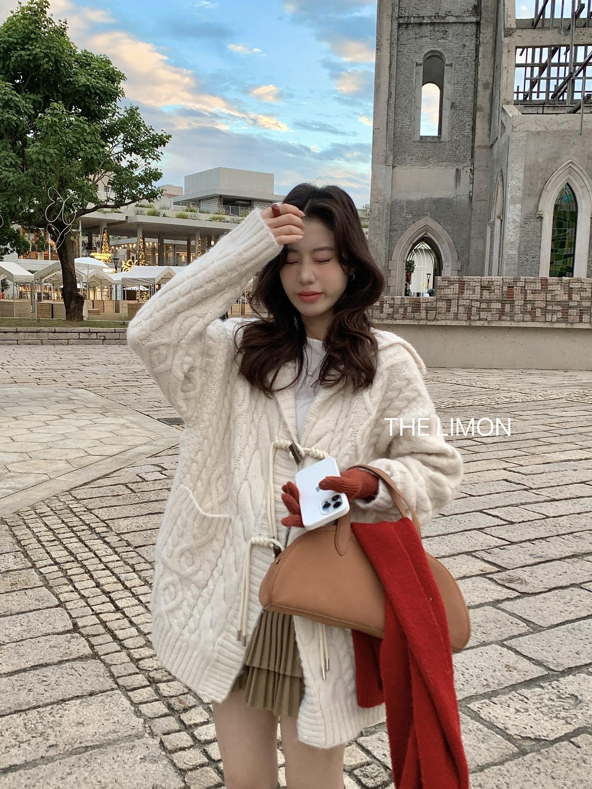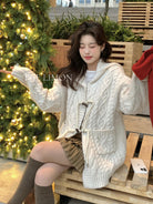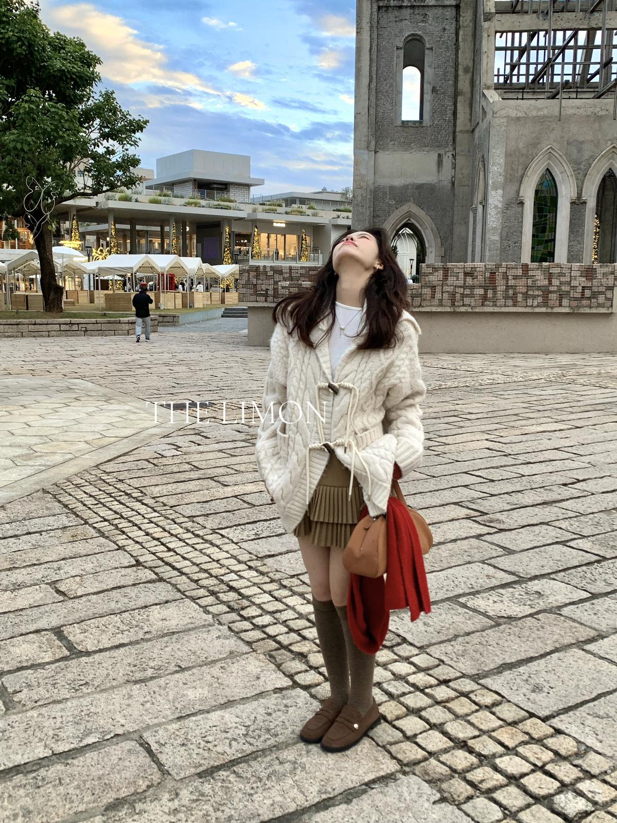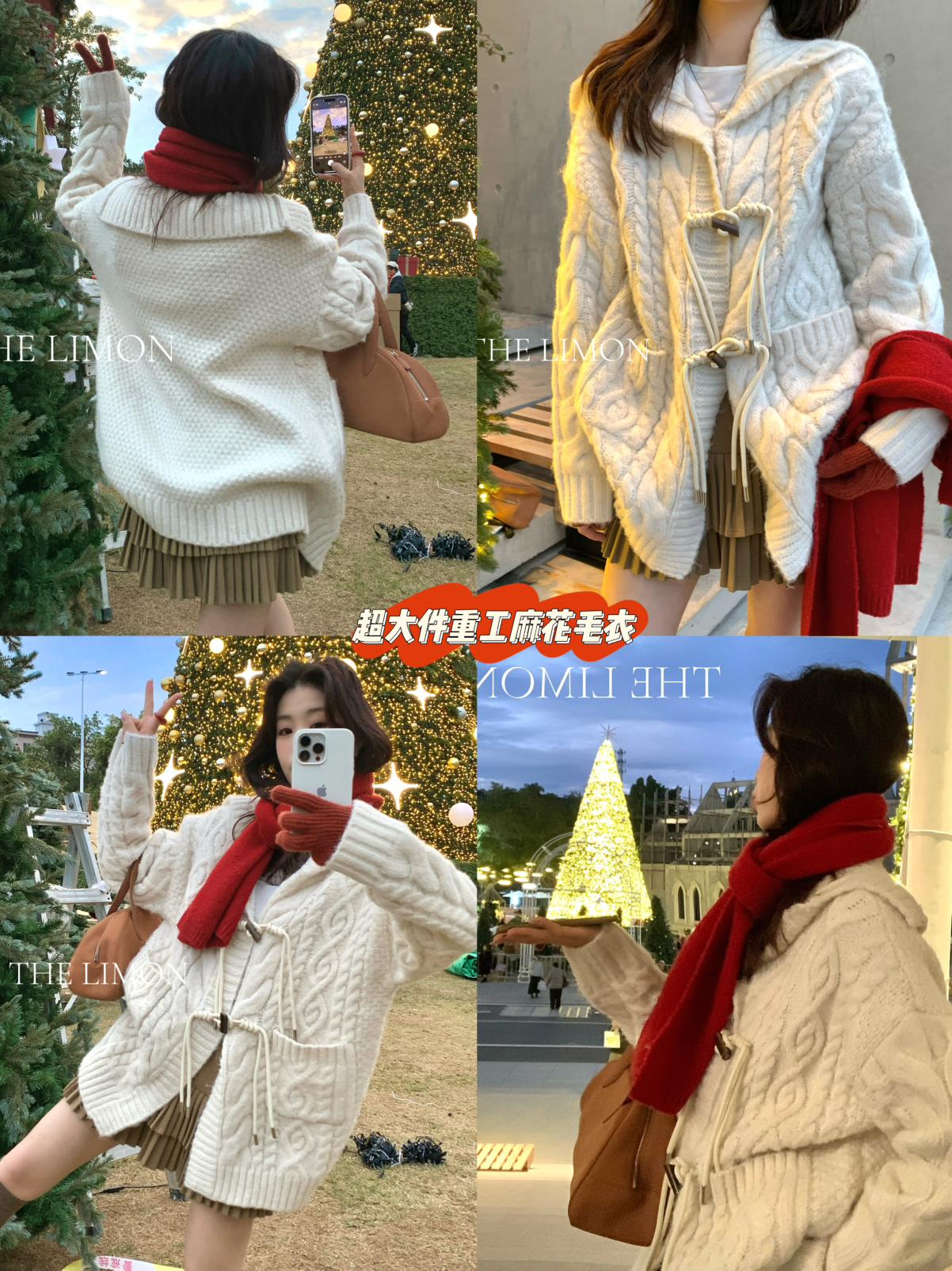 【C8054】超重工牛角扣海軍領減齡麻花開衫毛衣