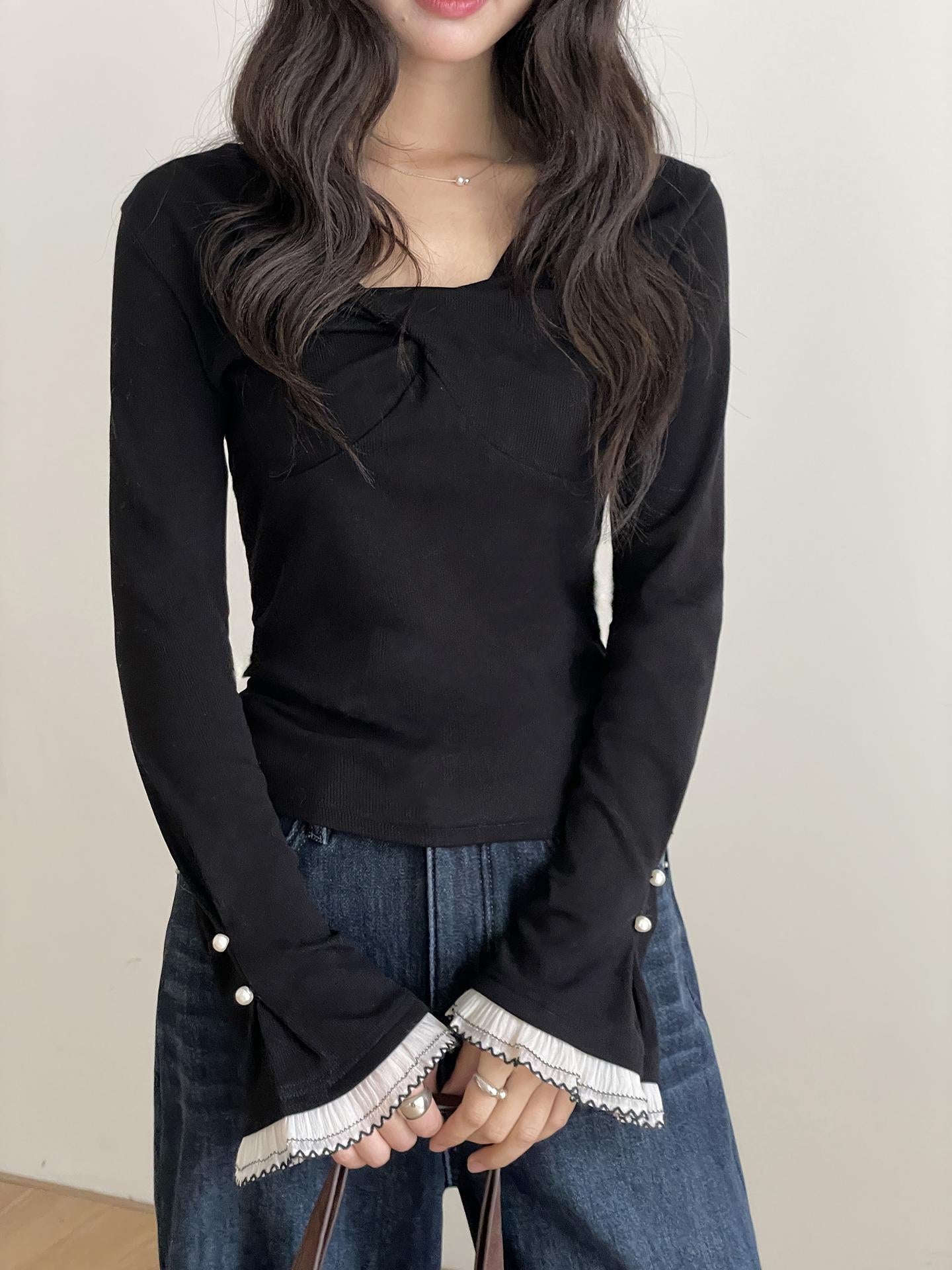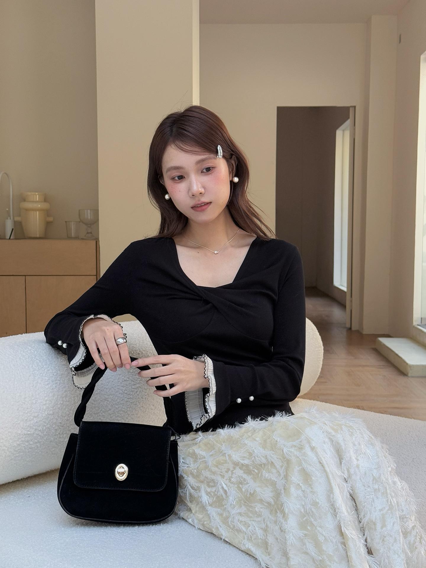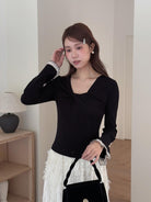 【C8056】冬上新!復古U領內搭上衣修身長袖T恤