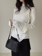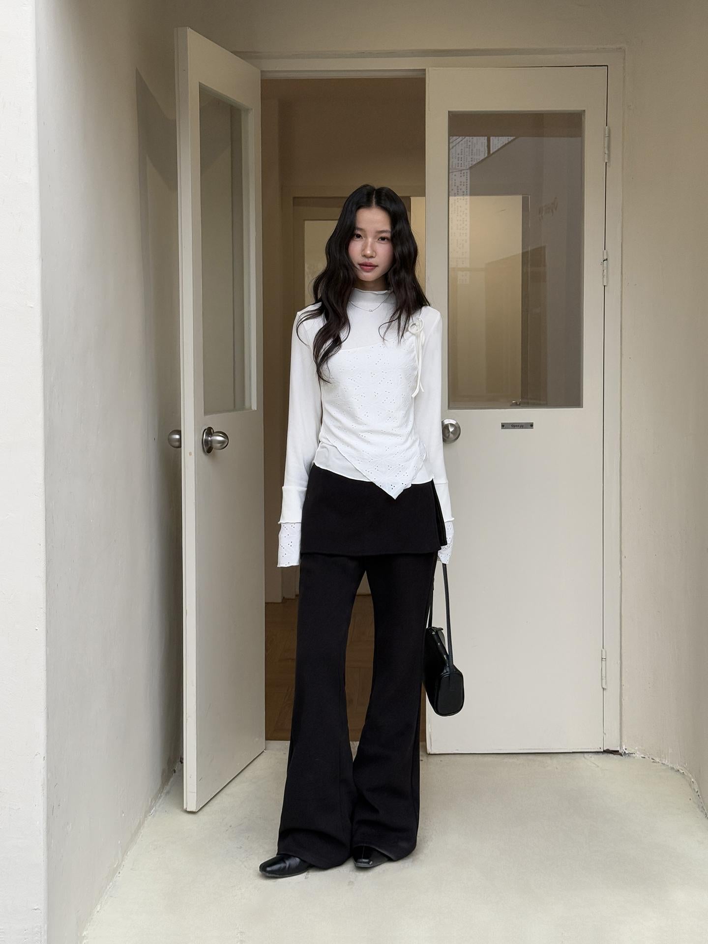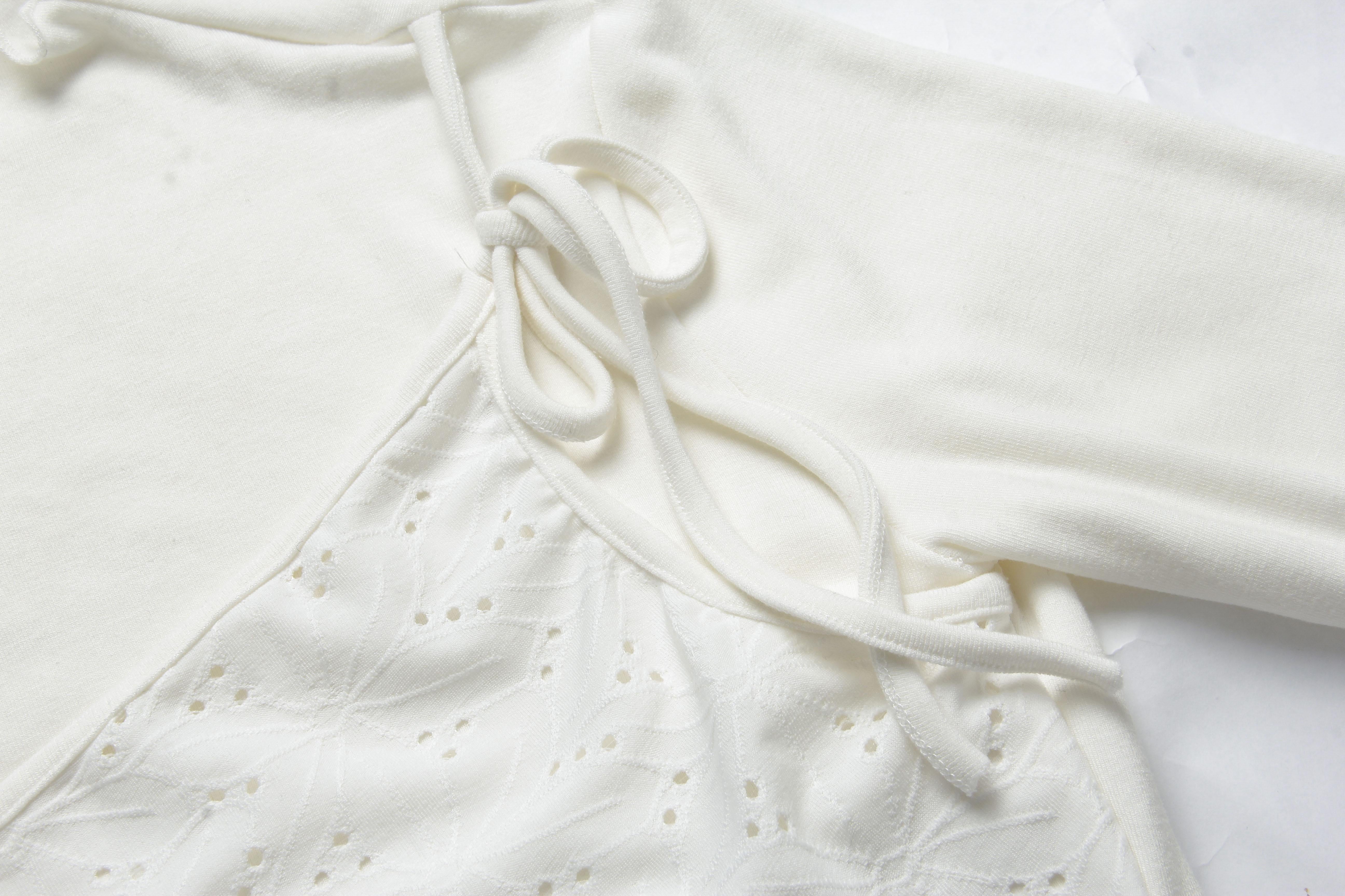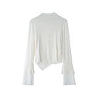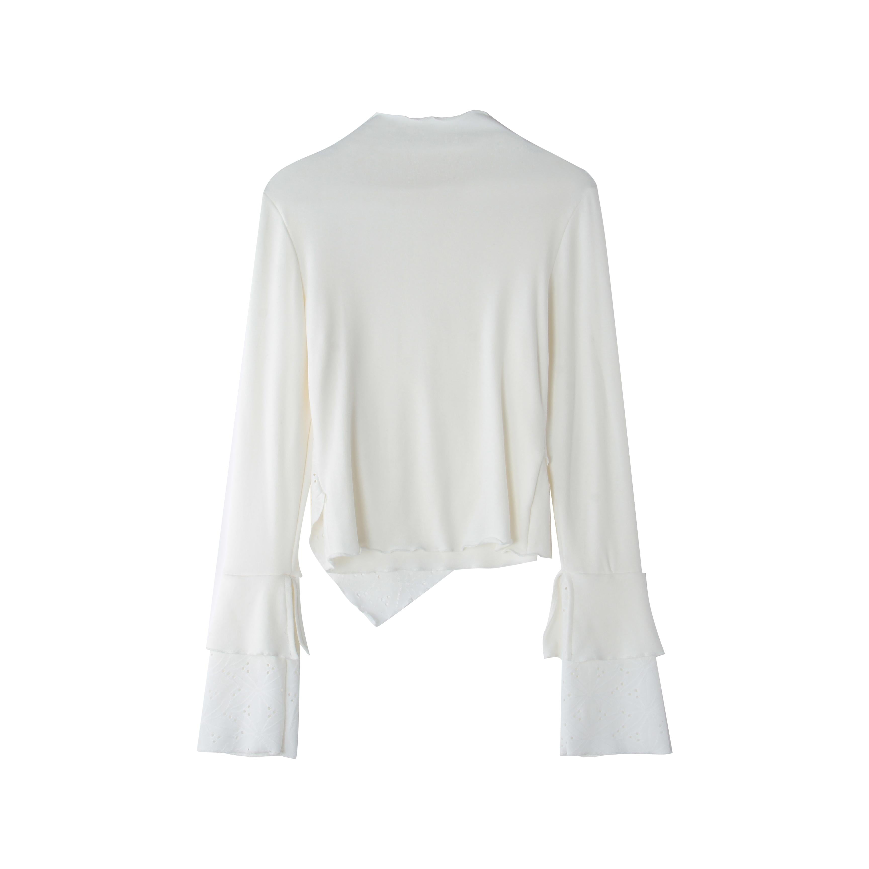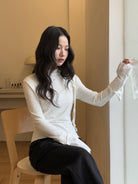 【C8057】冬上新!設計感不規則上衣拼接假兩件綁帶長袖T恤