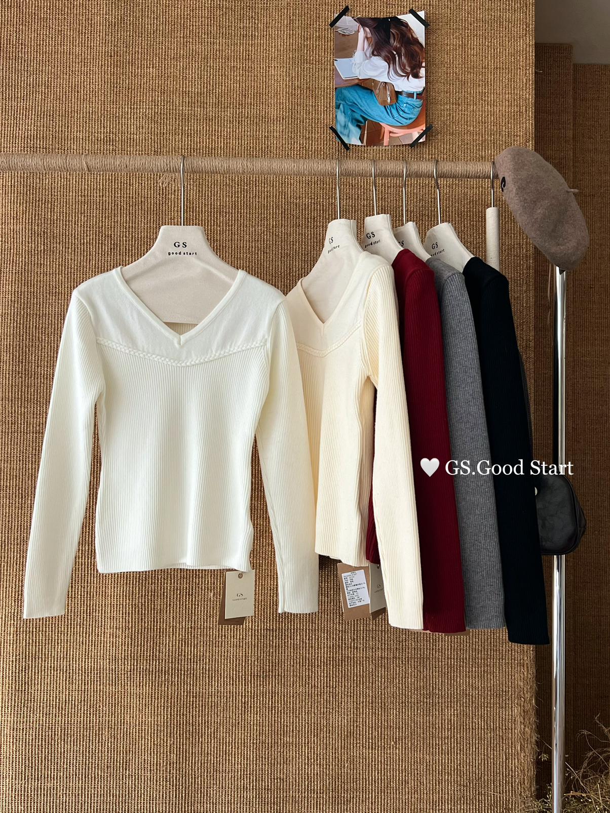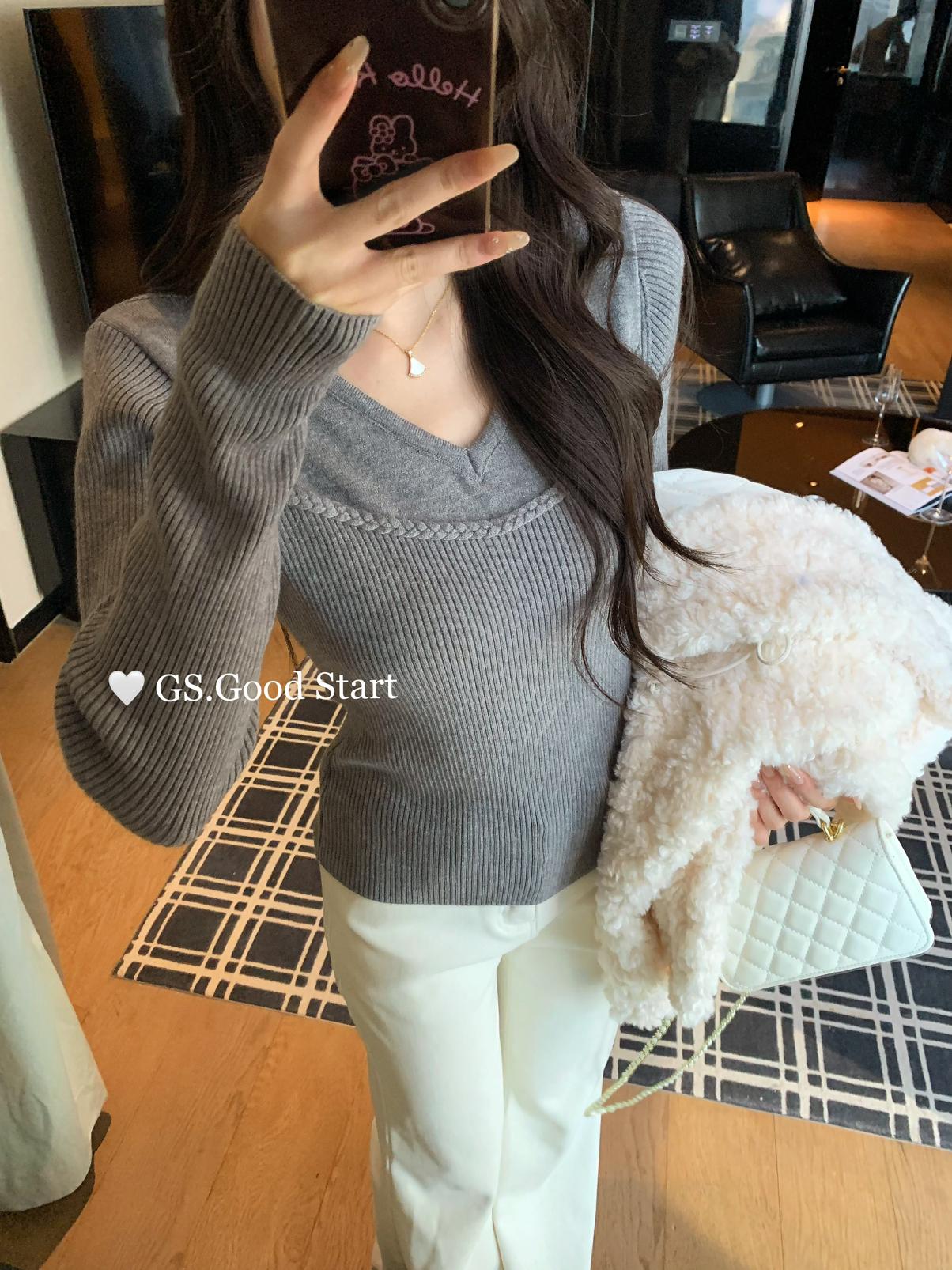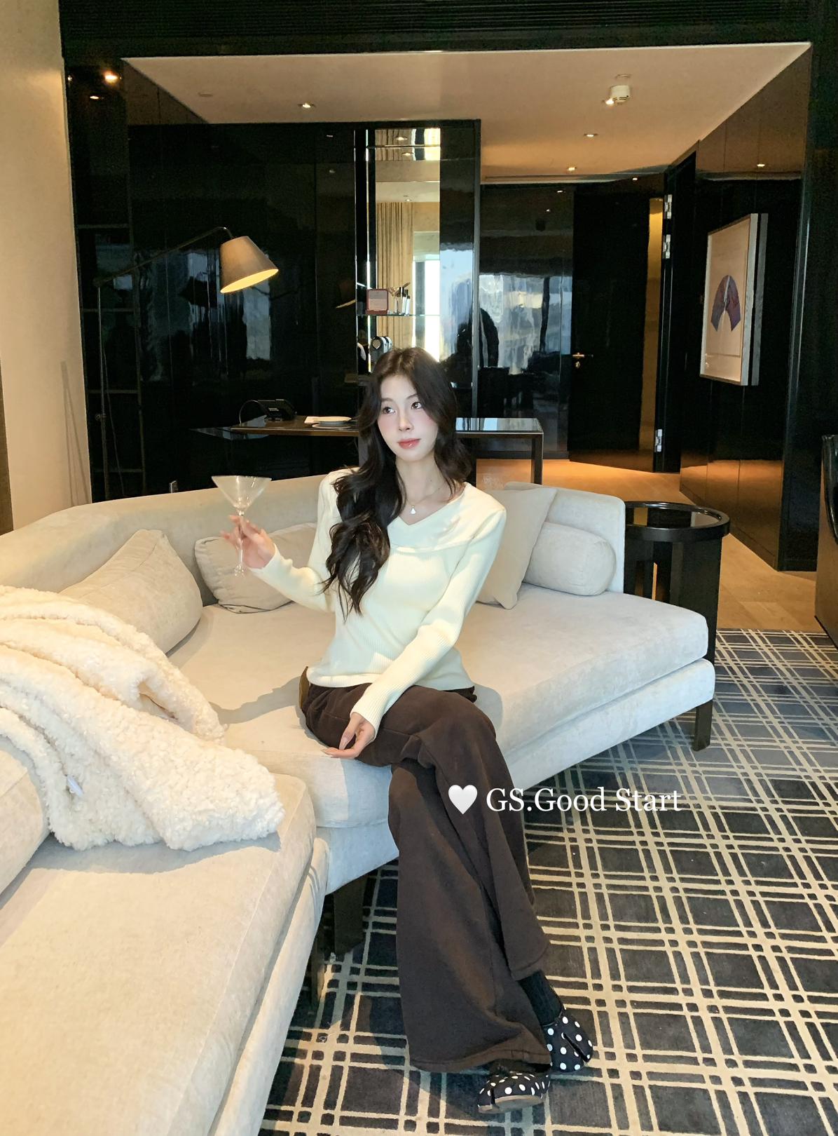 【C8069】必buy基礎款!不挑人巨百搭!秋冬氣質v領休閒彈力針織小衫