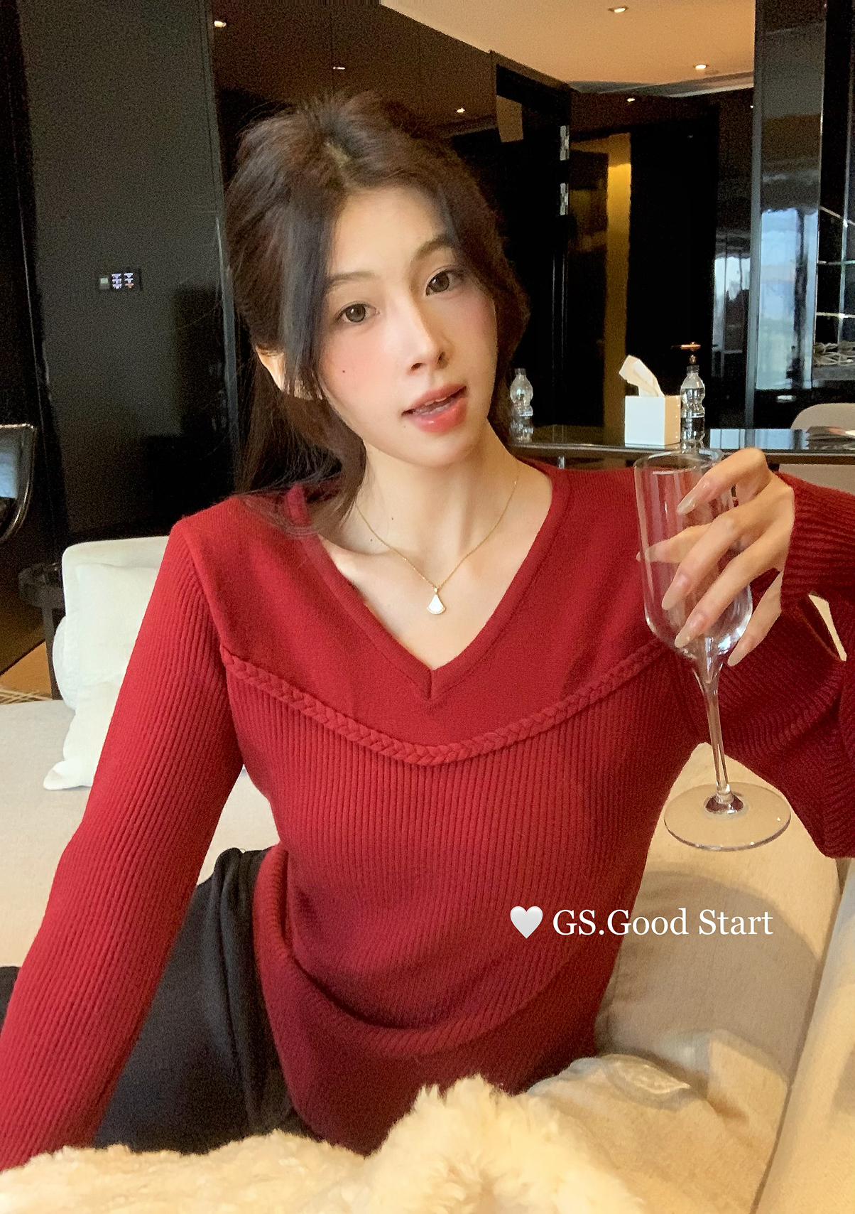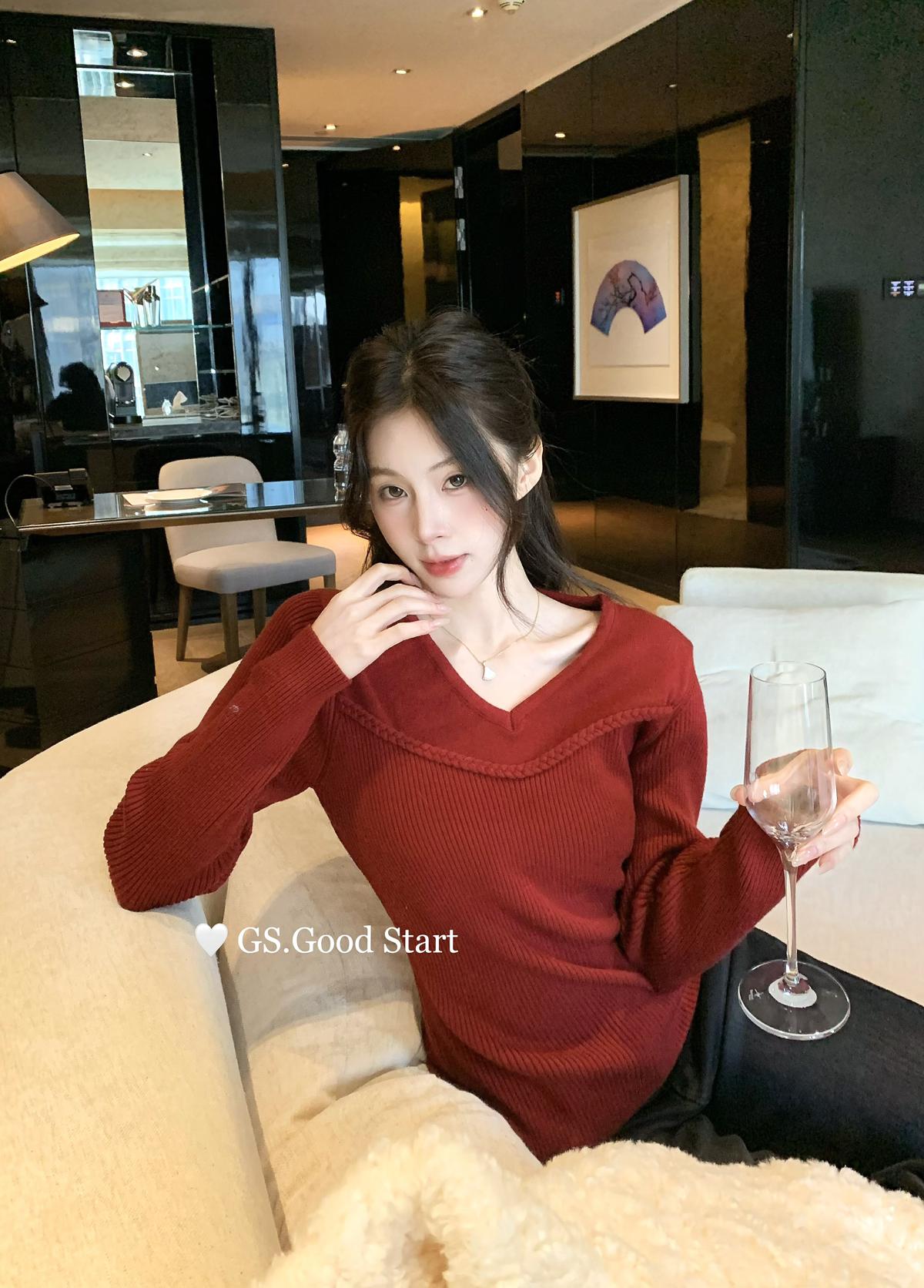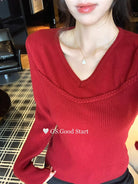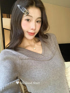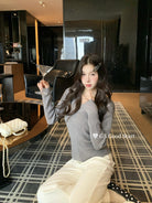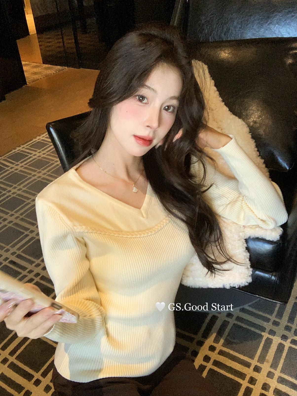 【C8069】必buy基礎款!不挑人巨百搭!秋冬氣質v領休閒彈力針織小衫