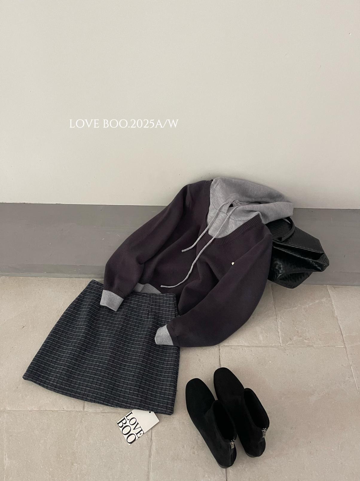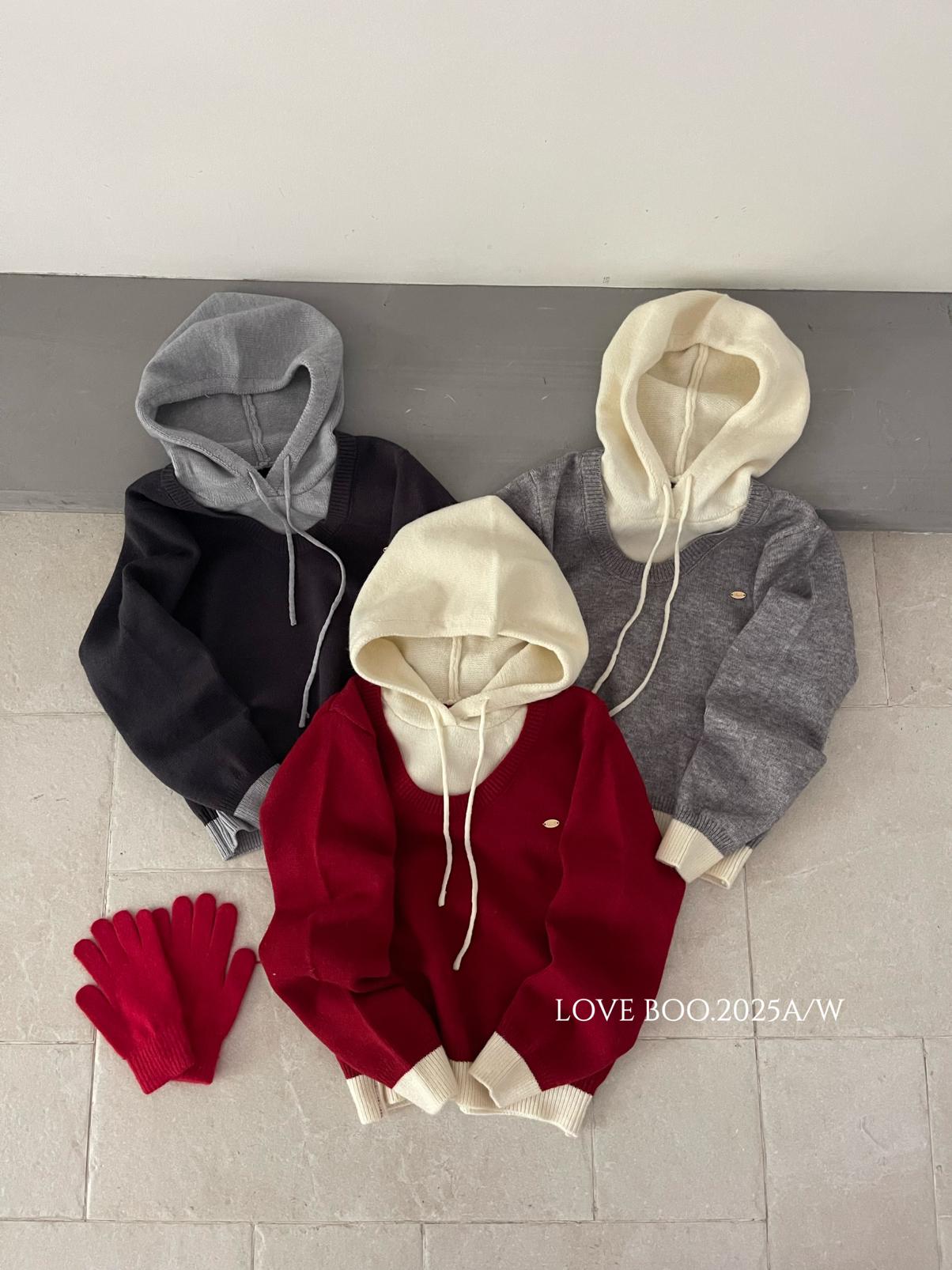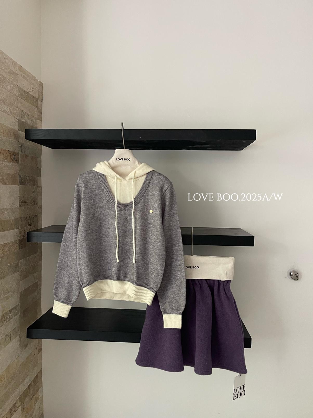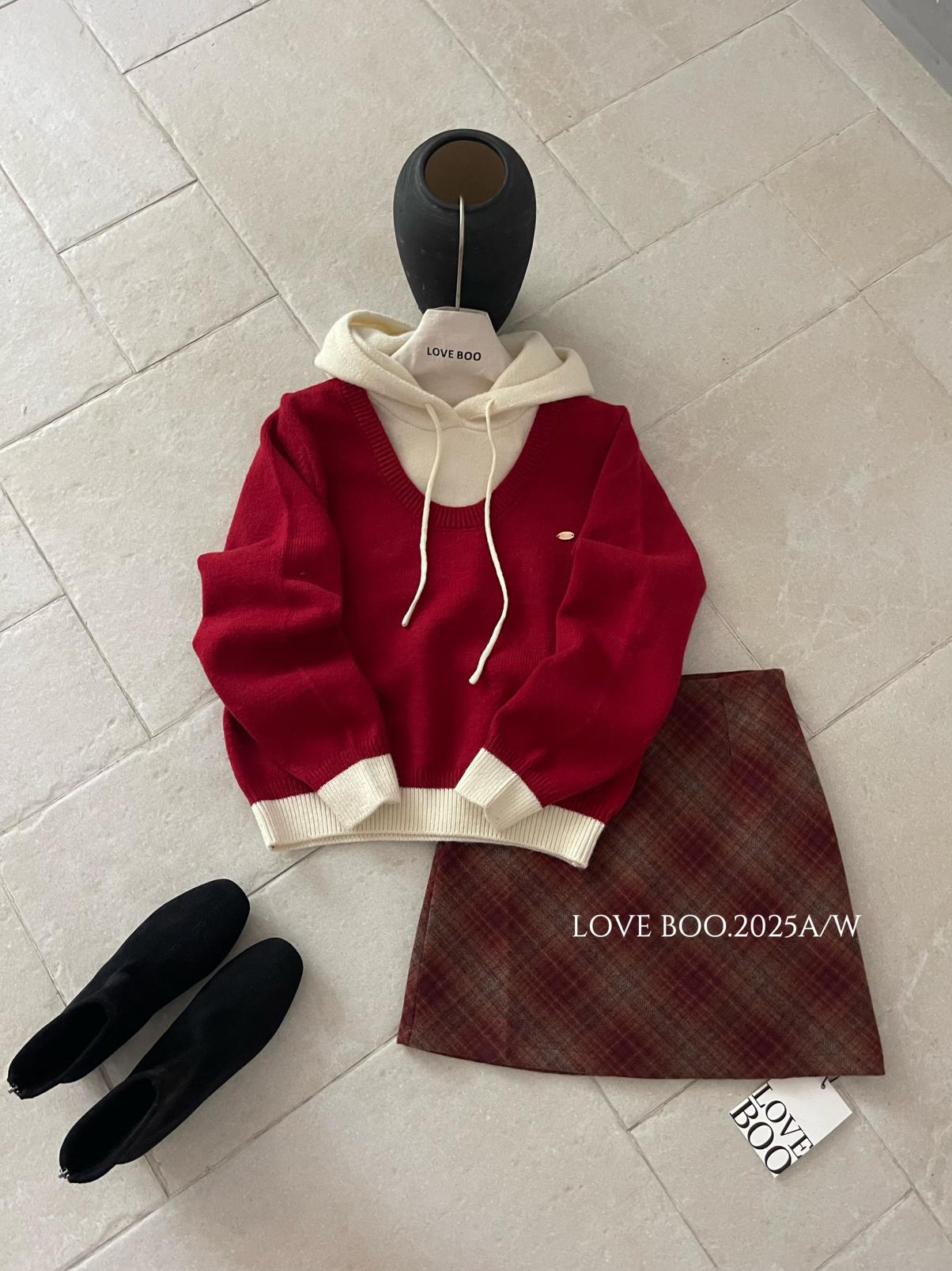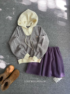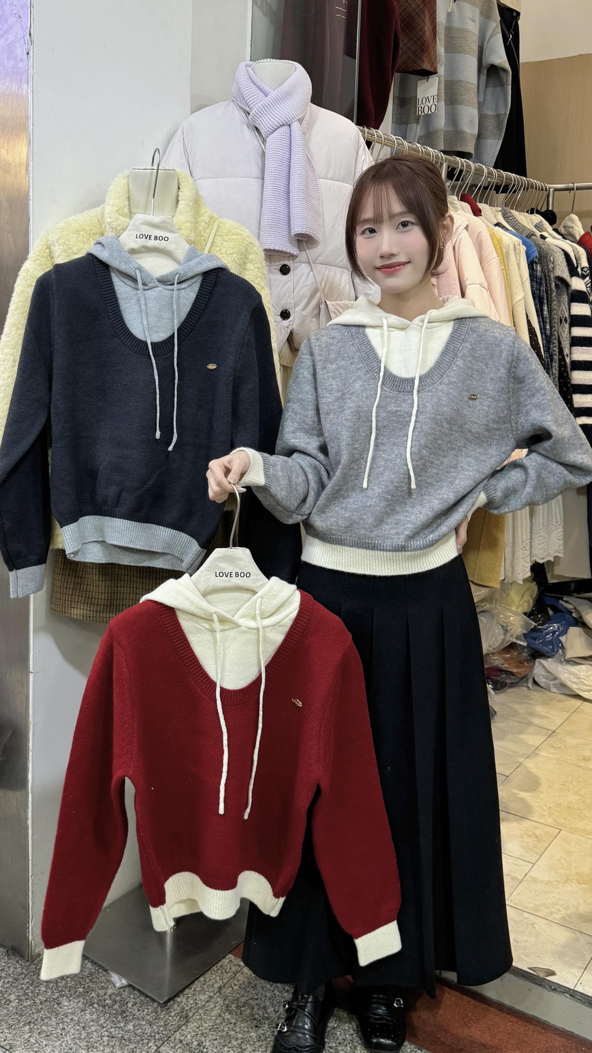 【C8083】韓系假兩件百搭撞色顯瘦帶帽針織衫
