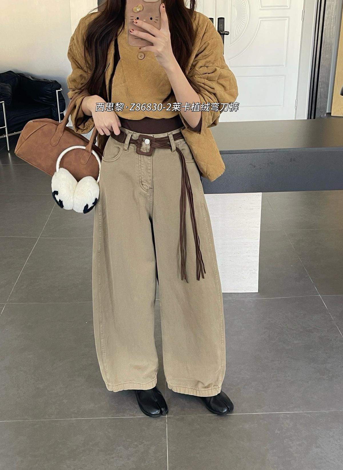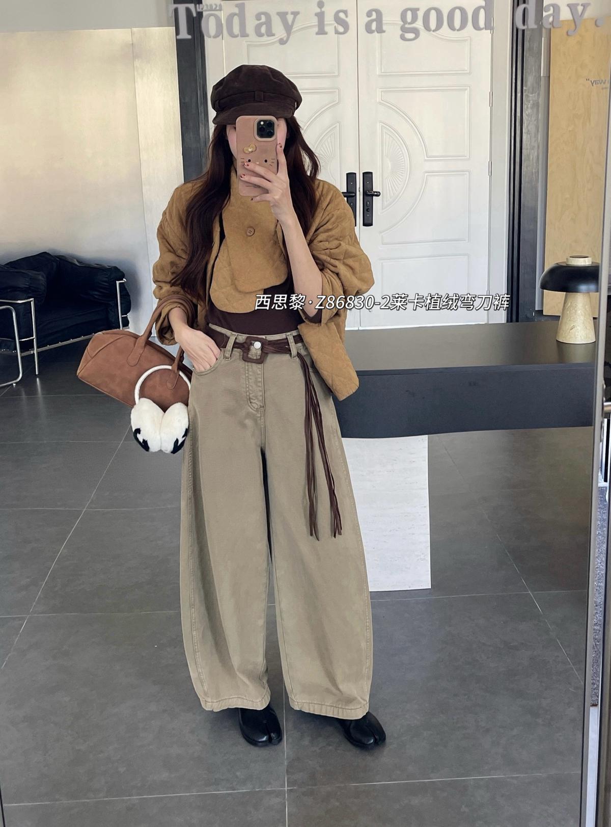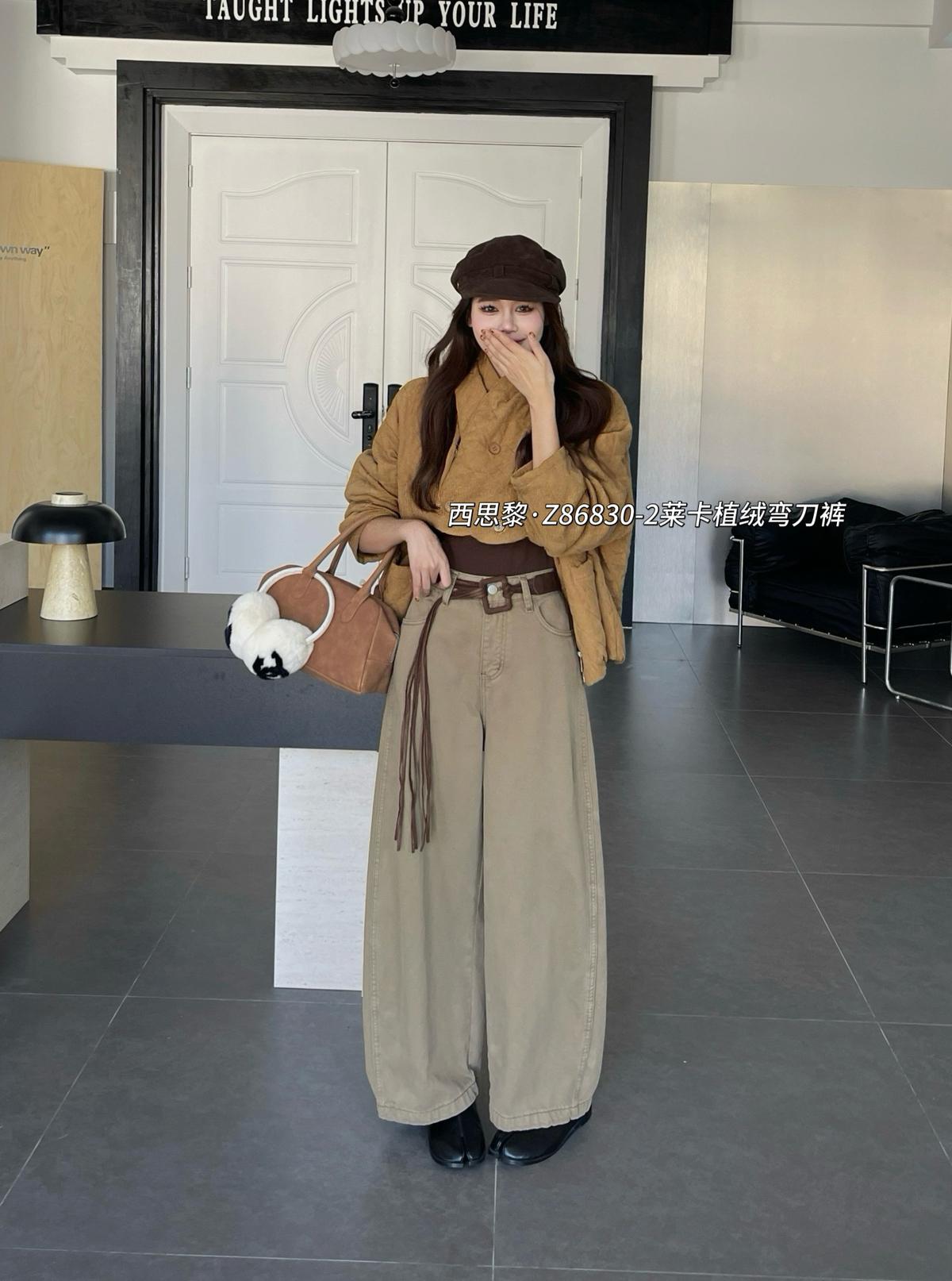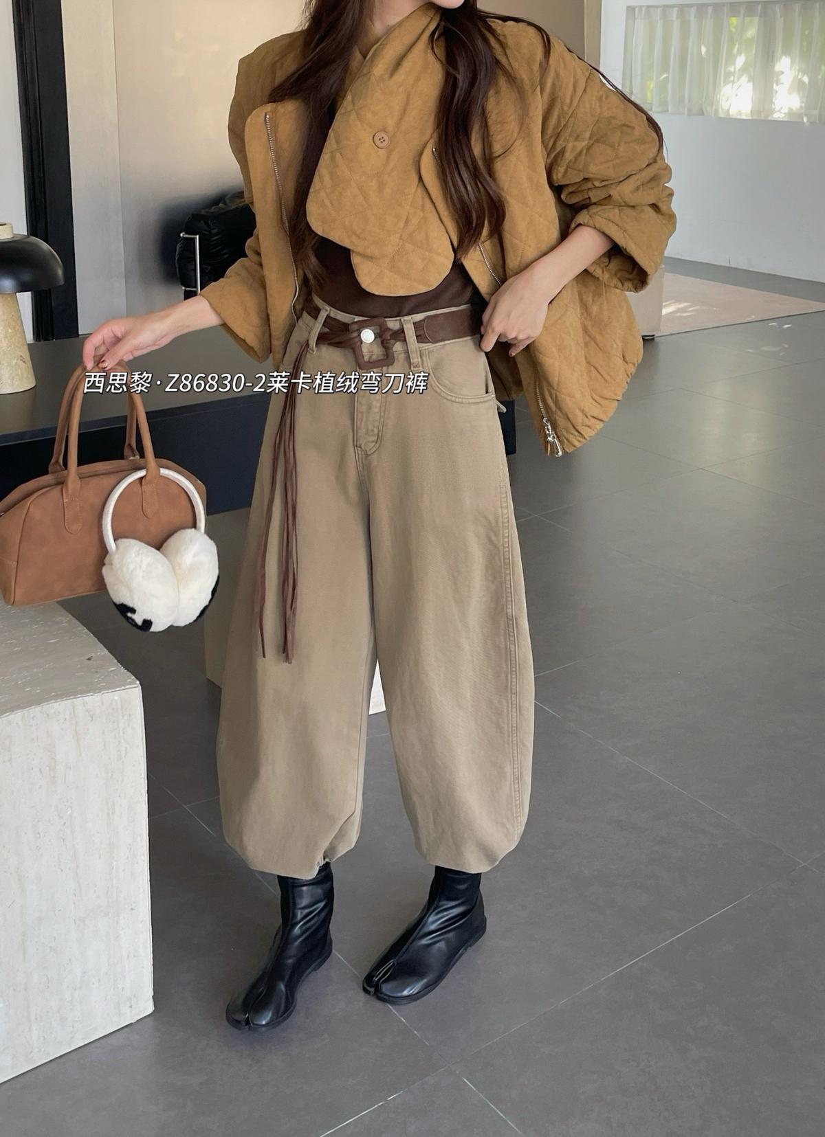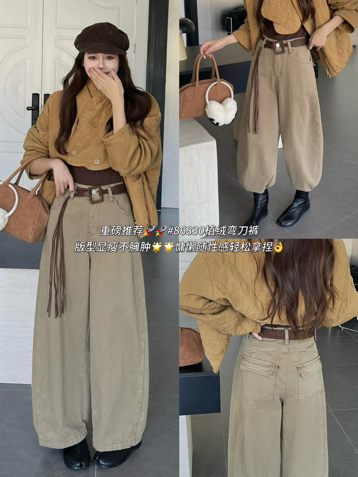 【C8085】重磅推薦植絨彎刀褲版型顯瘦不臃腫慵懶隨性感輕鬆拿捏牛仔褲(配腰帶)