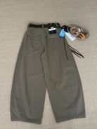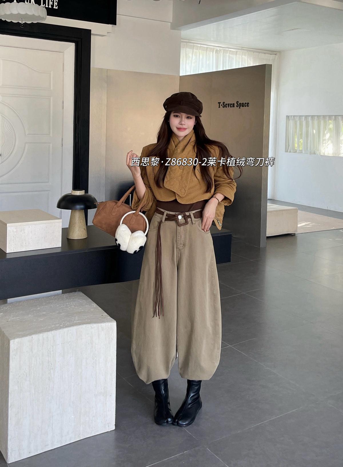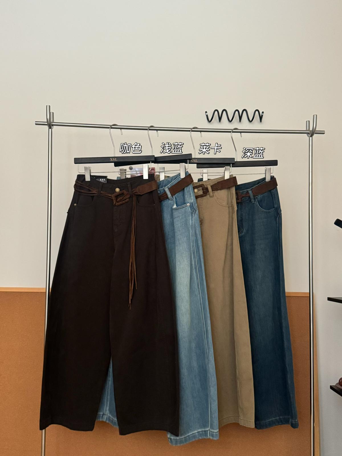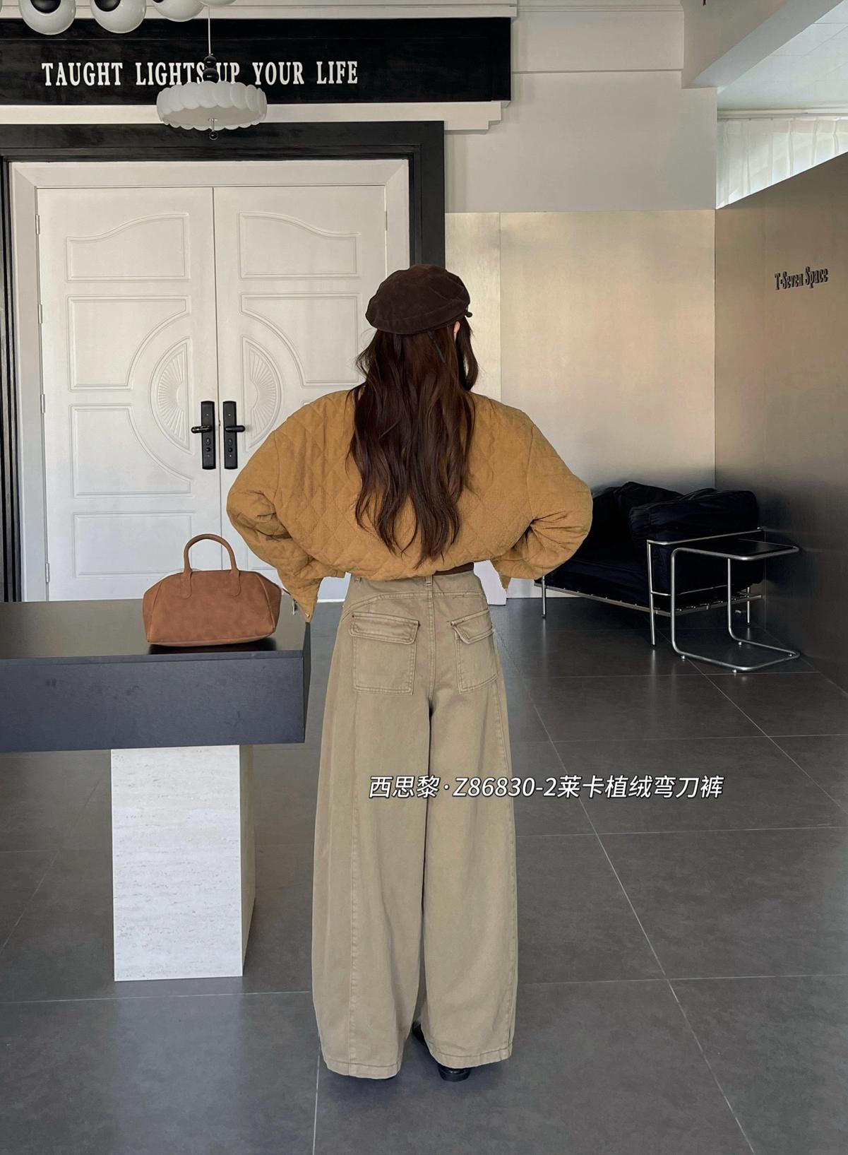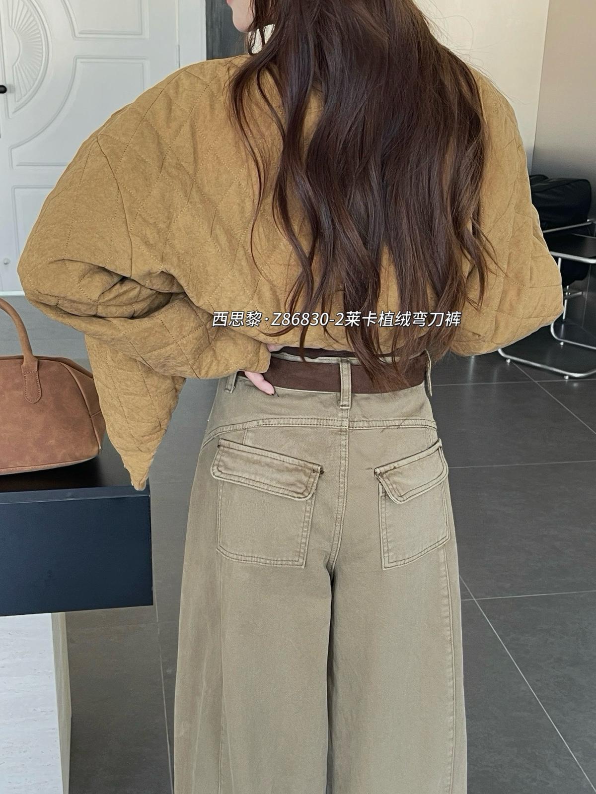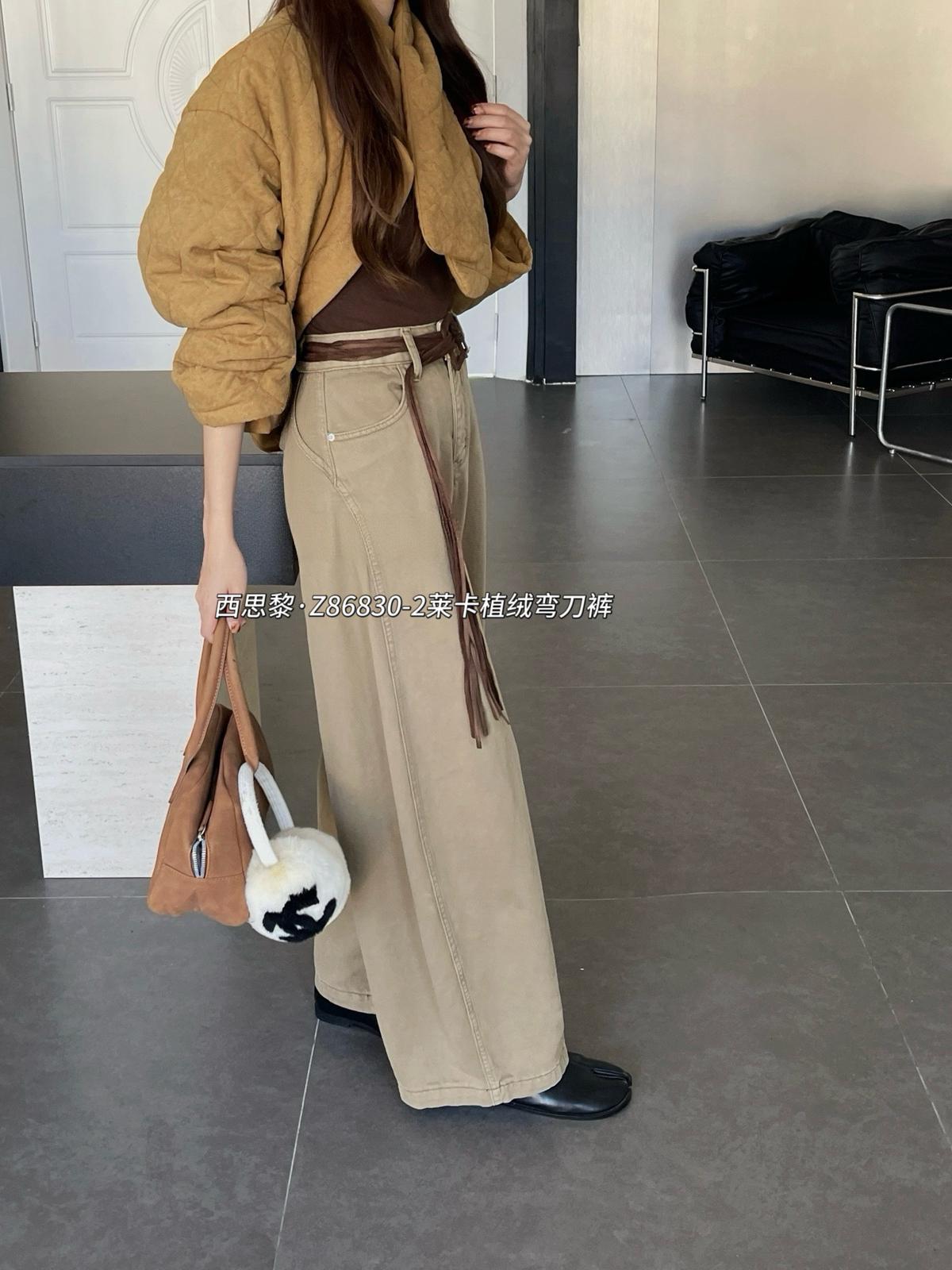 【C8085】重磅推薦植絨彎刀褲版型顯瘦不臃腫慵懶隨性感輕鬆拿捏牛仔褲(配腰帶)