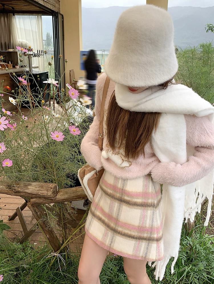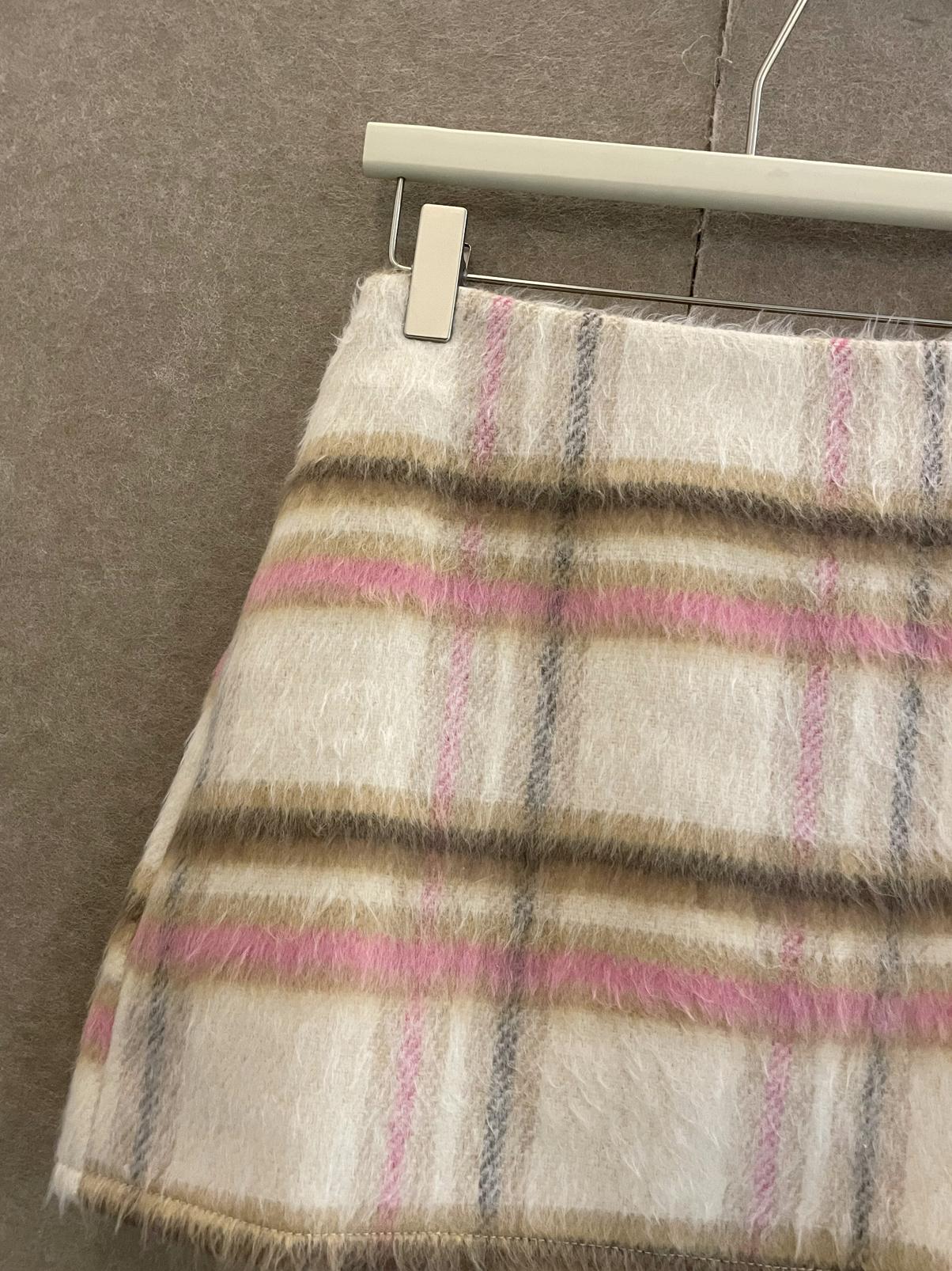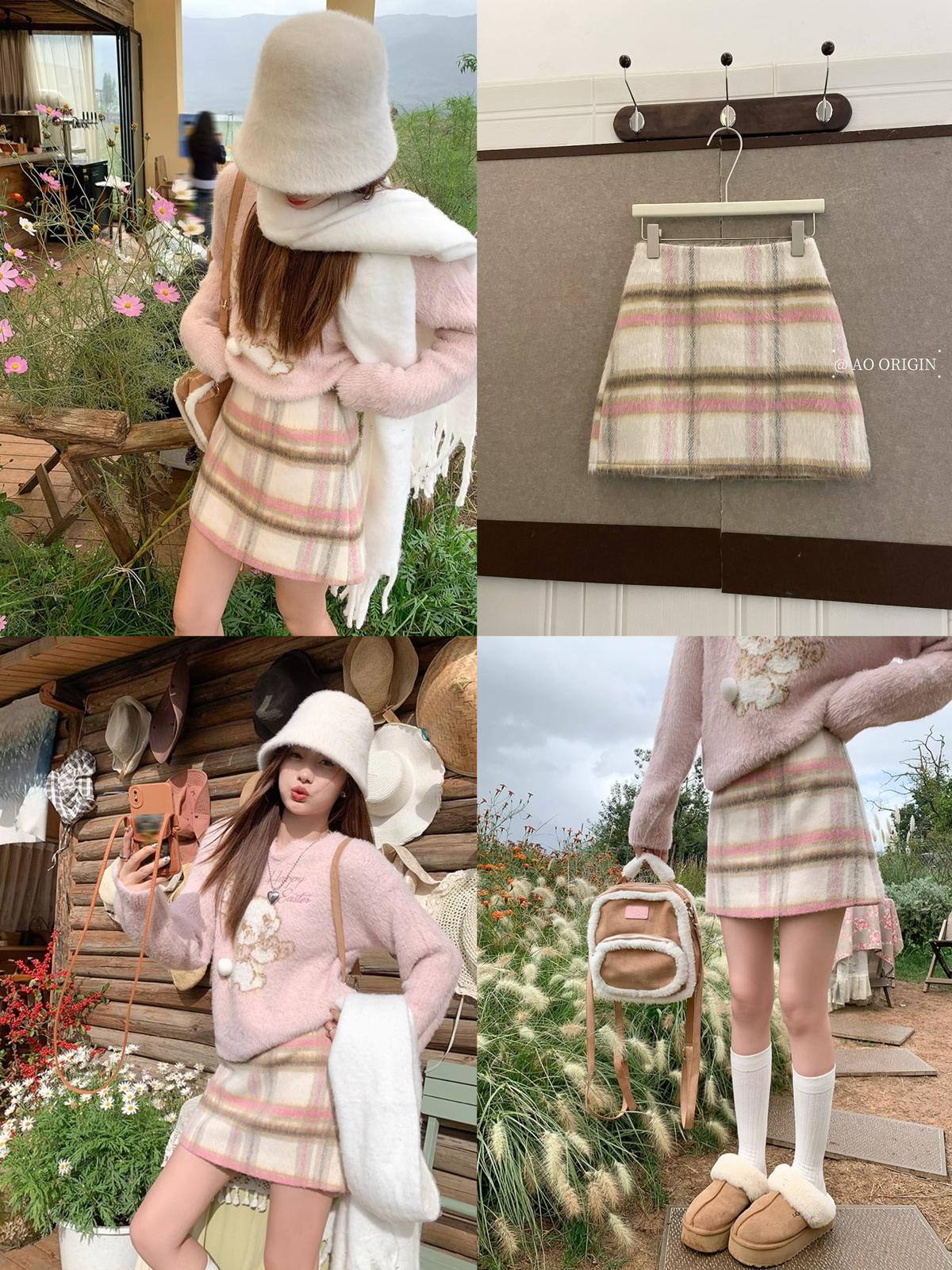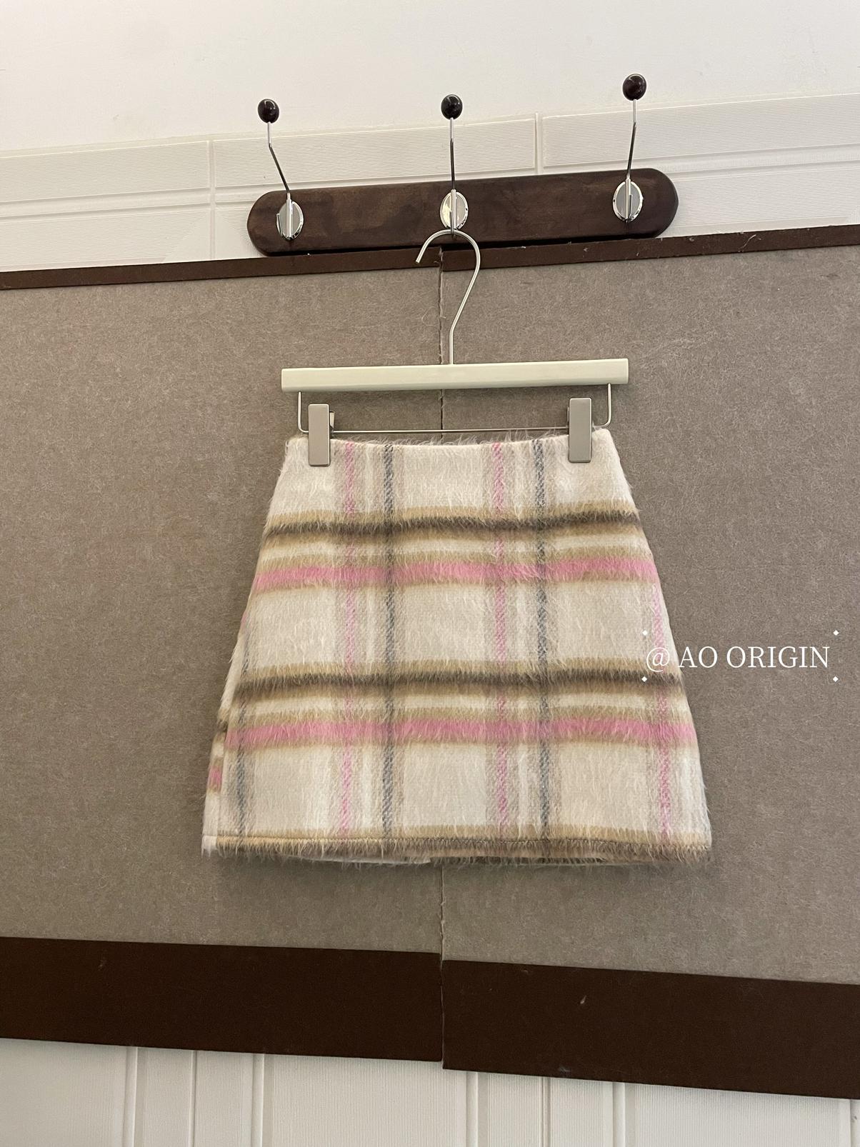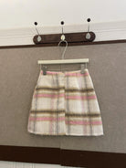 【C8093】韓系甜美風溫柔粉色百搭顯瘦格子半身裙半身裙