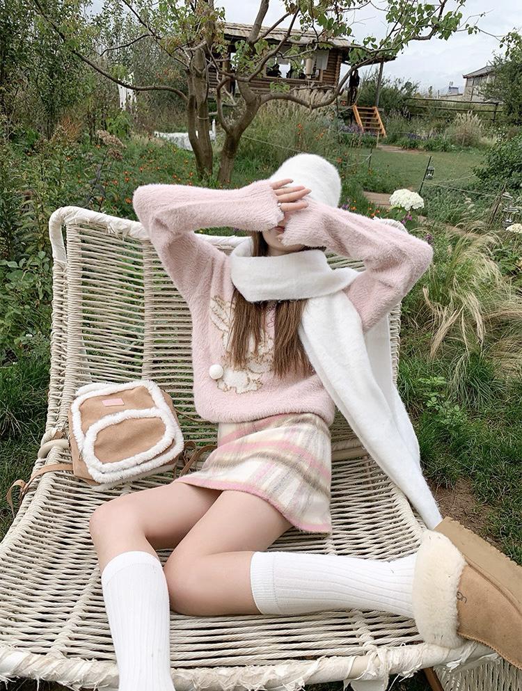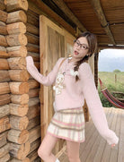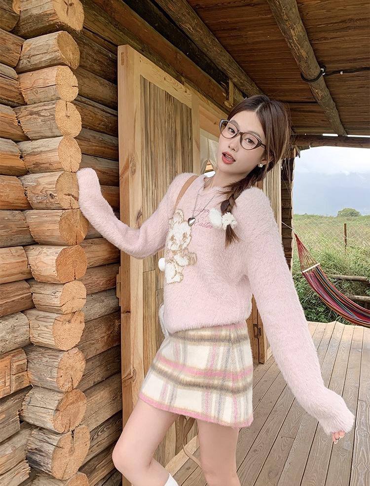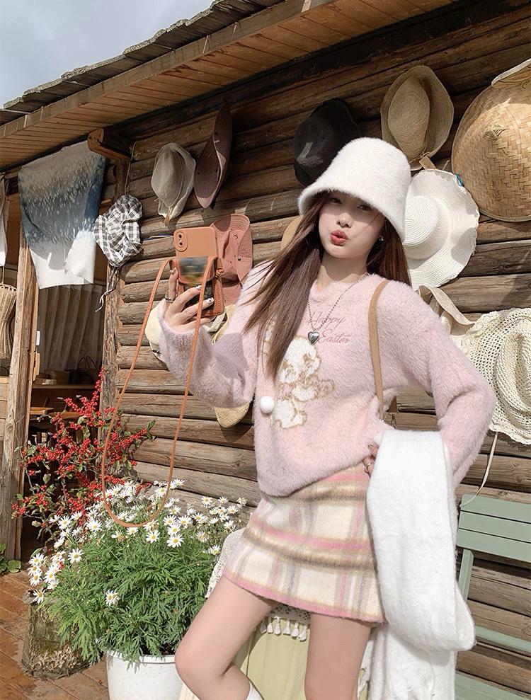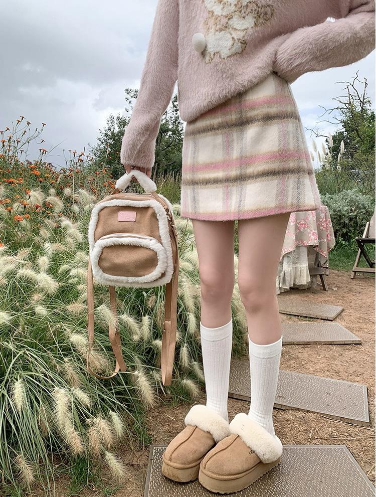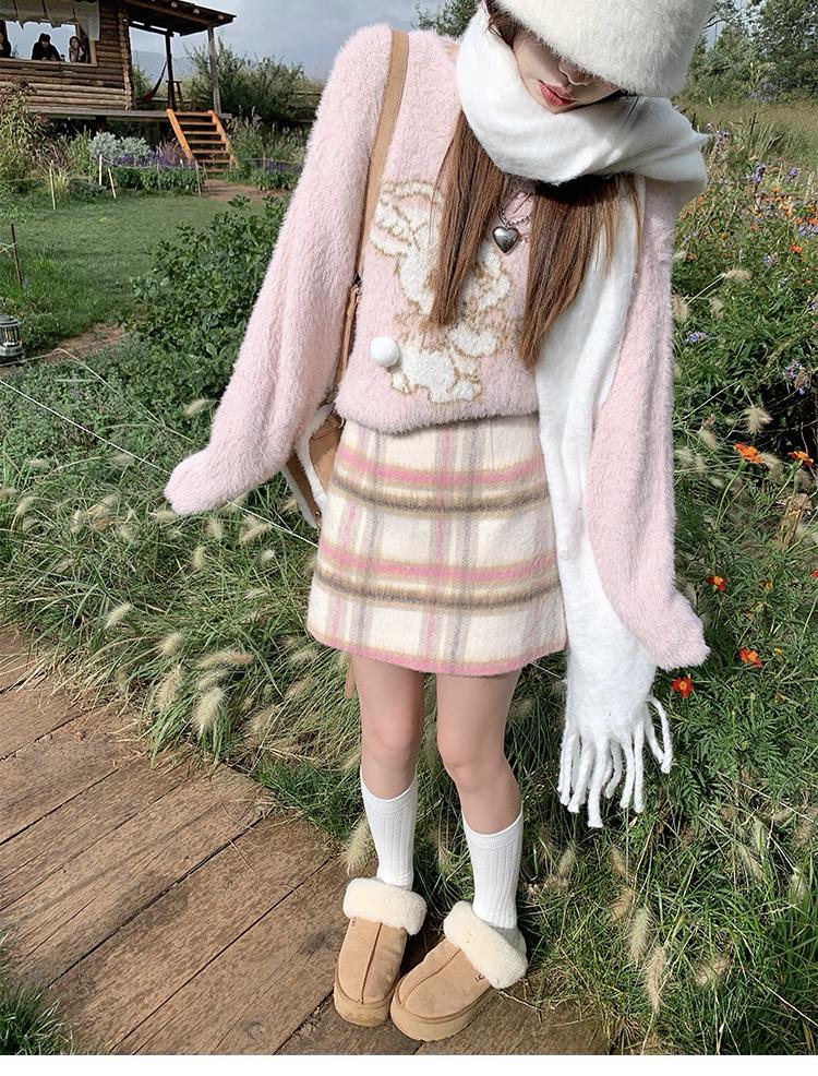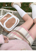 【C8093】韓系甜美風溫柔粉色百搭顯瘦格子半身裙半身裙