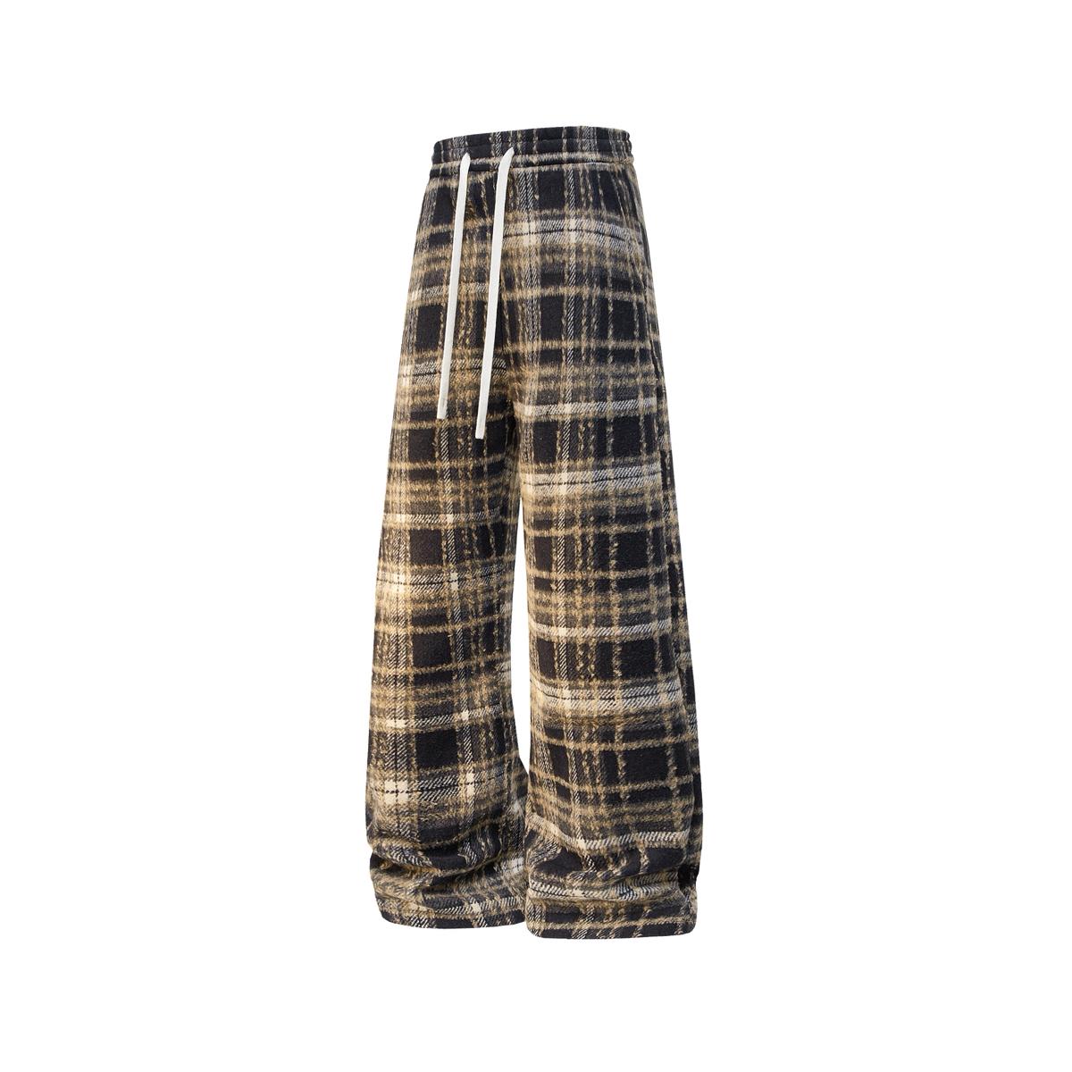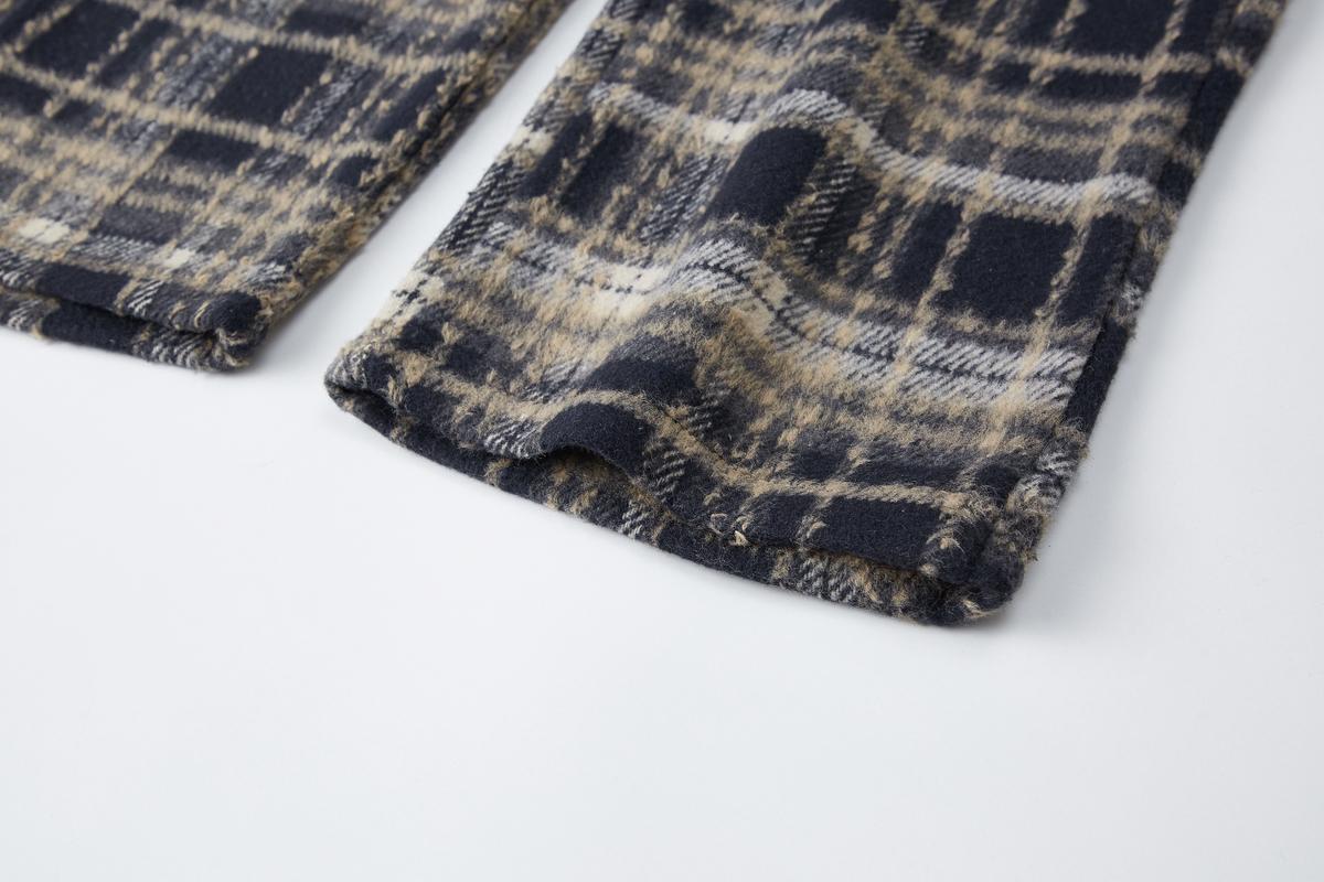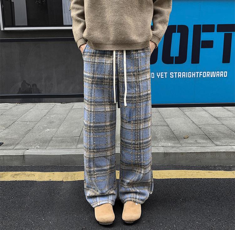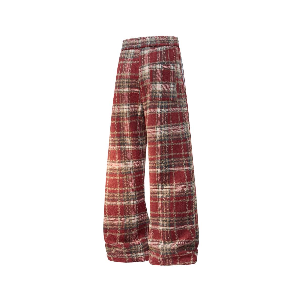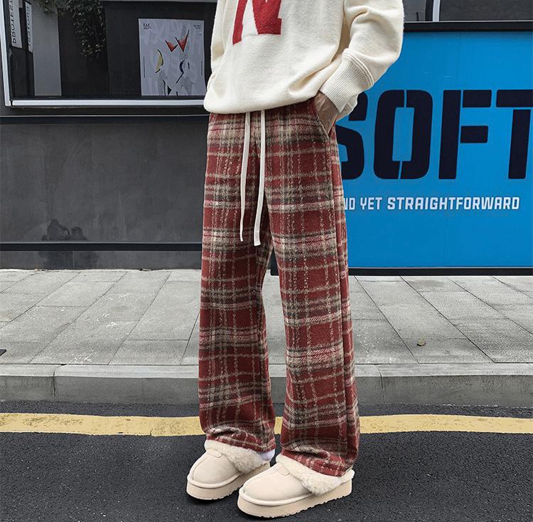 【YS2603】加絨毛呢直筒寬鬆格子加厚休閒褲