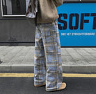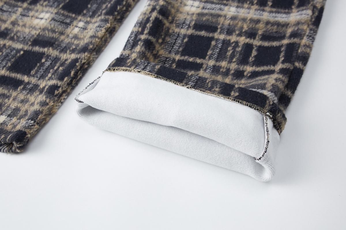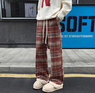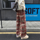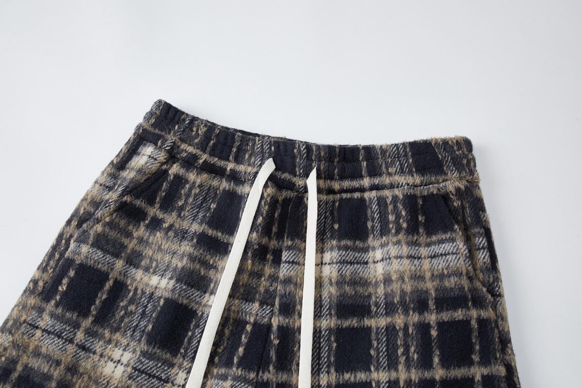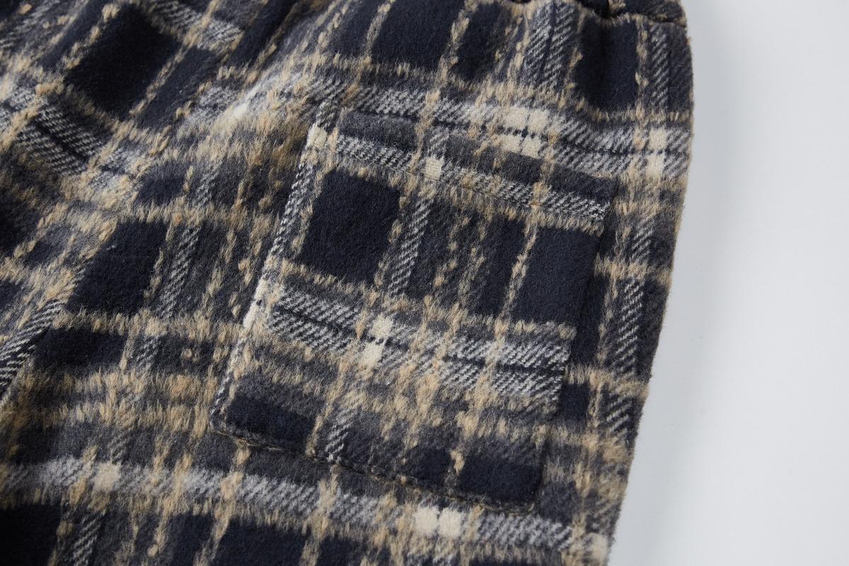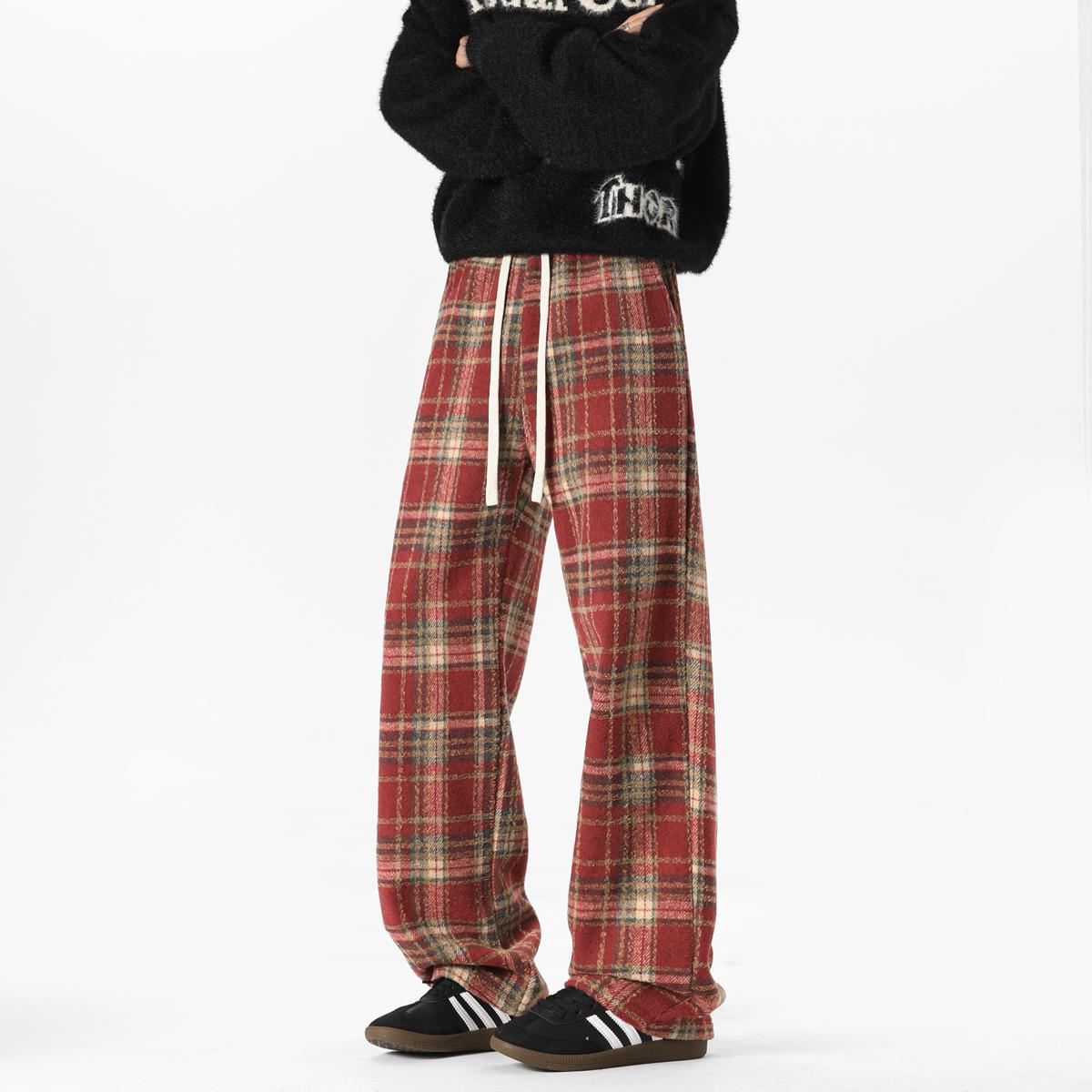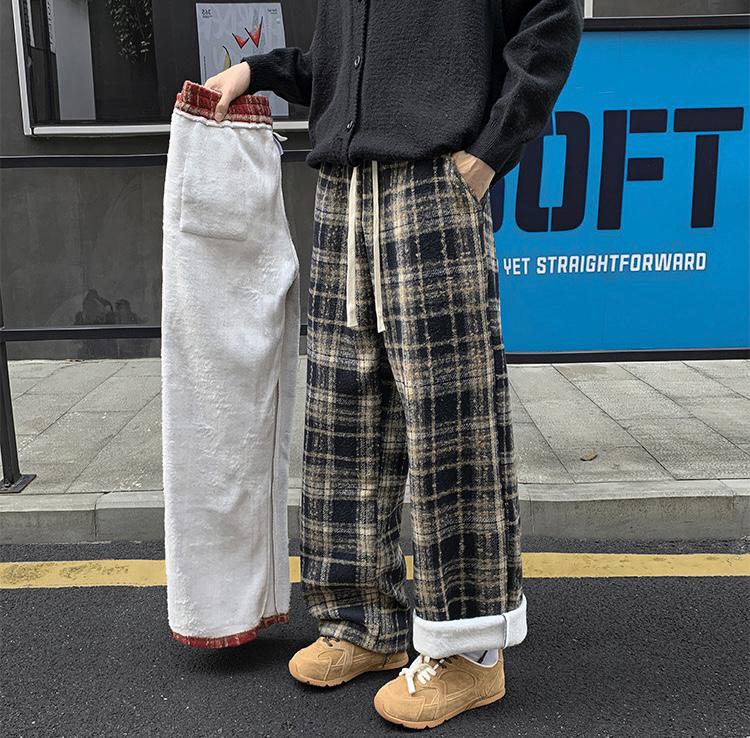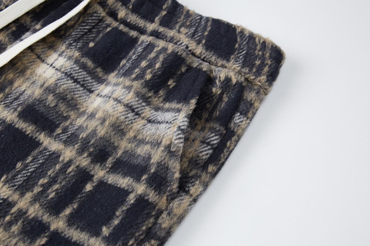【YS2603】加絨毛呢直筒寬鬆格子加厚休閒褲