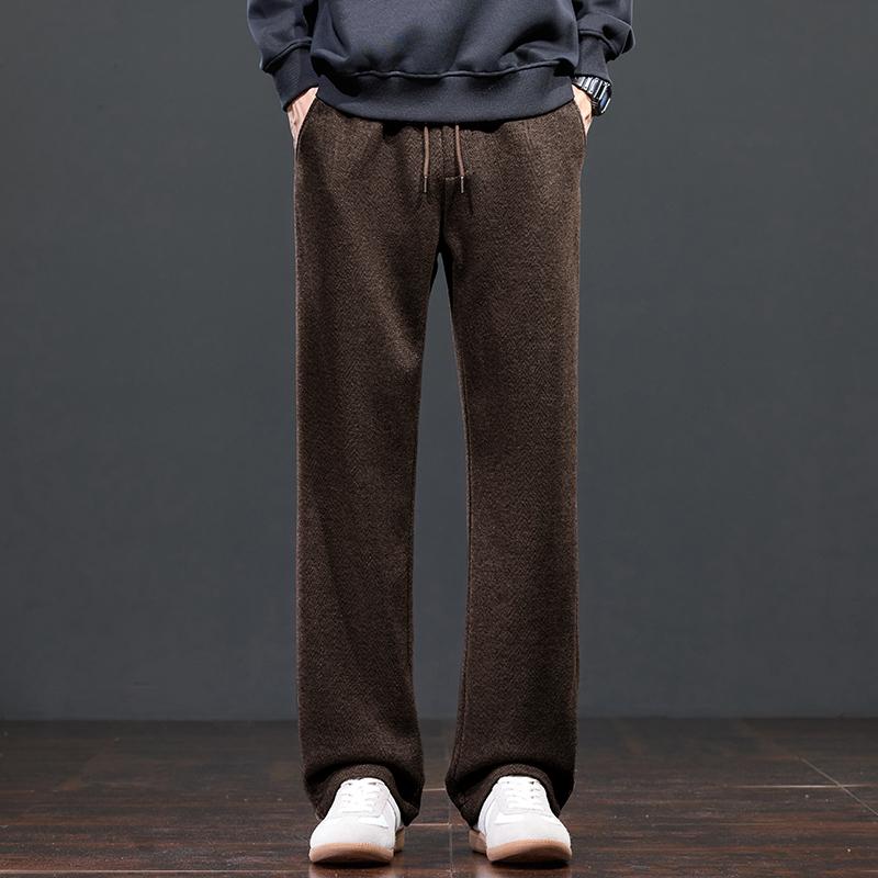【YS2607】抗皺人字紋羊毛直筒休閒褲(配腰繩)(含2.9%綿羊毛)