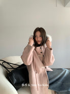 【C8117】超好看韓系百搭設計感簡約連帽氛圍感加厚毛毛裏大衣