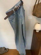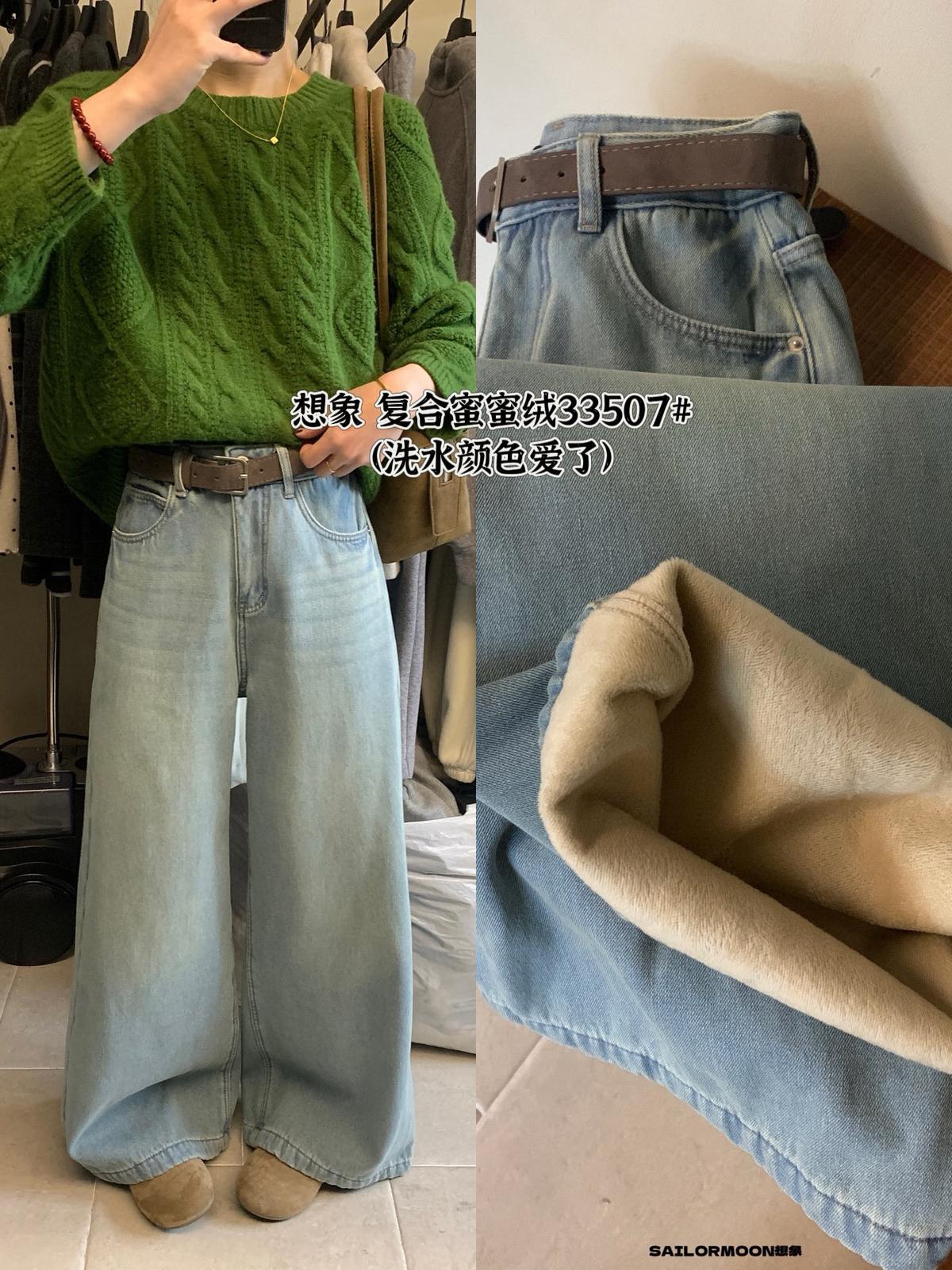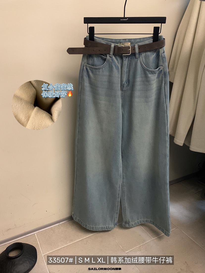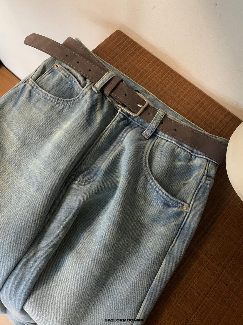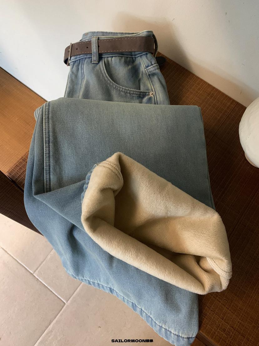 【C8118】高腰洋氣漸變加絨牛仔褲(配腰帶)