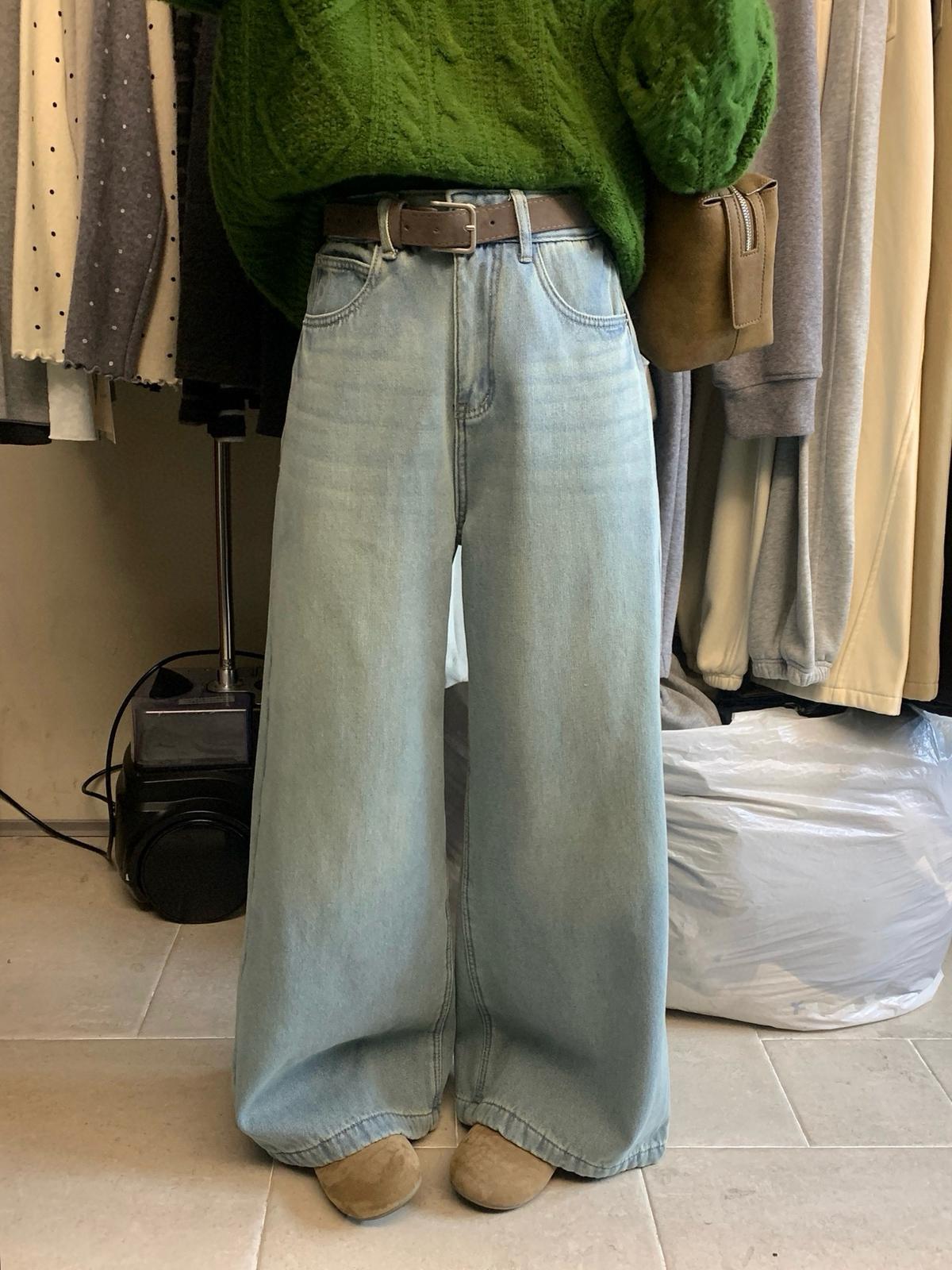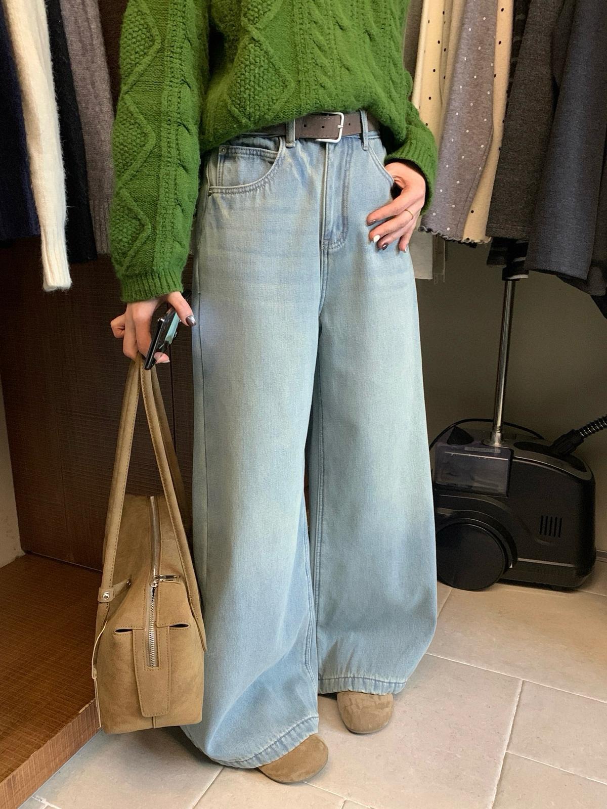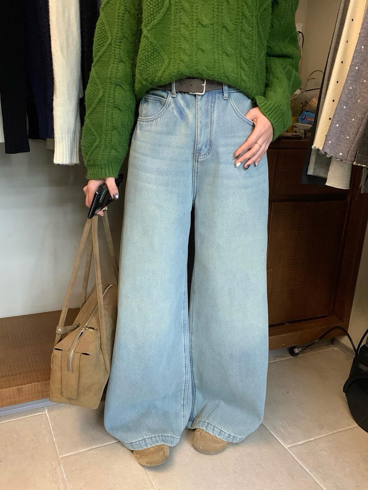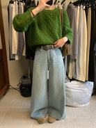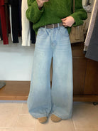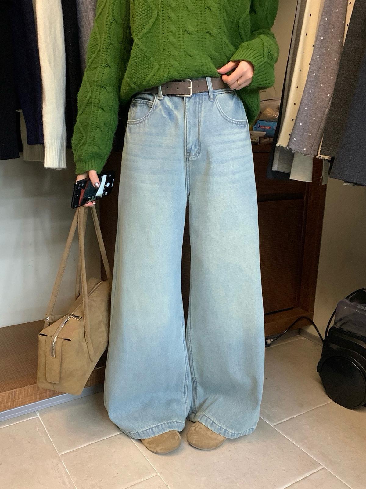 【C8118】高腰洋氣漸變加絨牛仔褲(配腰帶)
