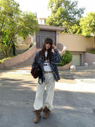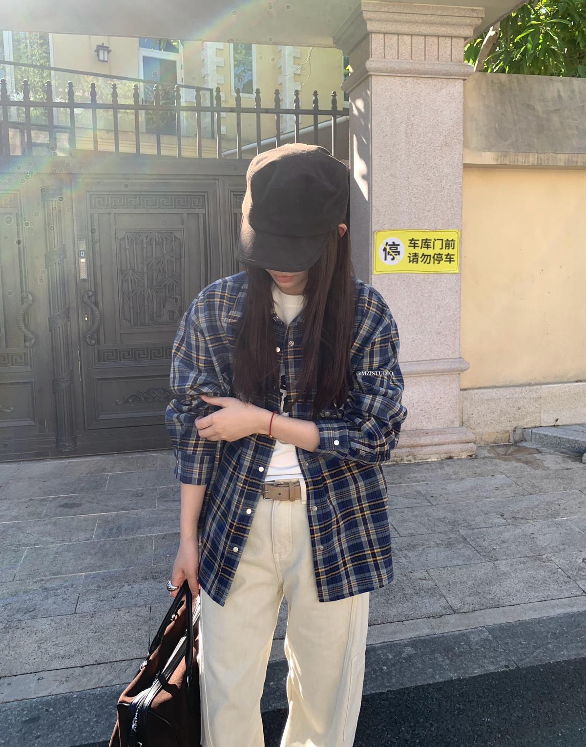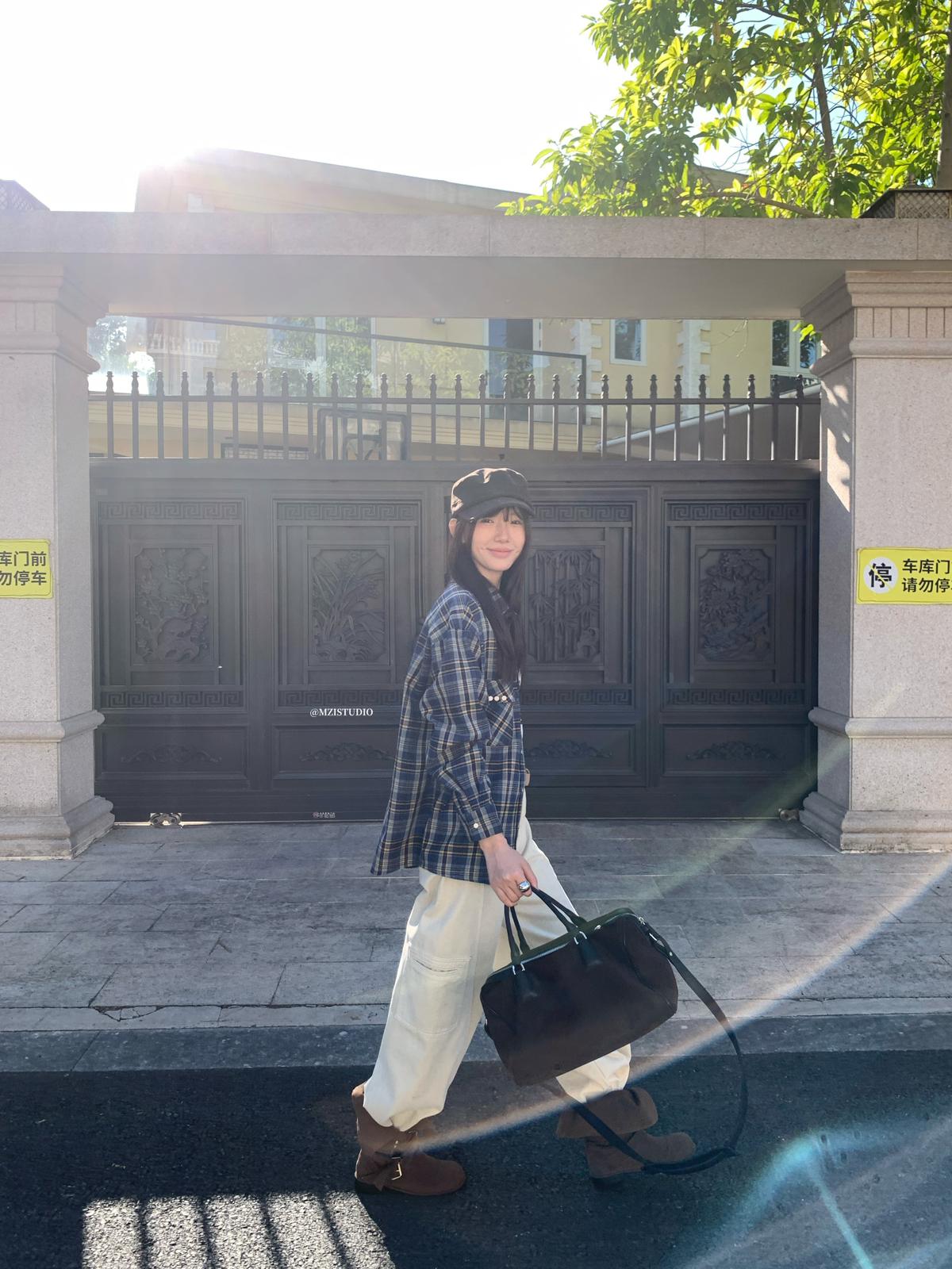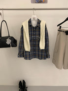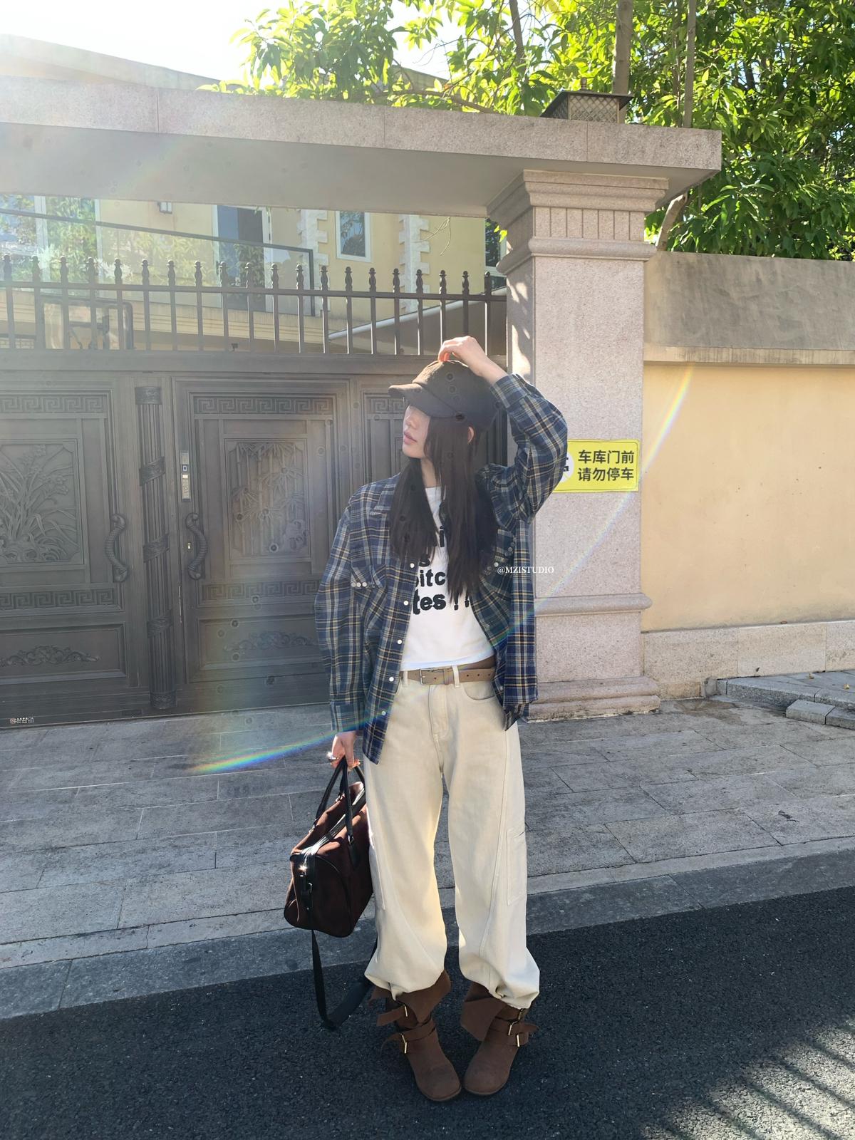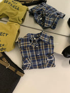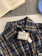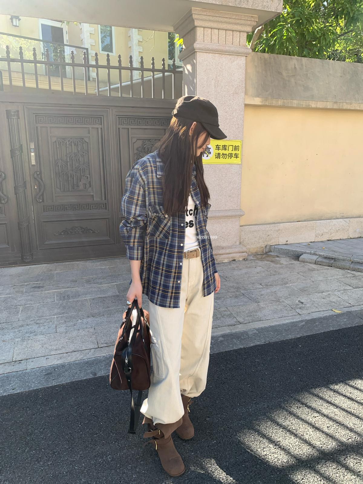 【C8124】智性表達冬日復古格紋鉚釘時髦帥酷鬆弛隨性襯衫