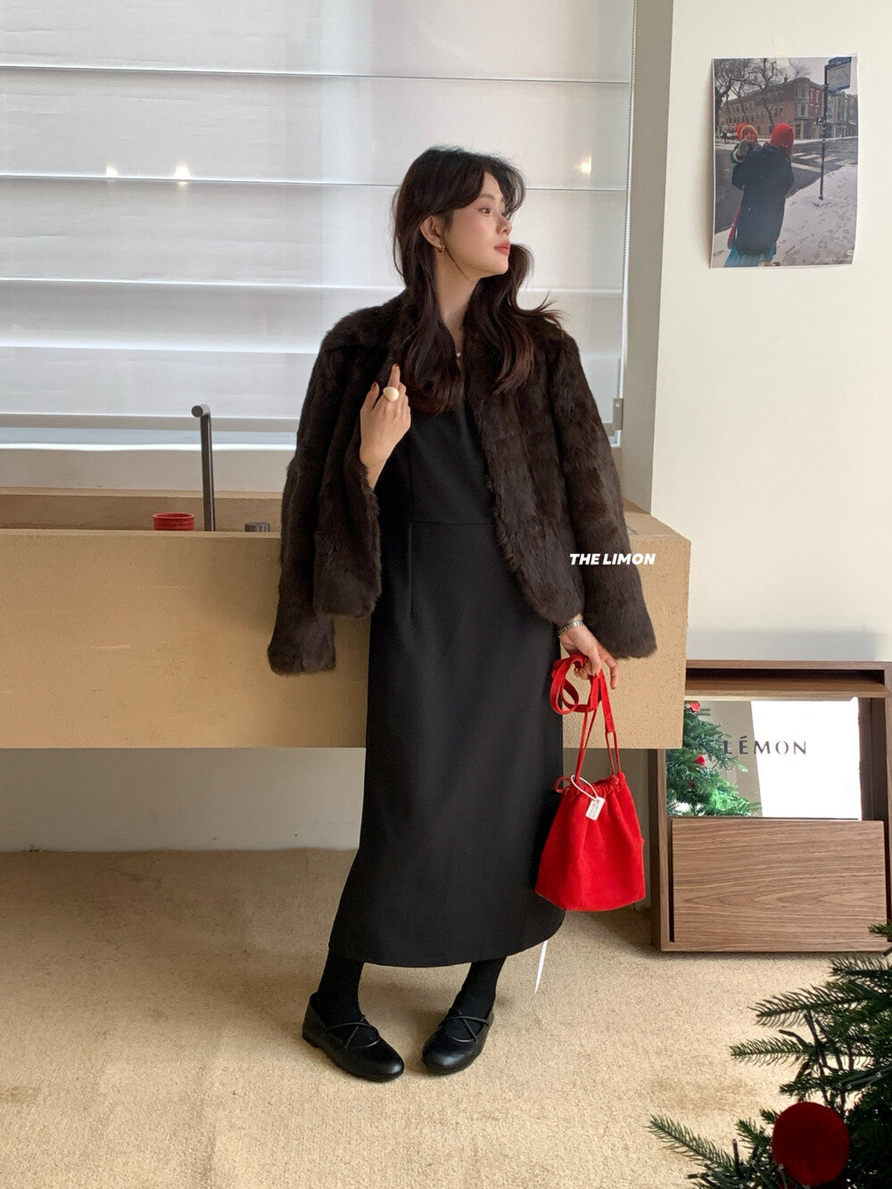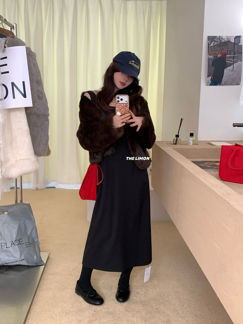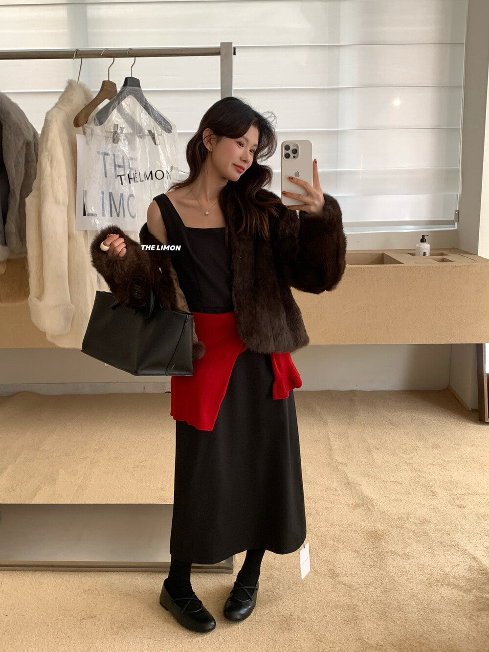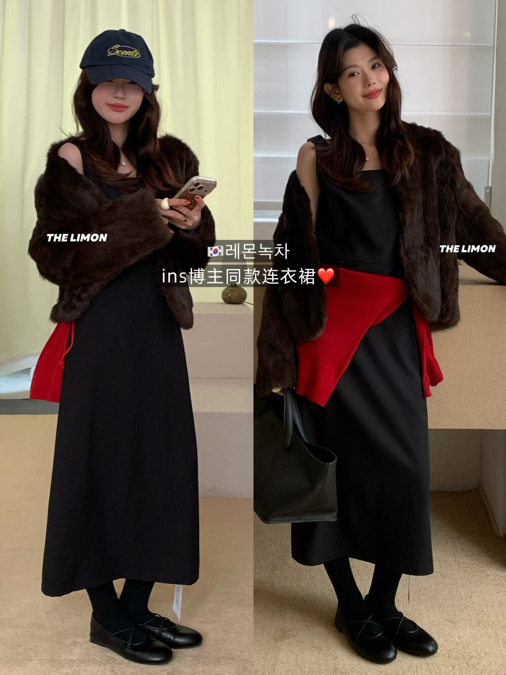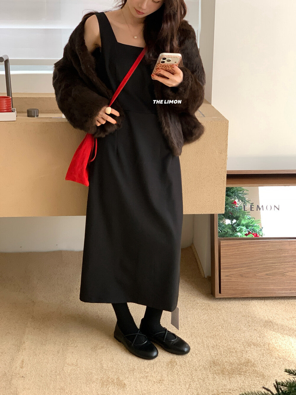 【C8131】ins博主方領氣質無袖背心顯瘦連衣裙
