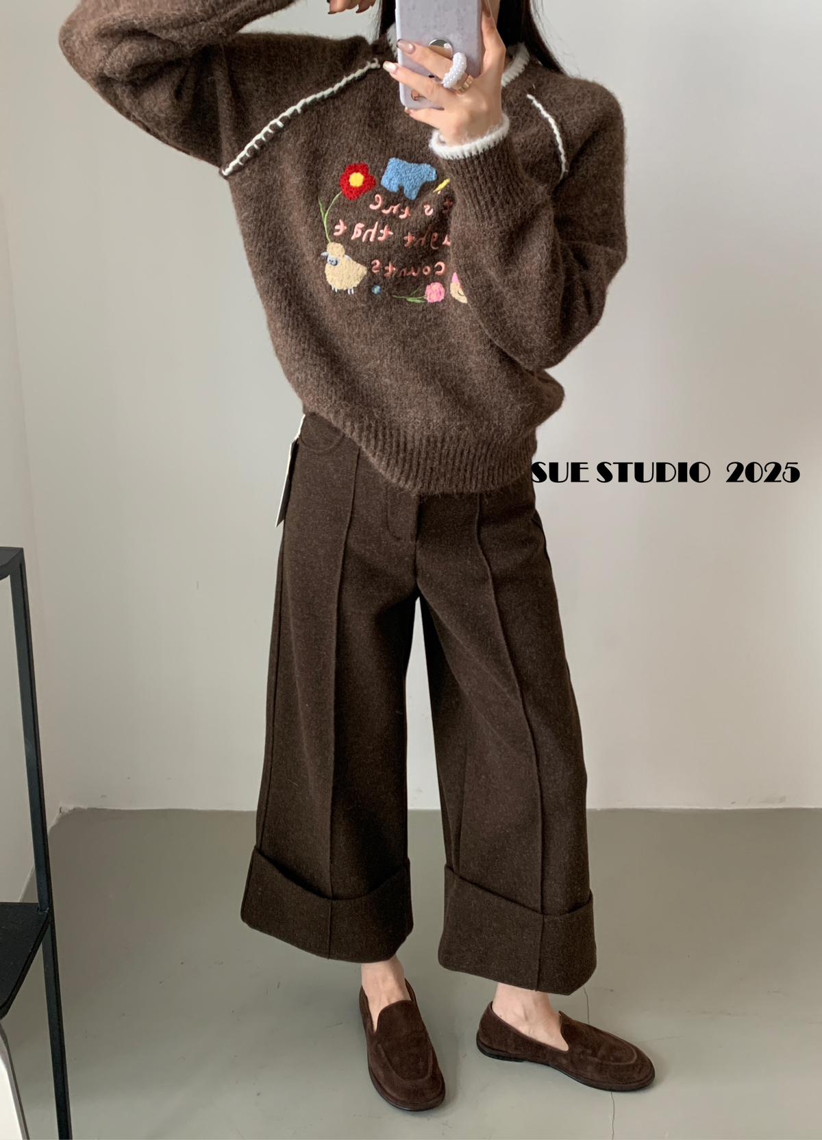 【C8141】韓系中線顯瘦遮肉顯瘦8分褲休閒褲