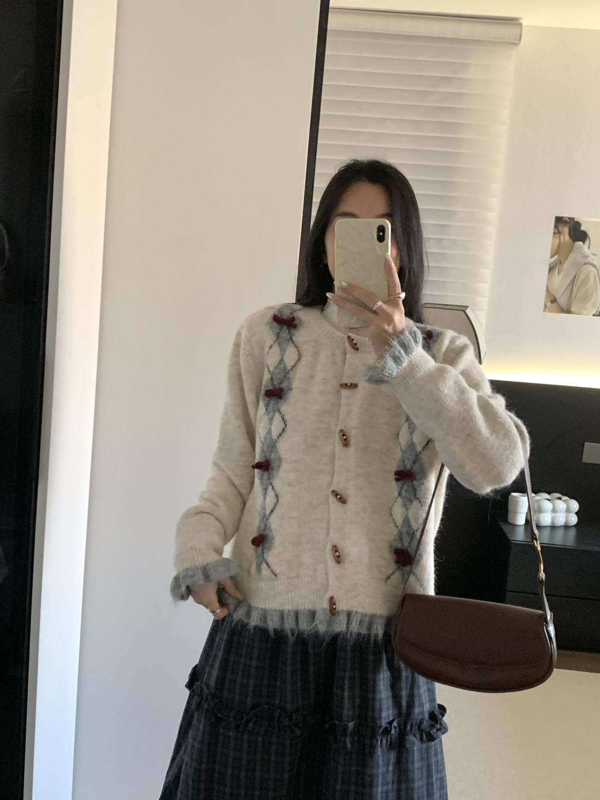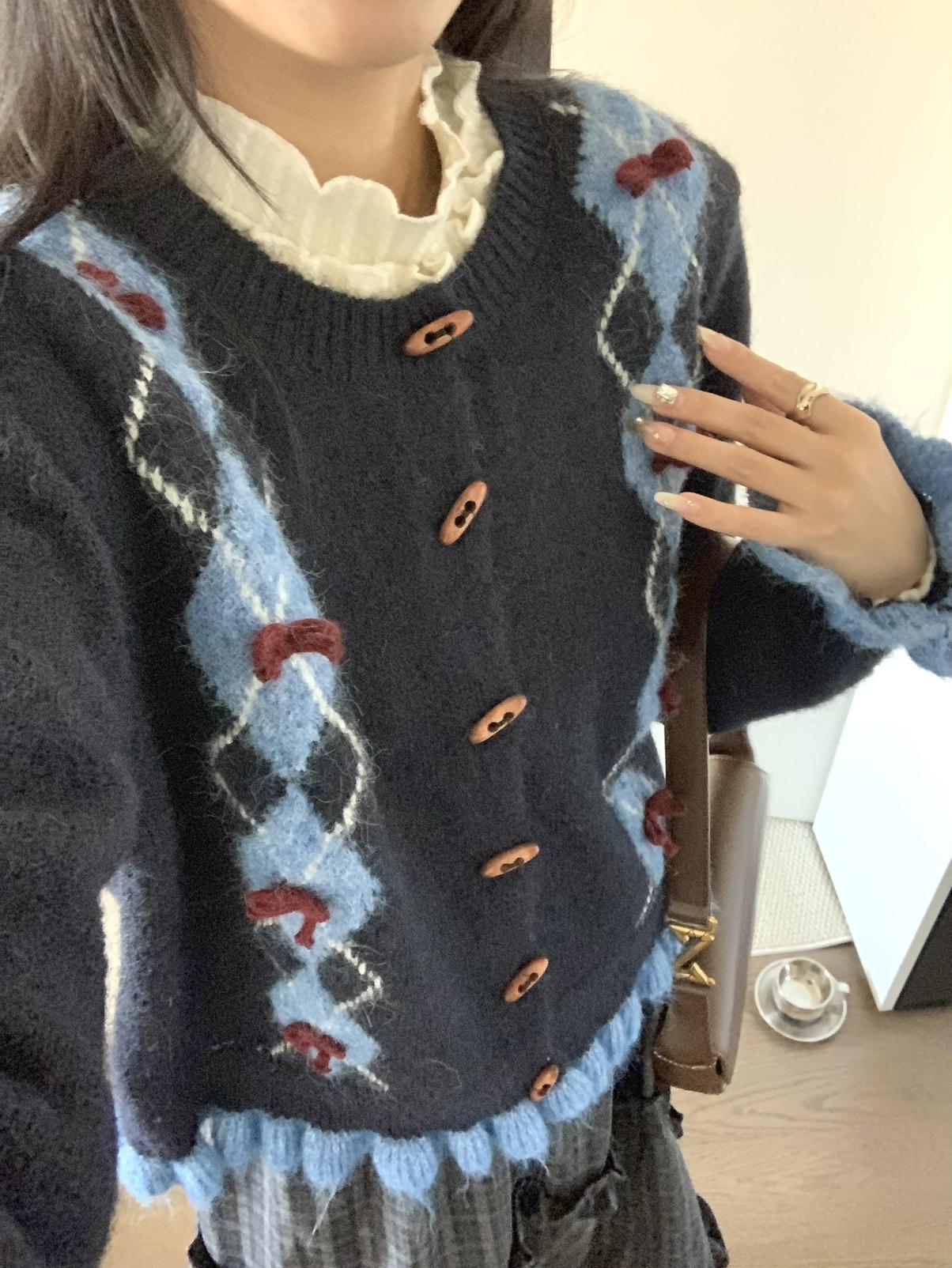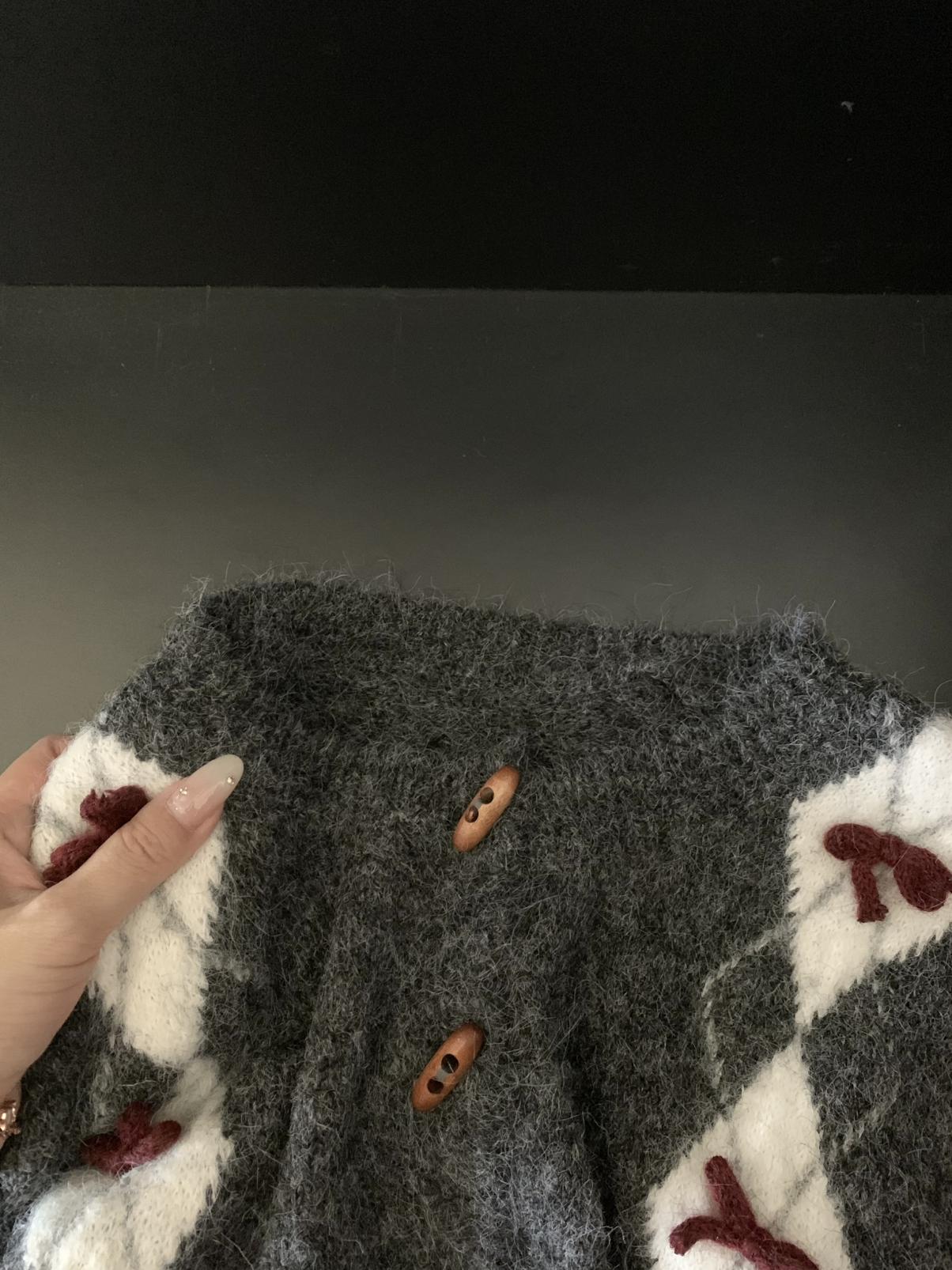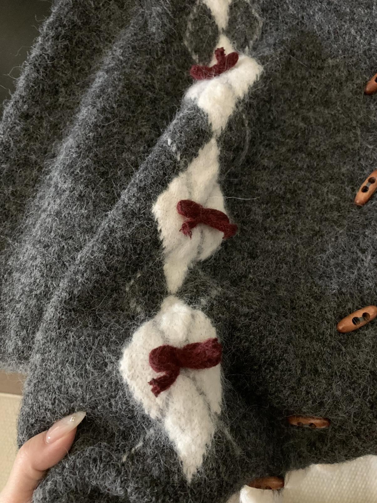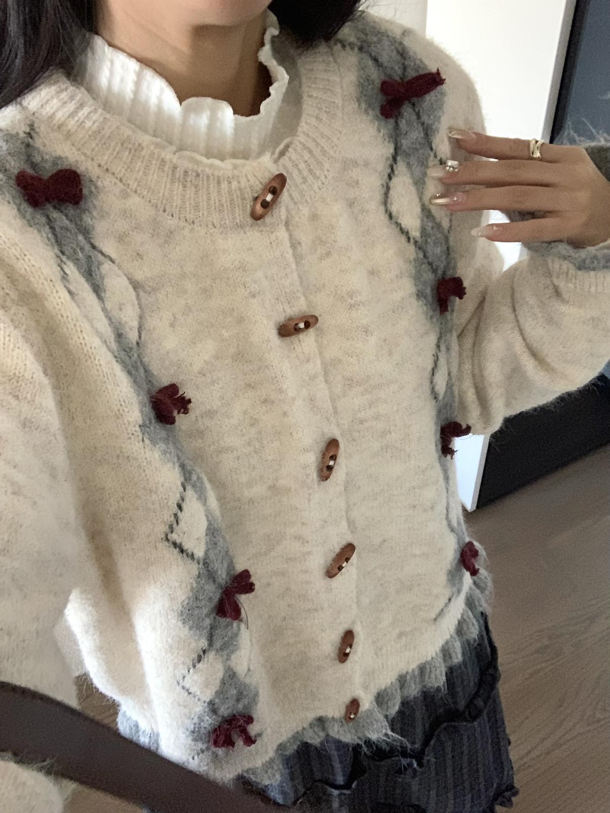 【C8151】復古學院風菱格立體蝴蝶結開衫加厚保暖毛衣