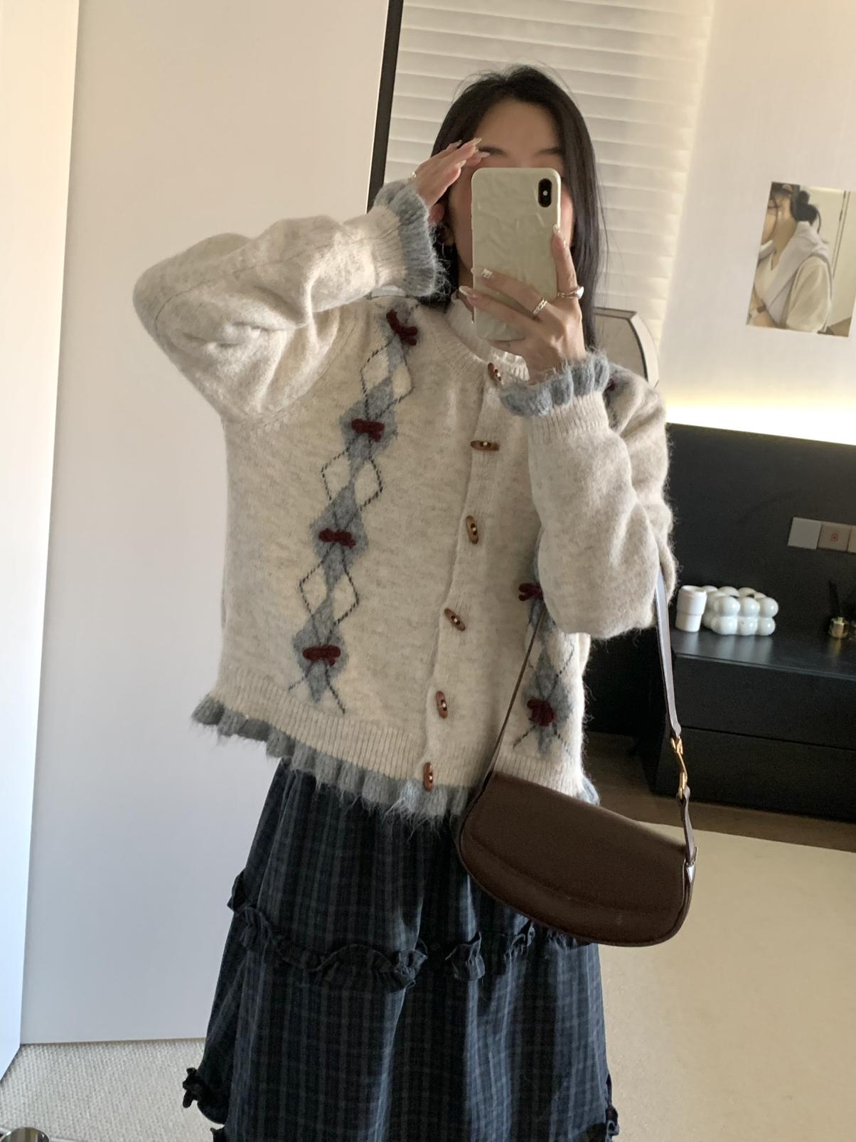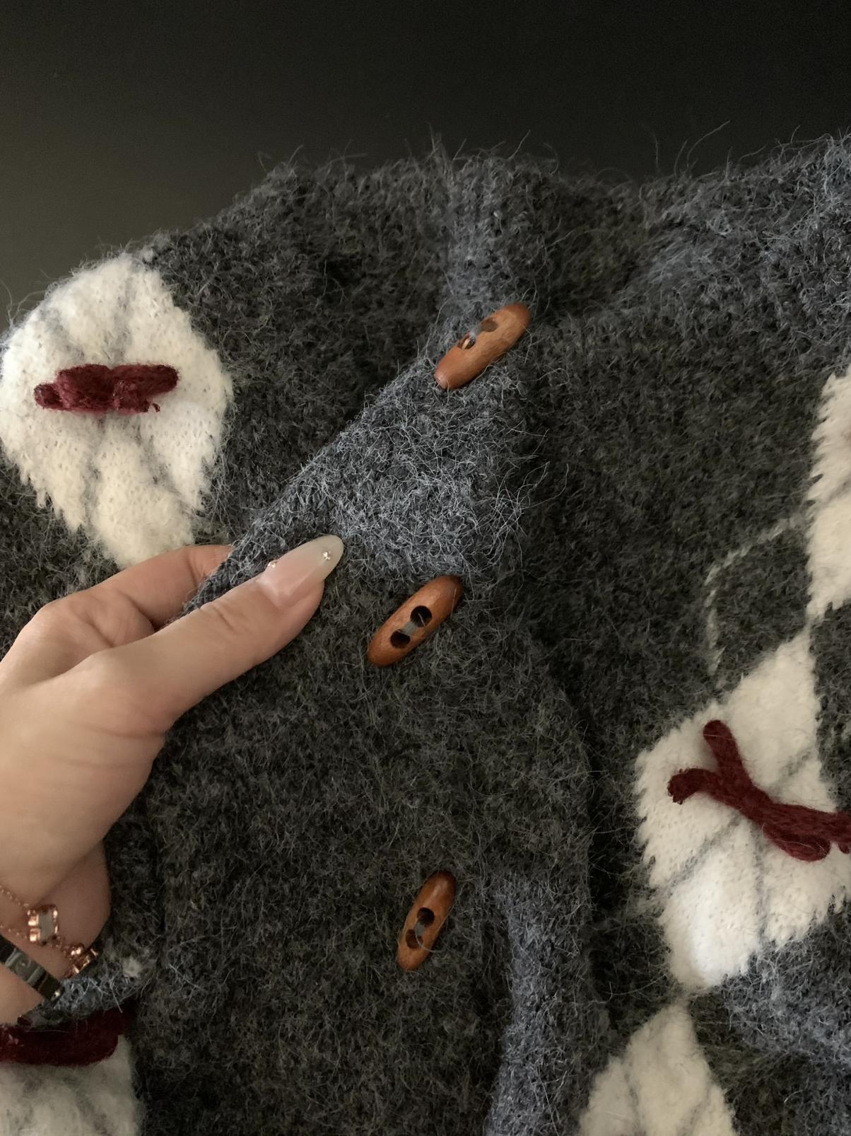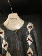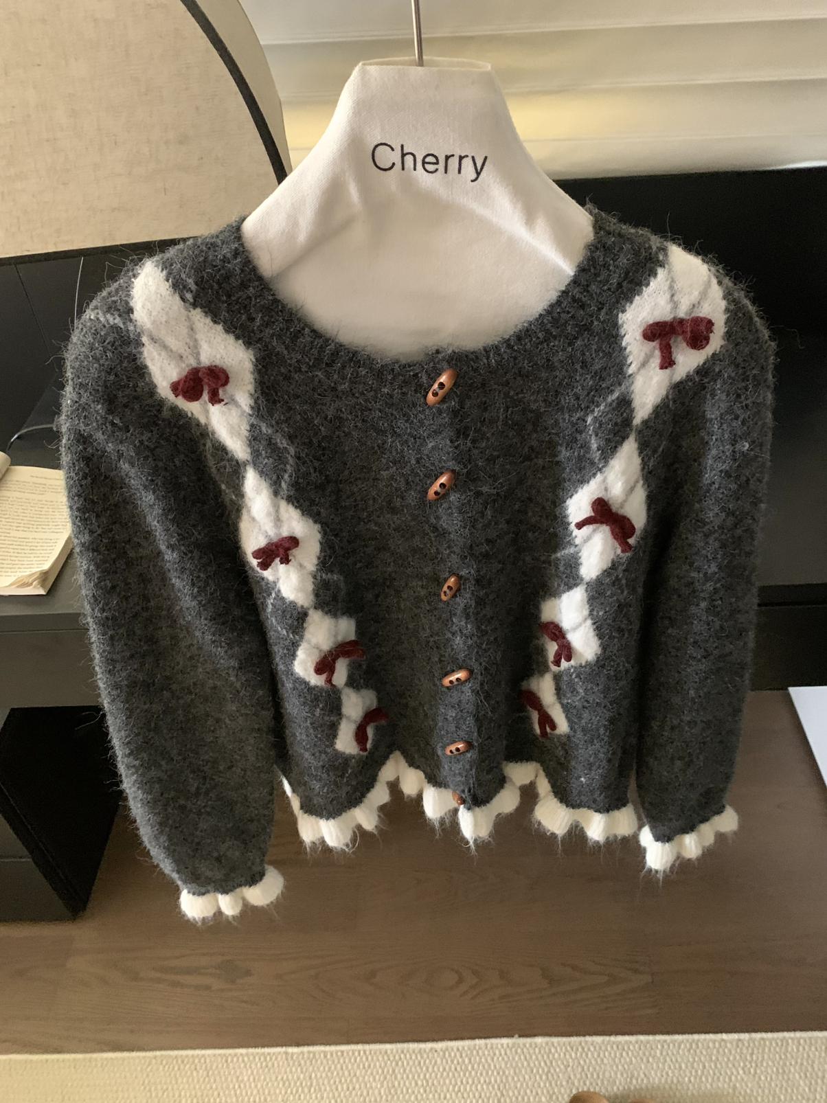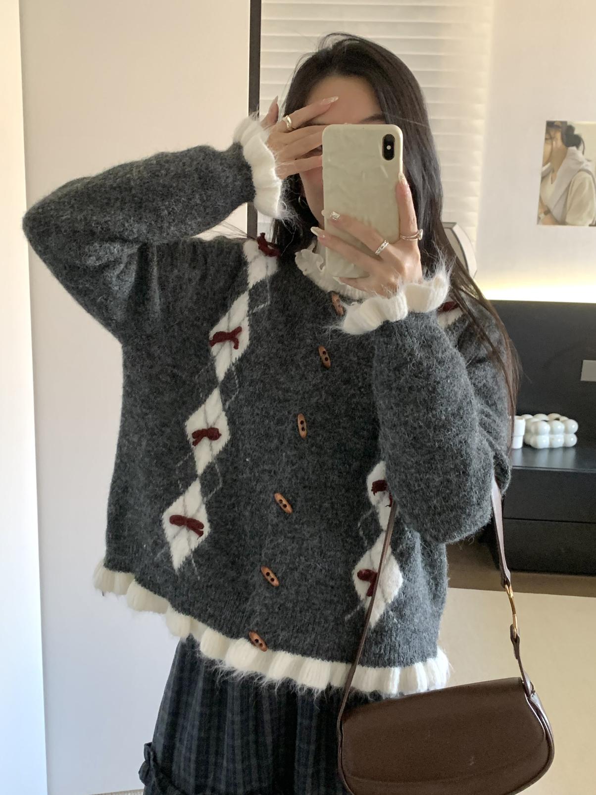 【C8151】復古學院風菱格立體蝴蝶結開衫加厚保暖毛衣