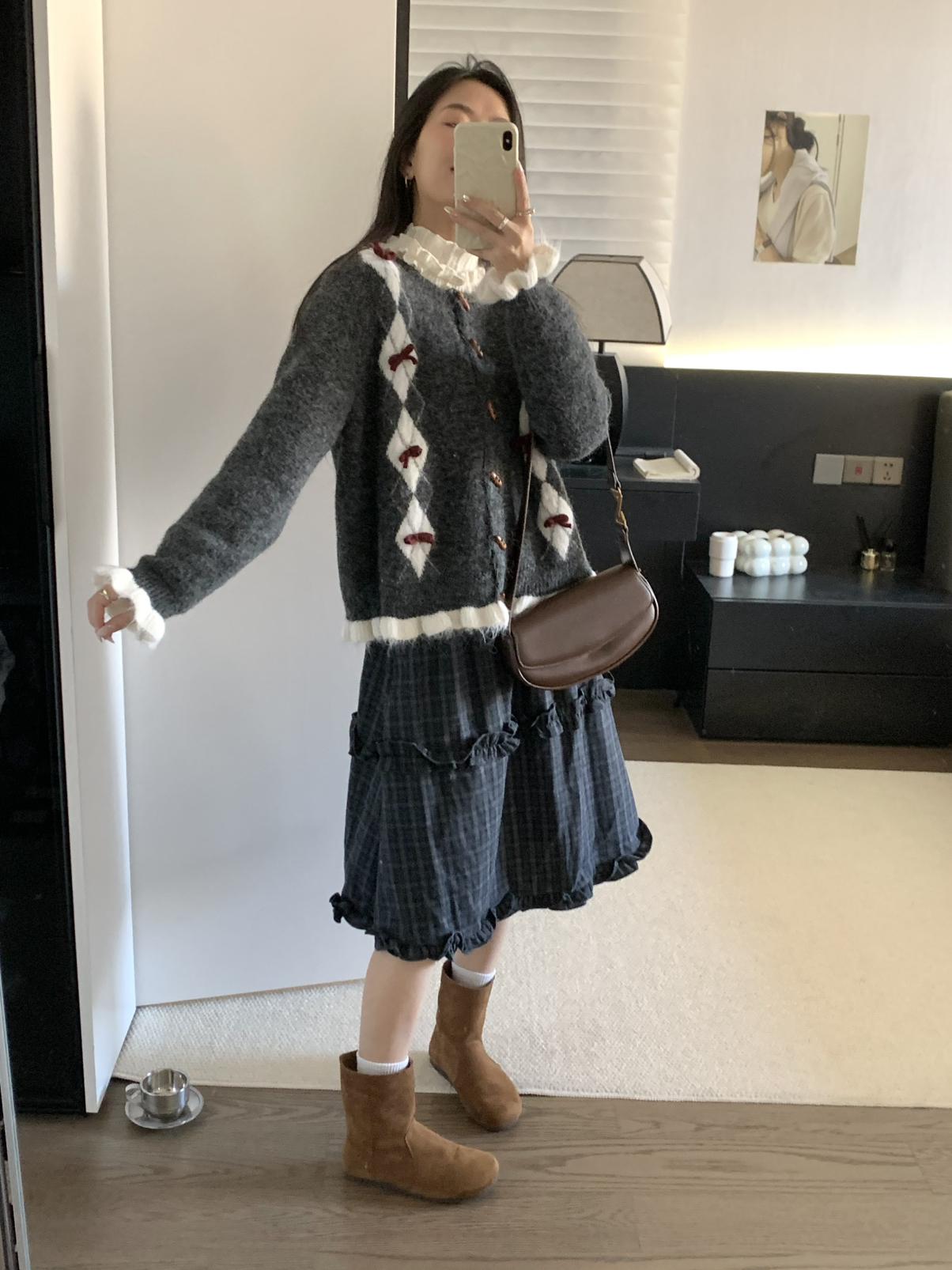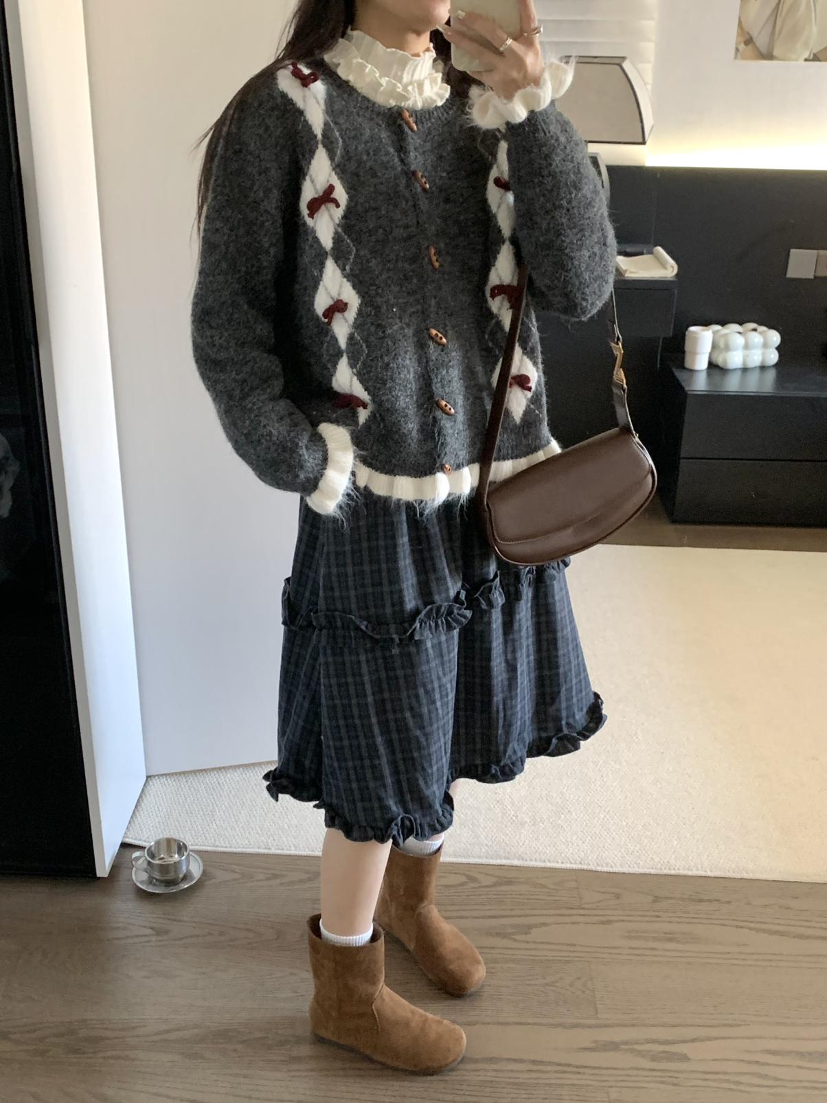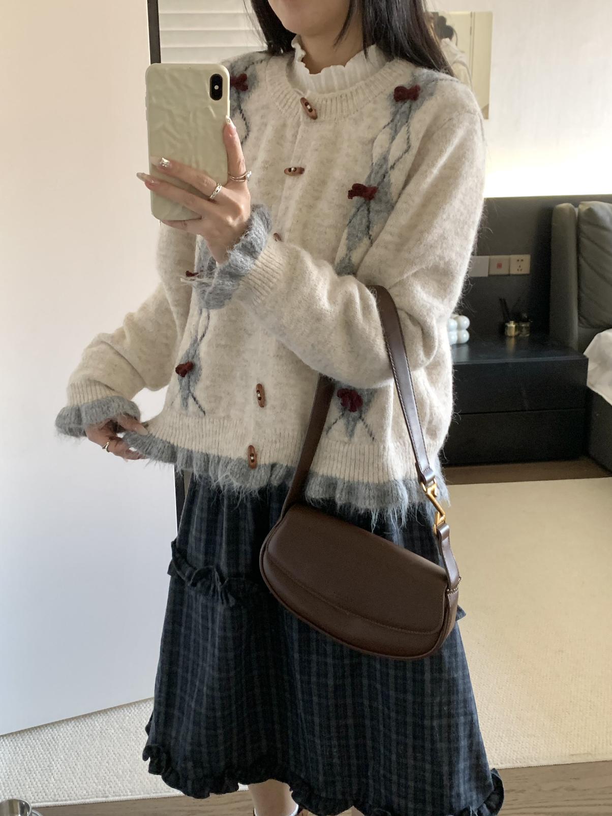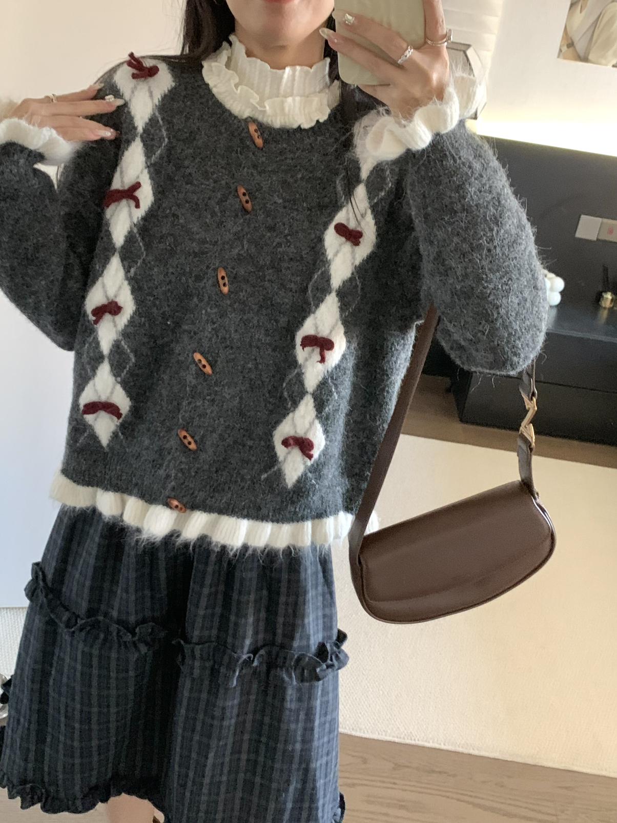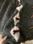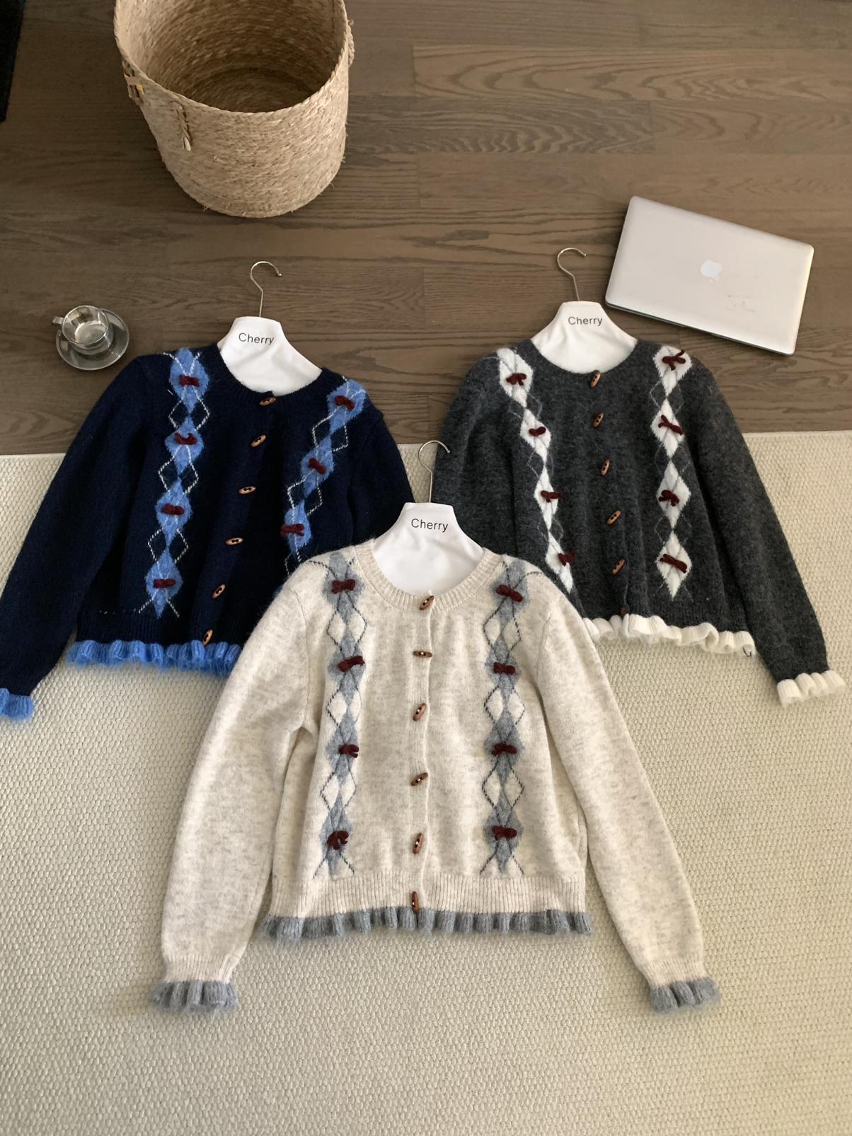 【C8151】復古學院風菱格立體蝴蝶結開衫加厚保暖毛衣