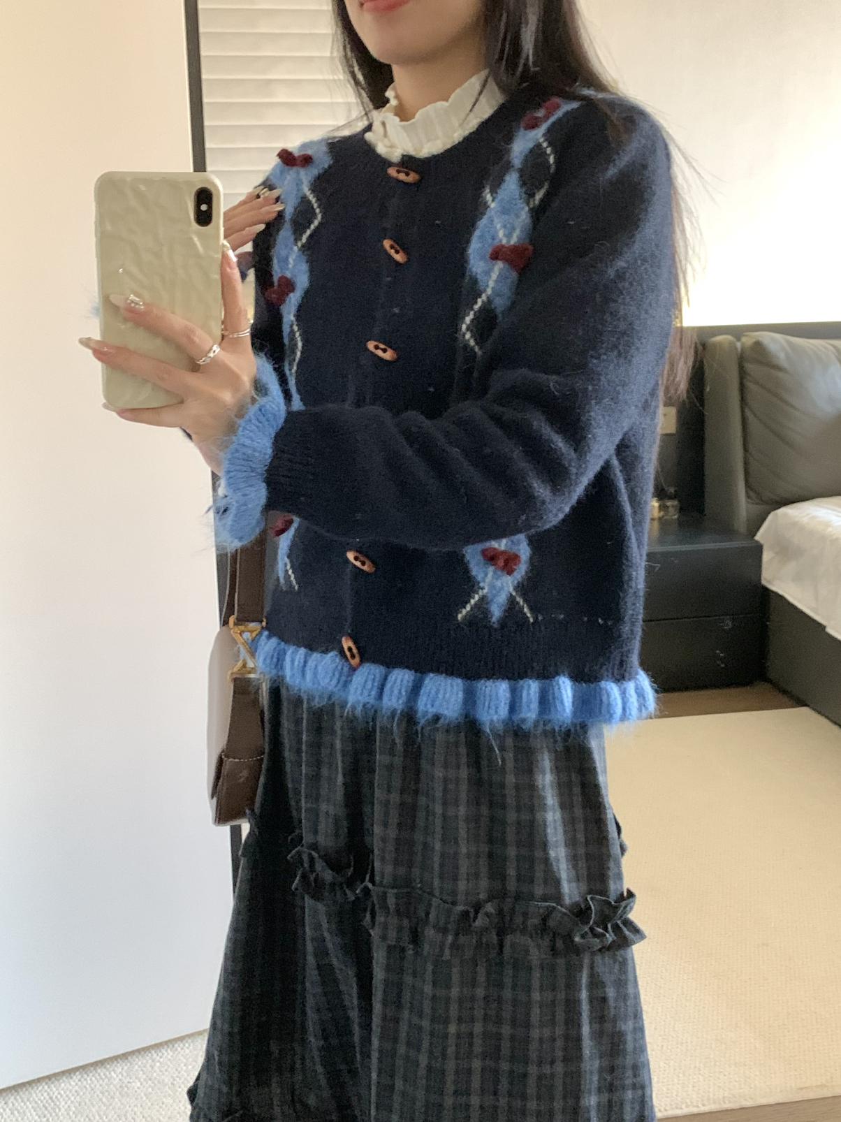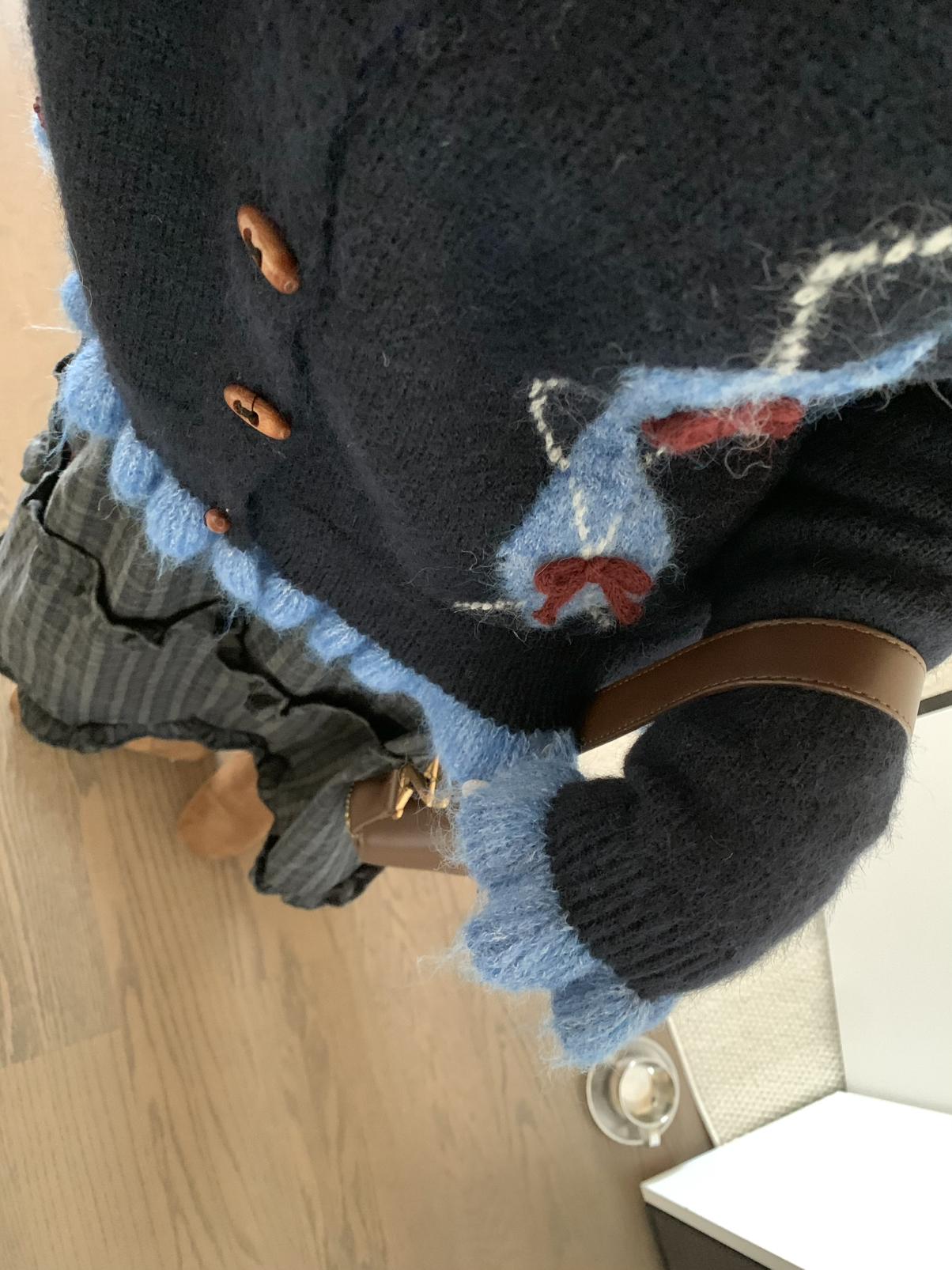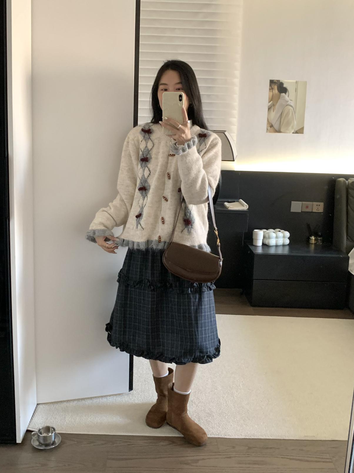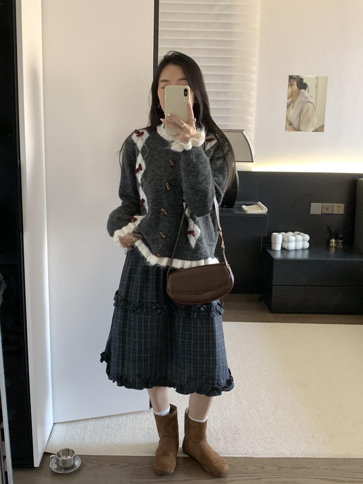 【C8151】復古學院風菱格立體蝴蝶結開衫加厚保暖毛衣