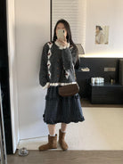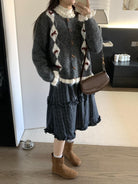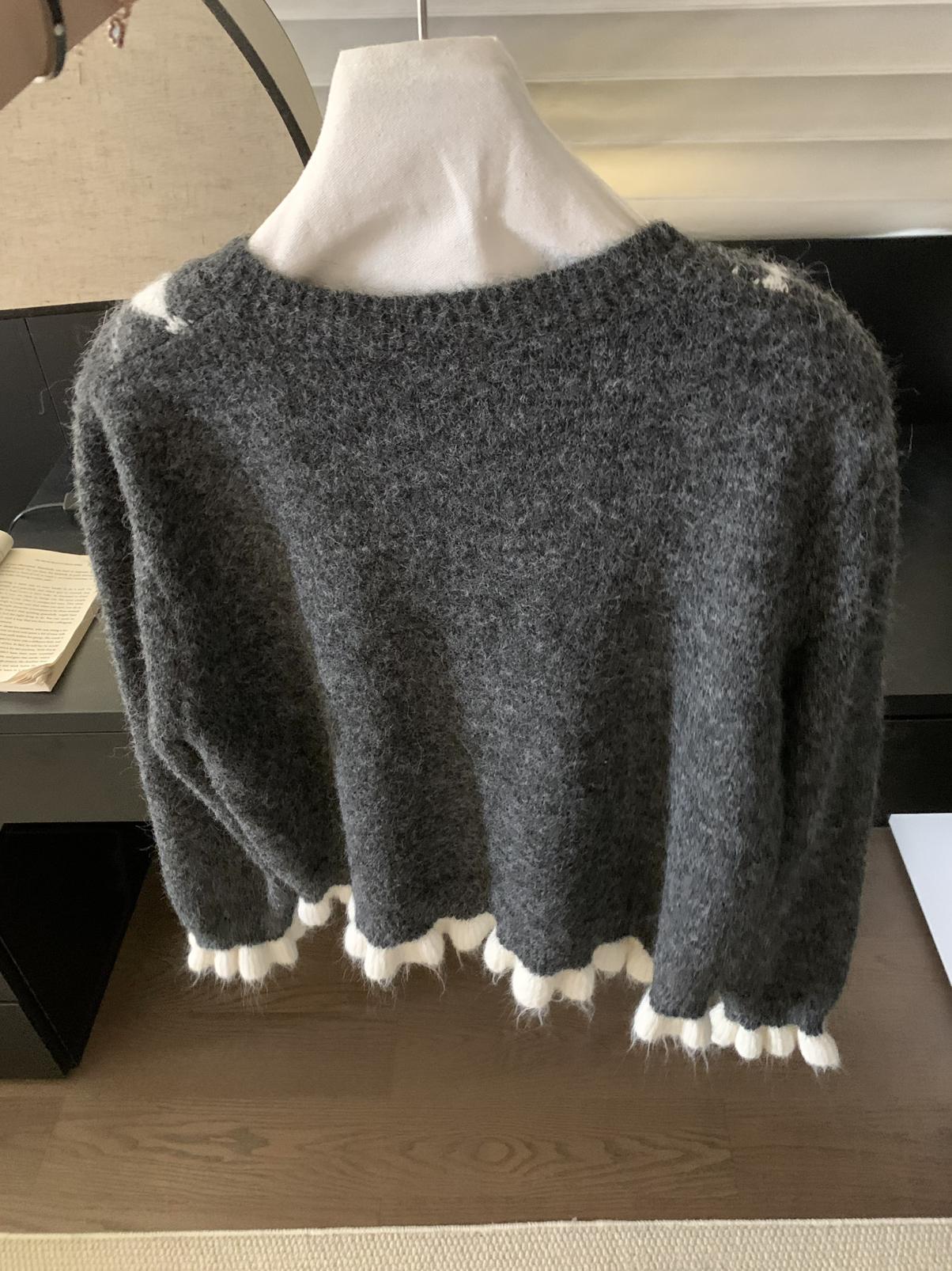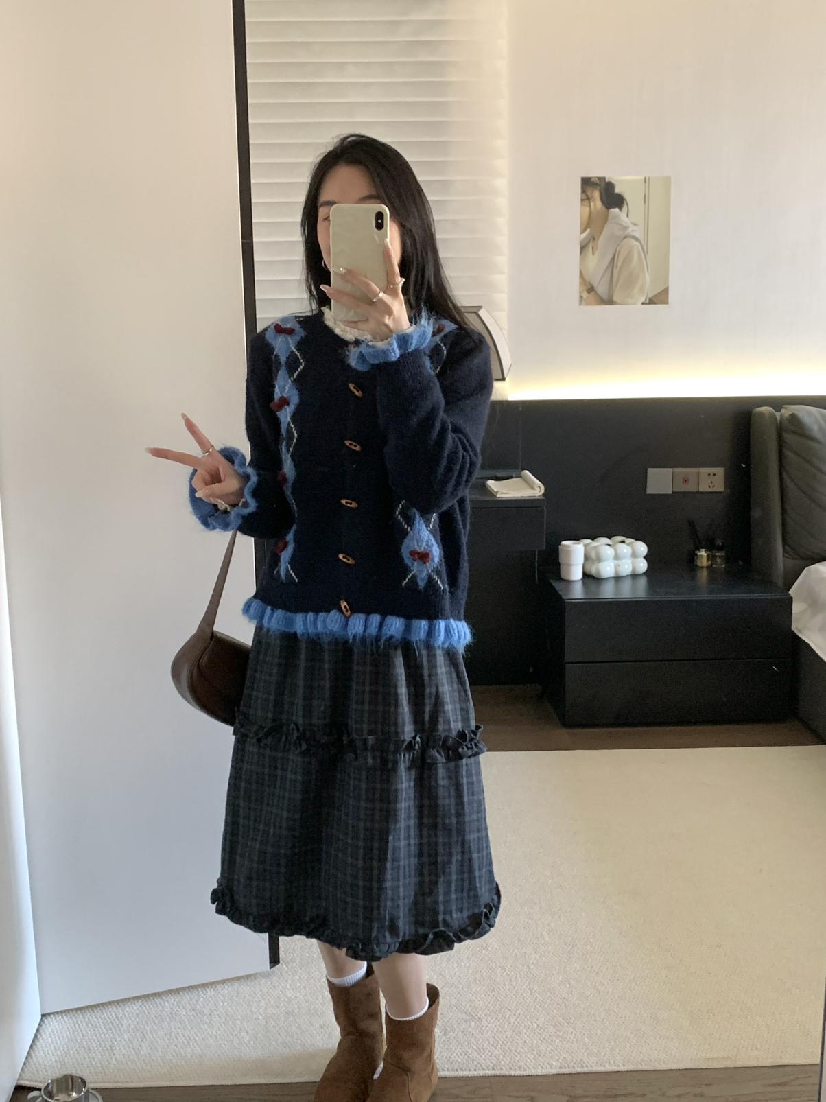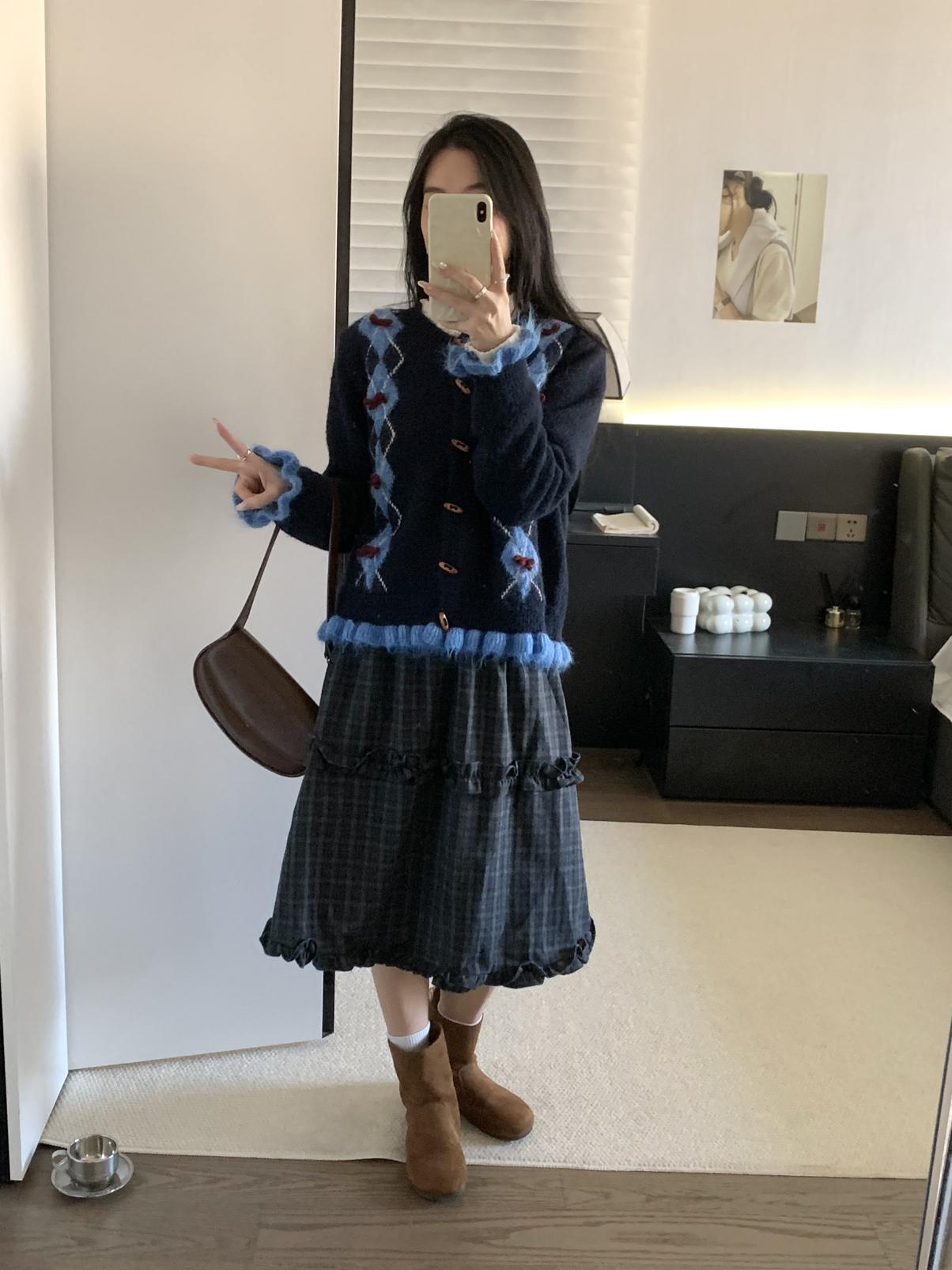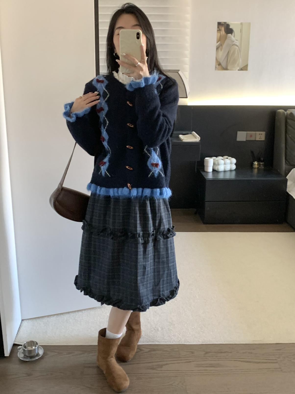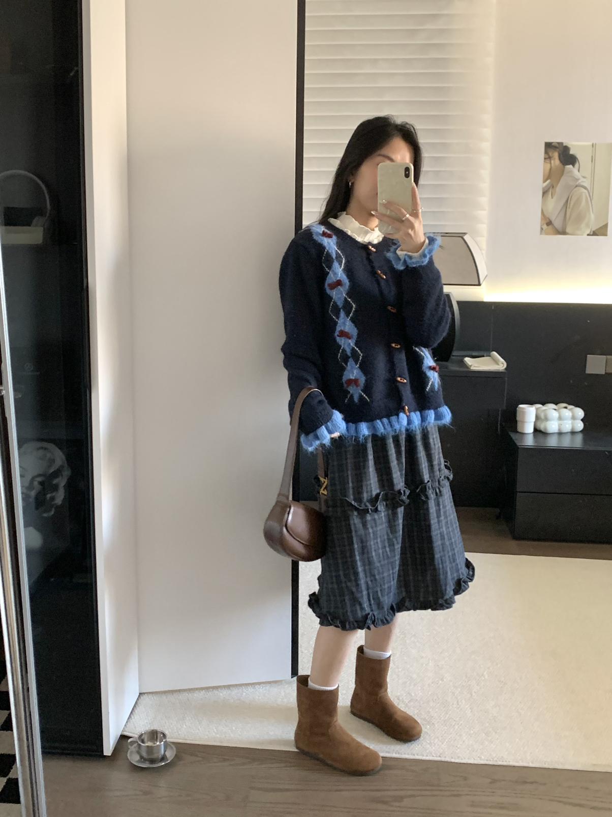 【C8151】復古學院風菱格立體蝴蝶結開衫加厚保暖毛衣
