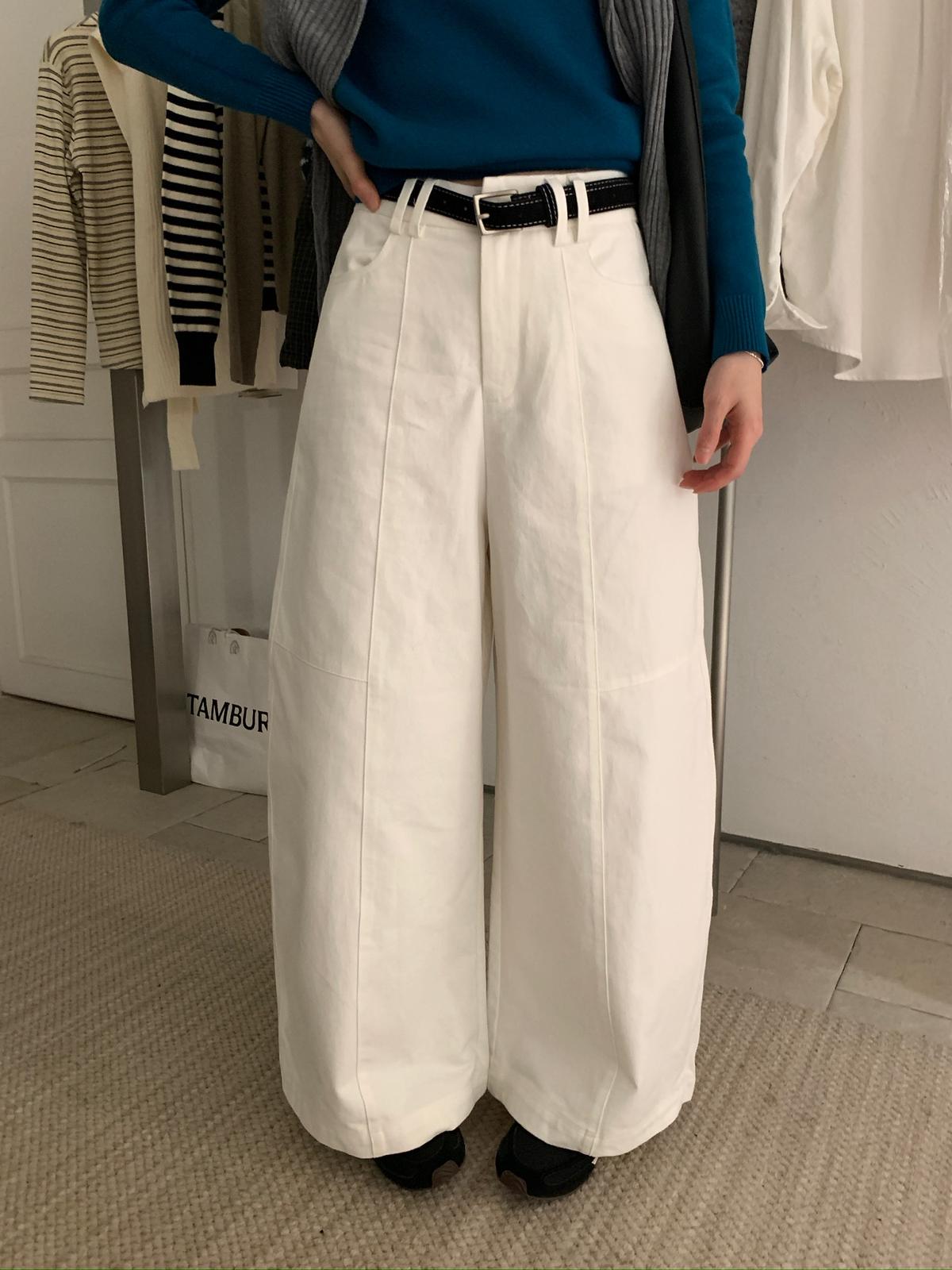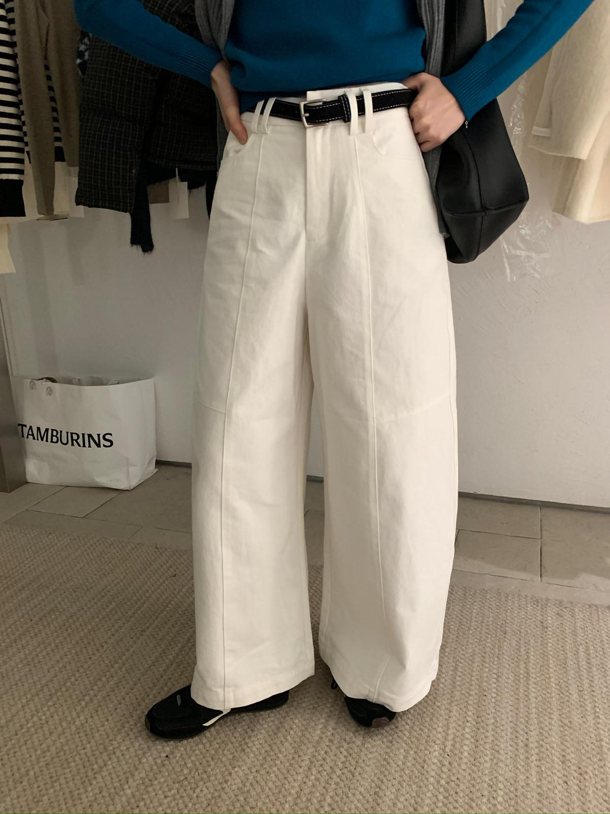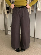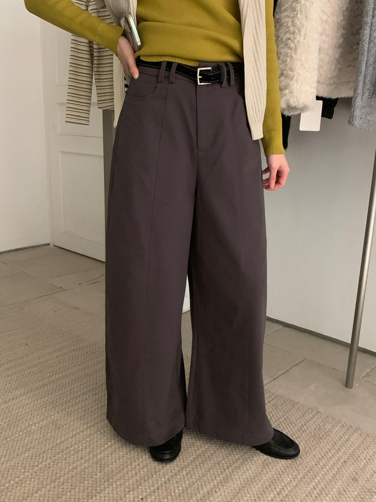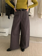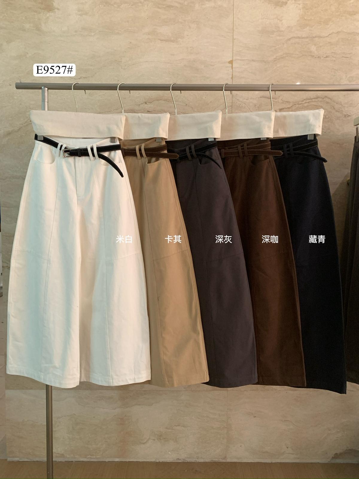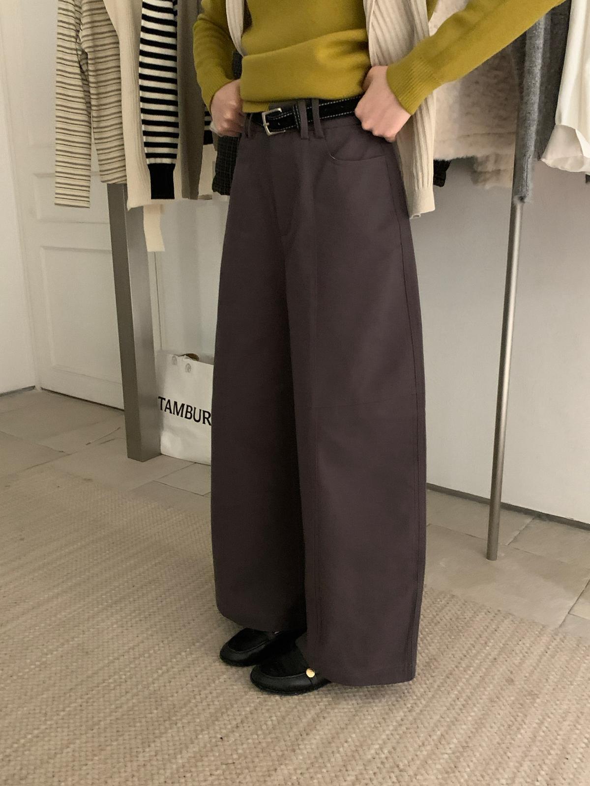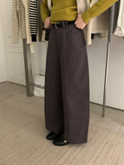 【C8162】簡約高腰磨毛絨感闊腿彎刀型休閒褲(配腰帶)